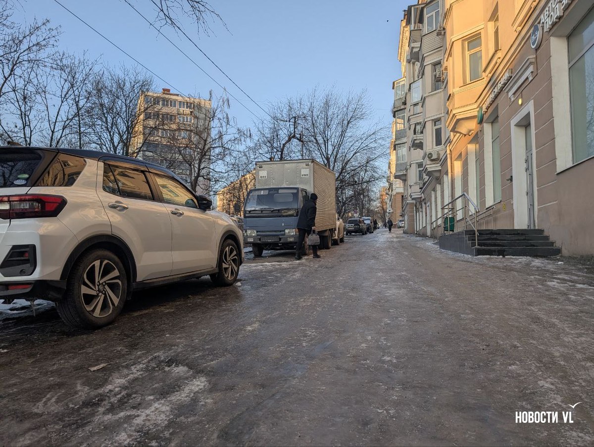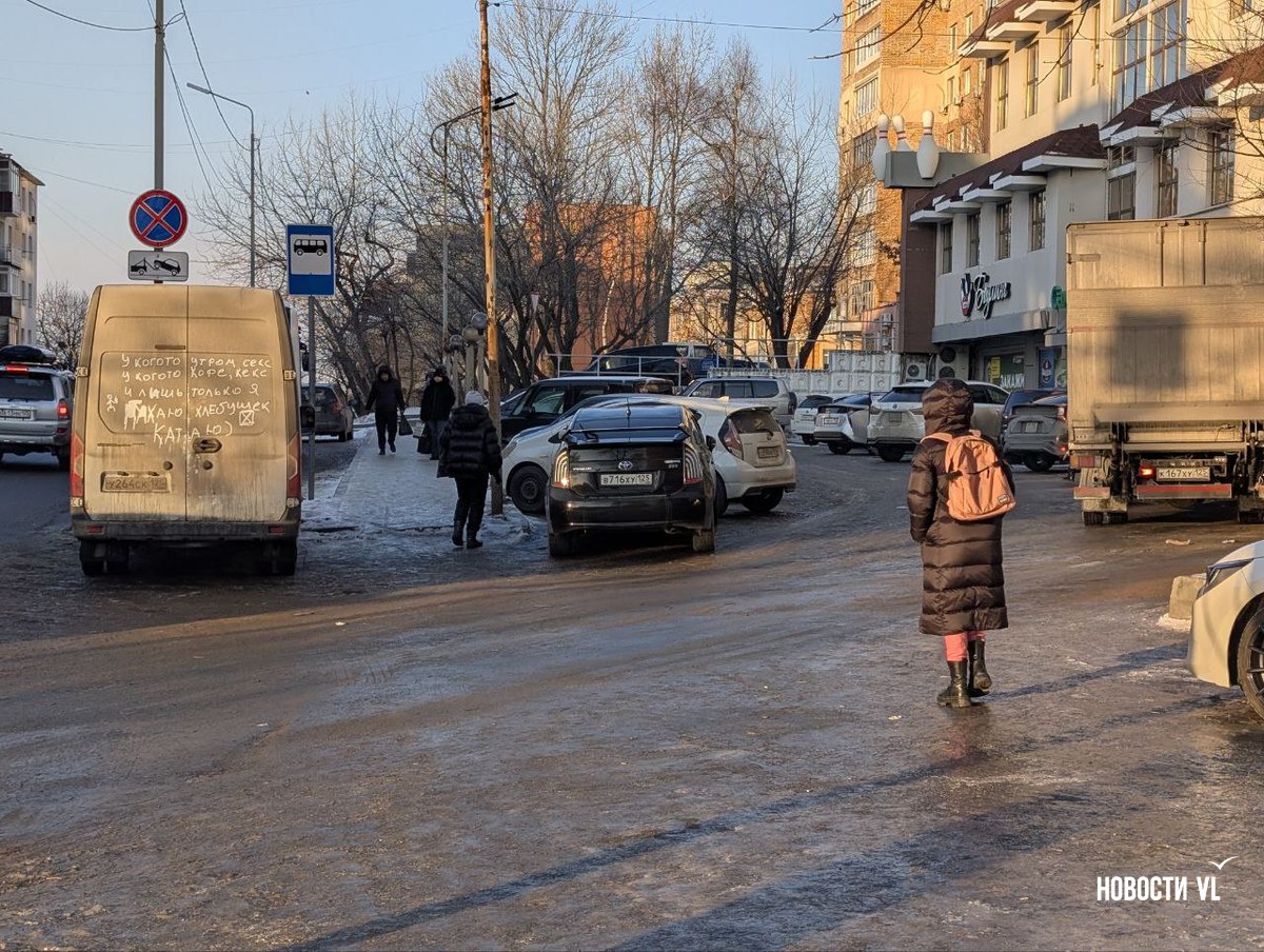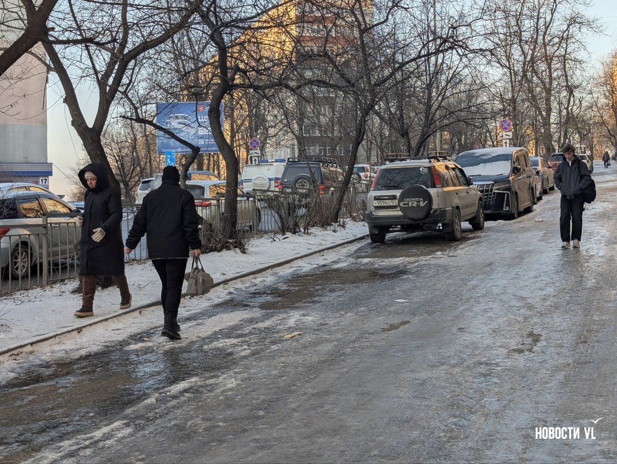 Гололёд наблюдается вокруг медучреждений. Читатели Новостей VL рассказывают, что возле женской консультации на Острякова, 6 видели, как упала беременная женщина. Местами на льду буксуют скорые.