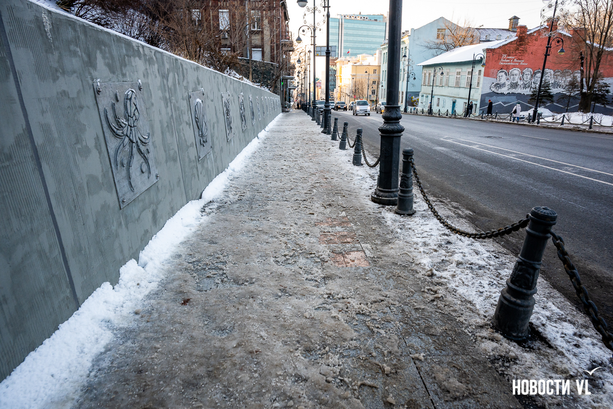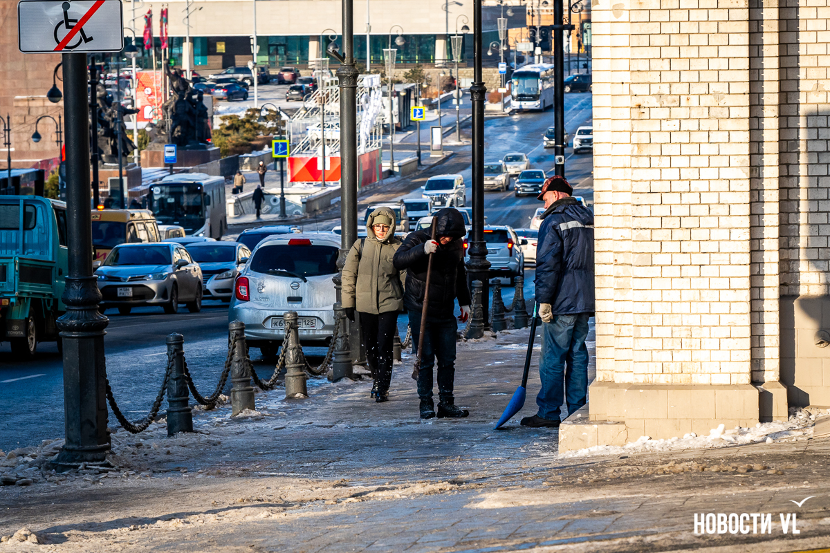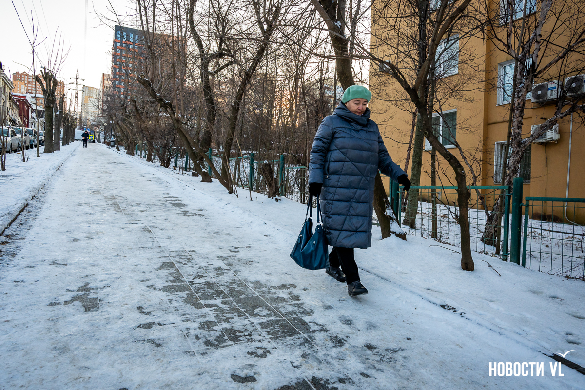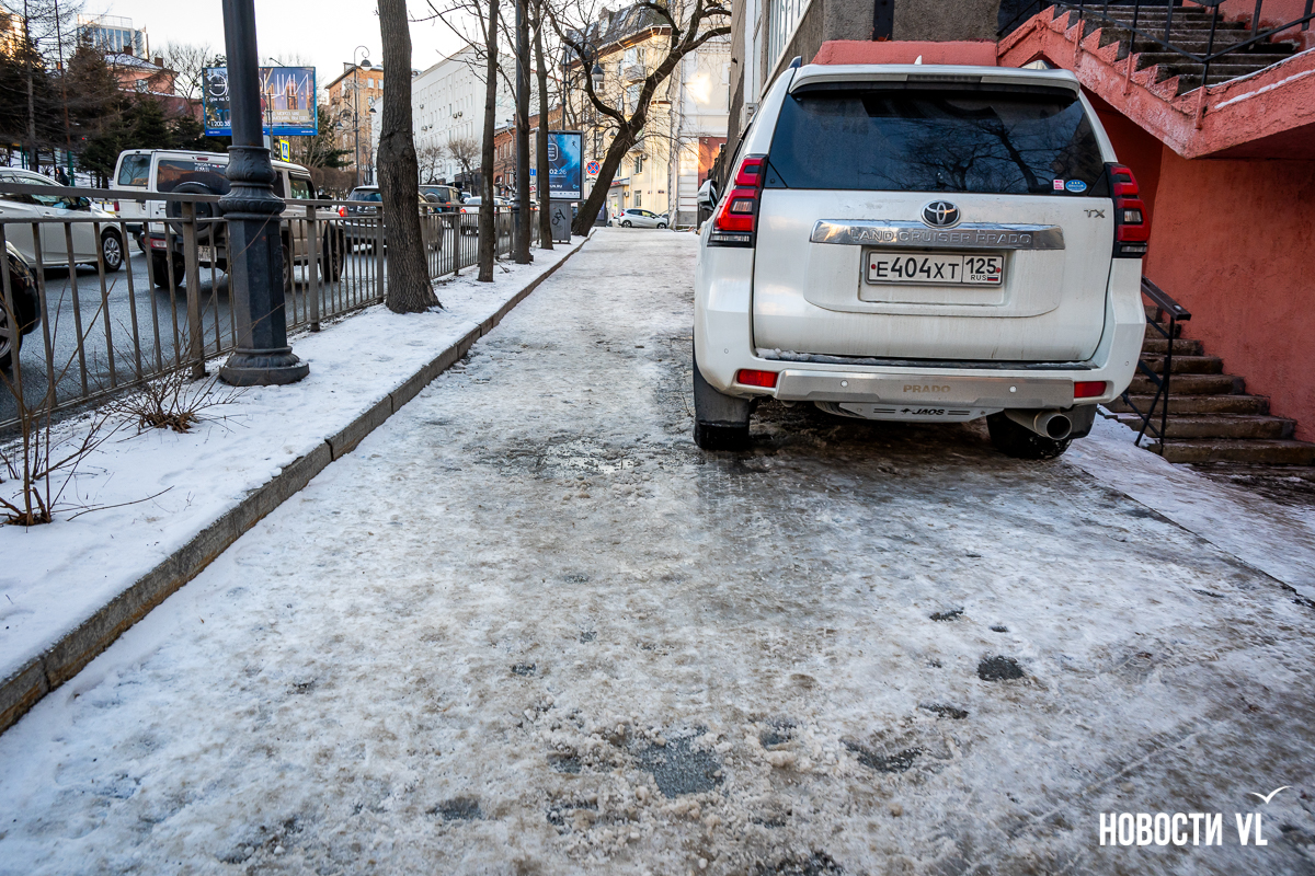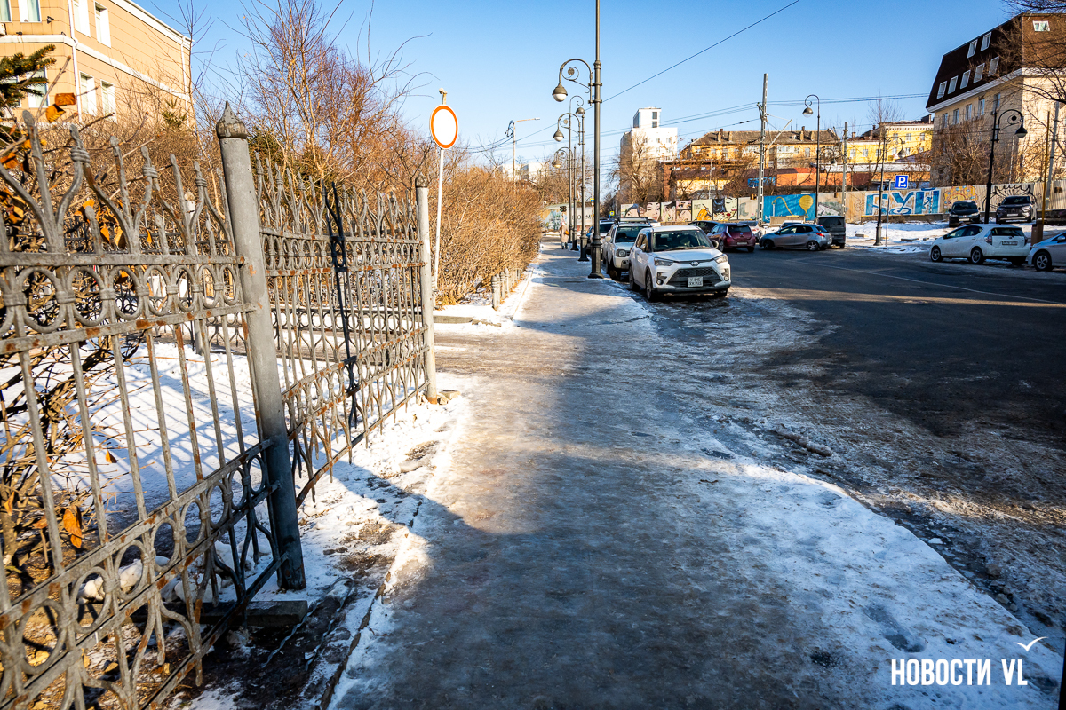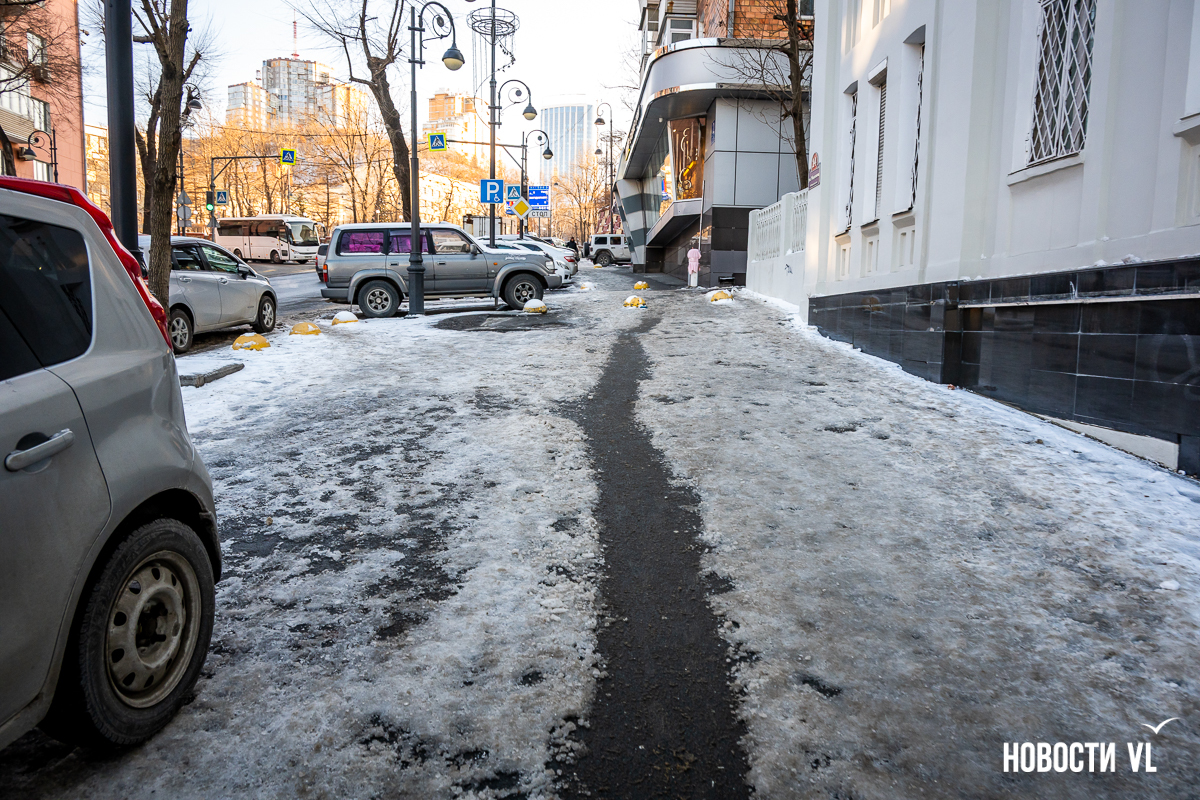 Владивосток всё ещё приходит в себя после снега с дождём, выпавшего два дня назад. Основные дороги были убраны оперативно, а вот тротуары – в толстой корке льда, при этом на многих участках нет даже песка. Плохую подготовку к непогоде показали не только муниципальные службы, но и управляющие компании и юрлица. Тех, кто оперативно не убрал снег и лёд, будут штрафовать, причём комиссии уже работают. Как рассказали Новостям VL в одной из УК, по процедуре – есть время на устранение нарушения, а штраф можно оспорить. Если же это не произойдёт, то платить компания будет из своей прибыли – брать деньги из средств дома запрещено.
