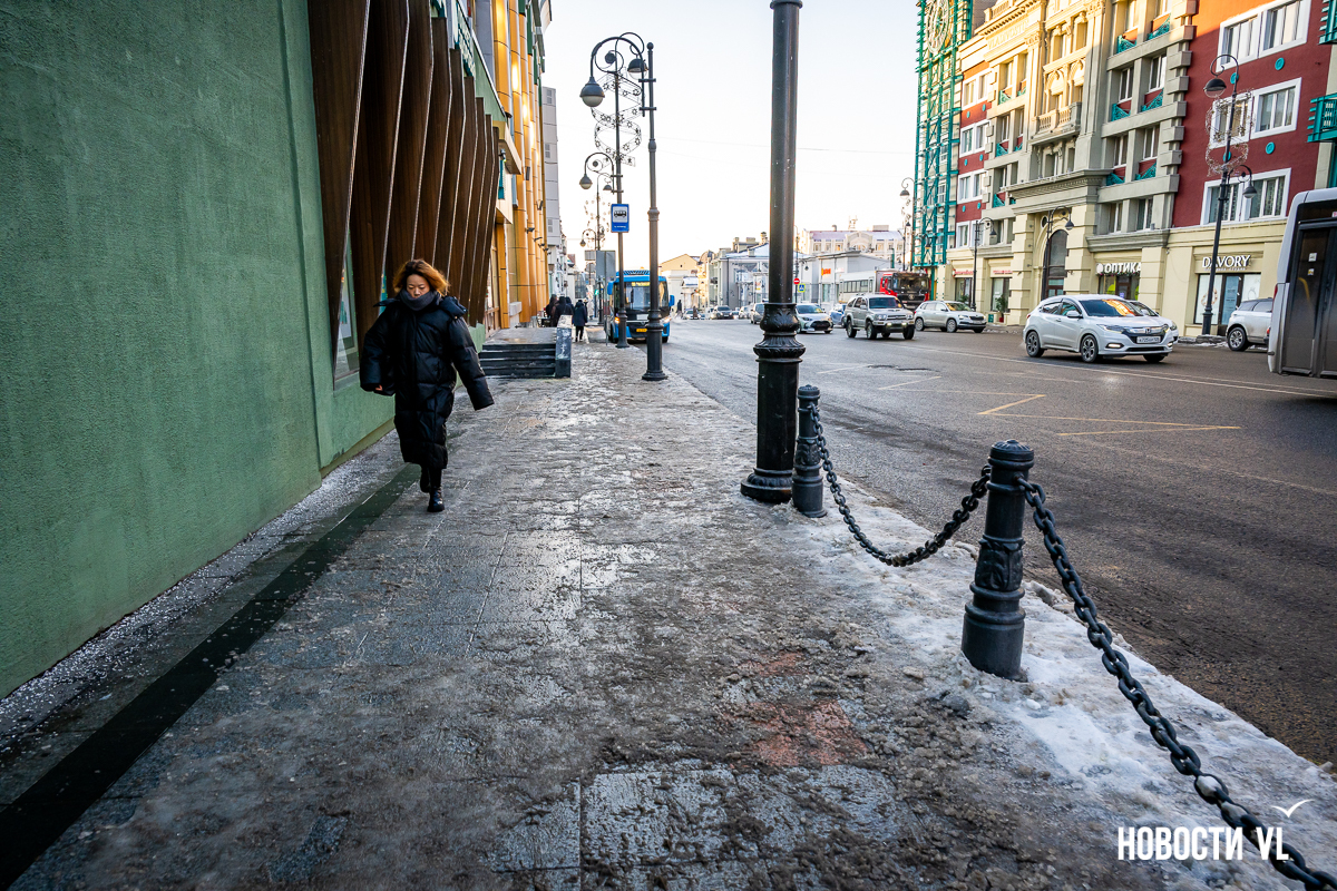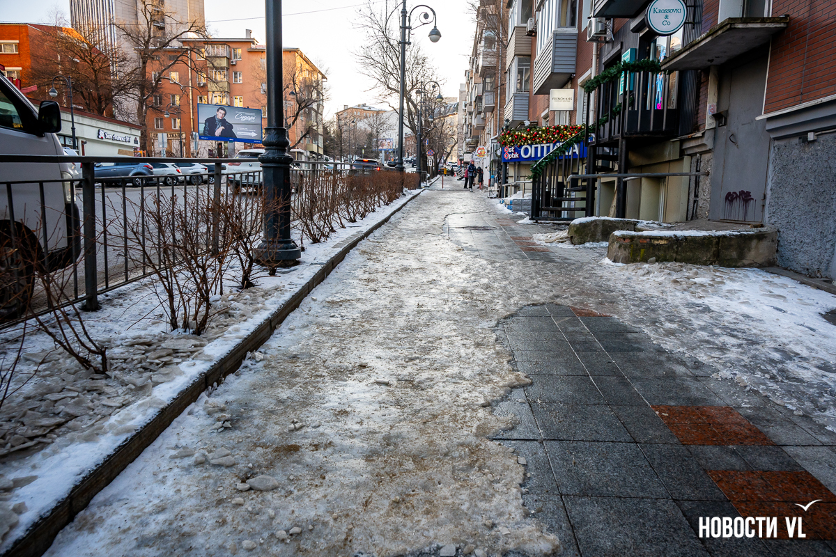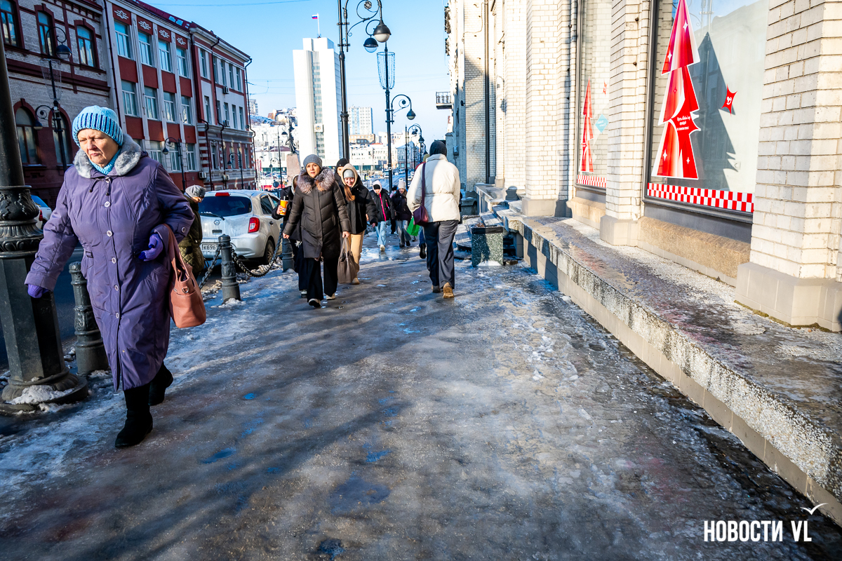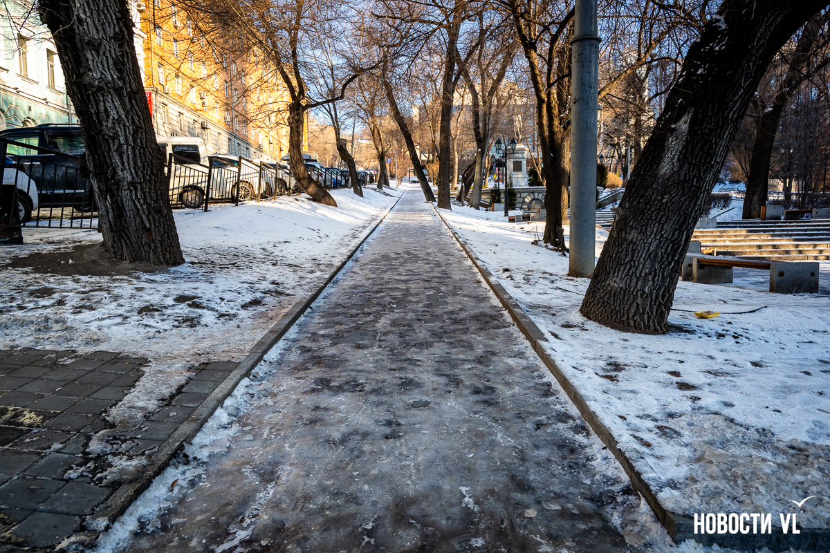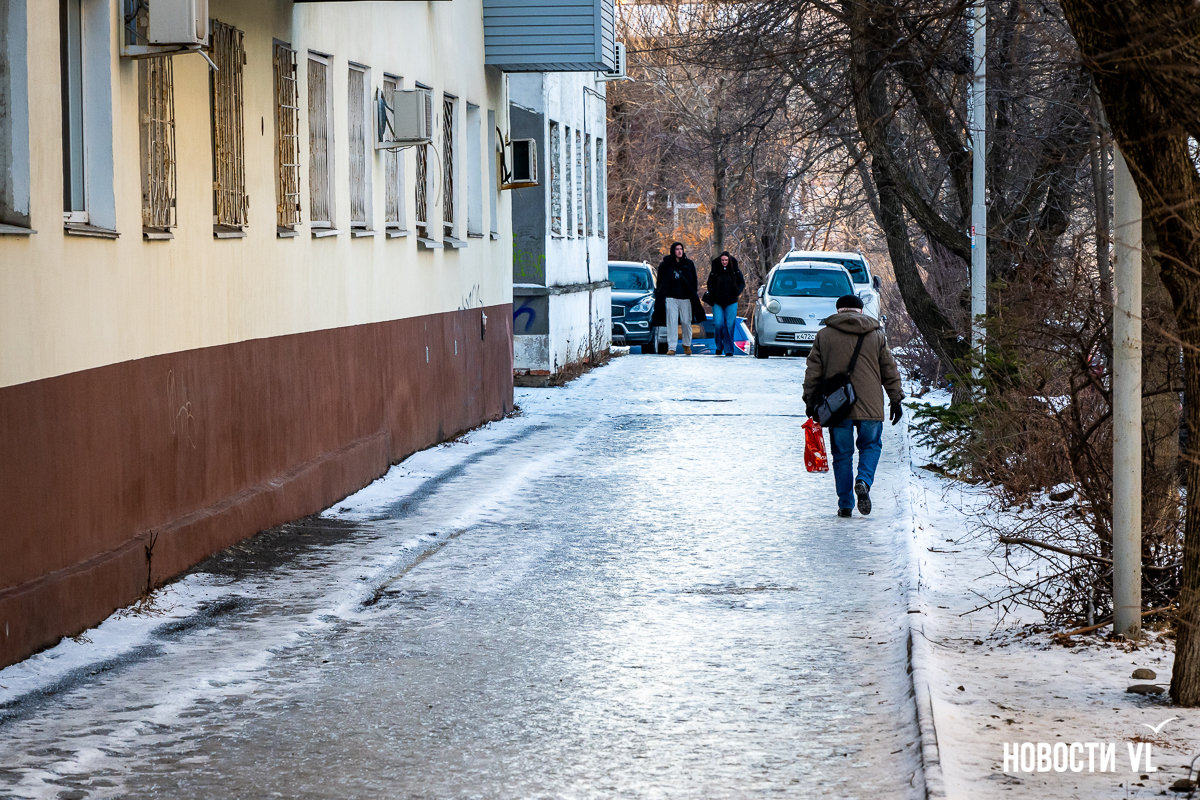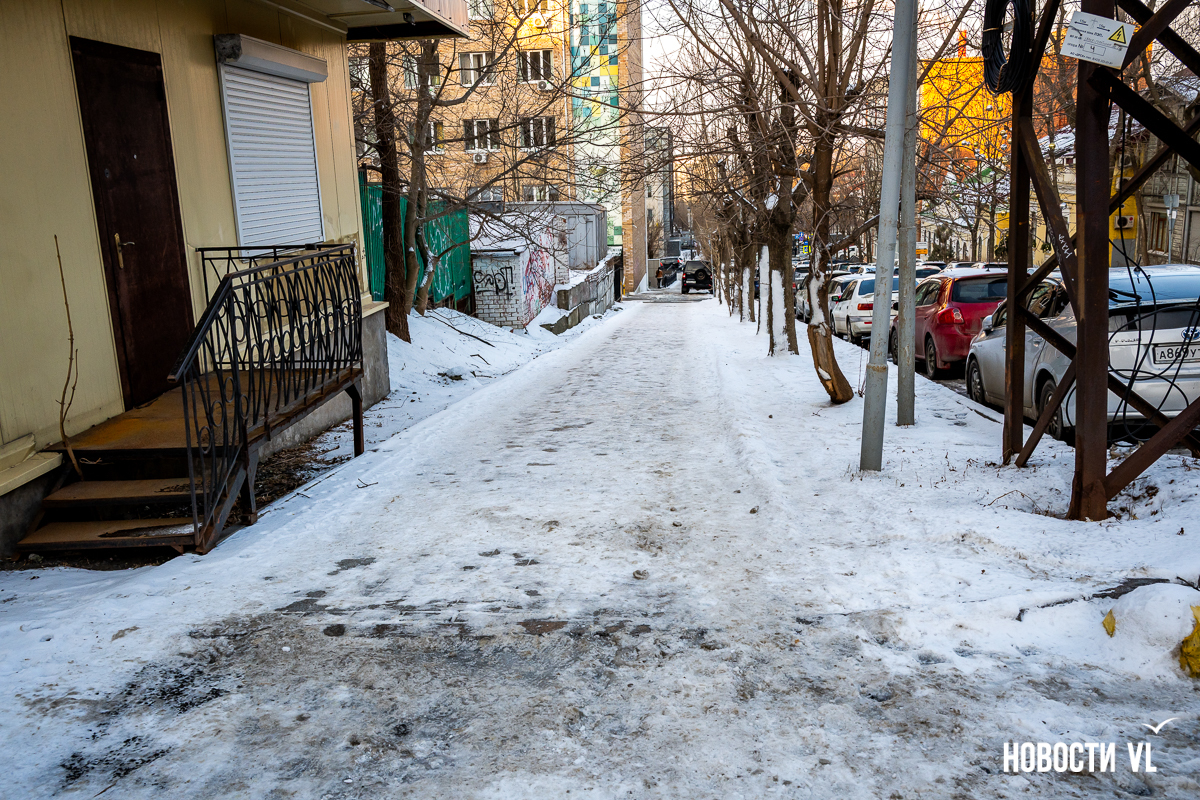Владивосток всё ещё приходит в себя после снега с дождём, выпавшего два дня назад. Основные дороги были убраны оперативно, а вот тротуары – в толстой корке льда, при этом на многих участках нет даже песка. Плохую подготовку к непогоде показали не только муниципальные службы, но и управляющие компании и юрлица. Тех, кто оперативно не убрал снег и лёд, будут штрафовать, причём комиссии уже работают. Как рассказали Новостям VL в одной из УК, по процедуре – есть время на устранение нарушения, а штраф можно оспорить. Если же это не произойдёт, то платить компания будет из своей прибыли – брать деньги из средств дома запрещено.