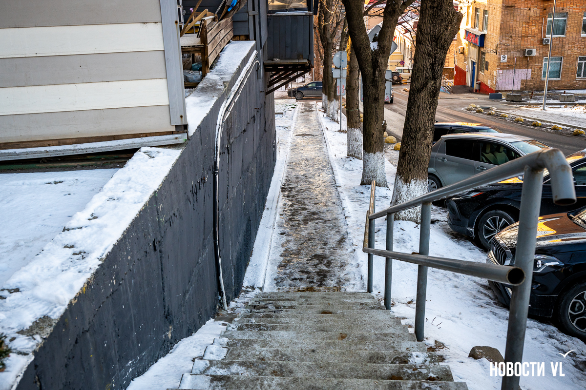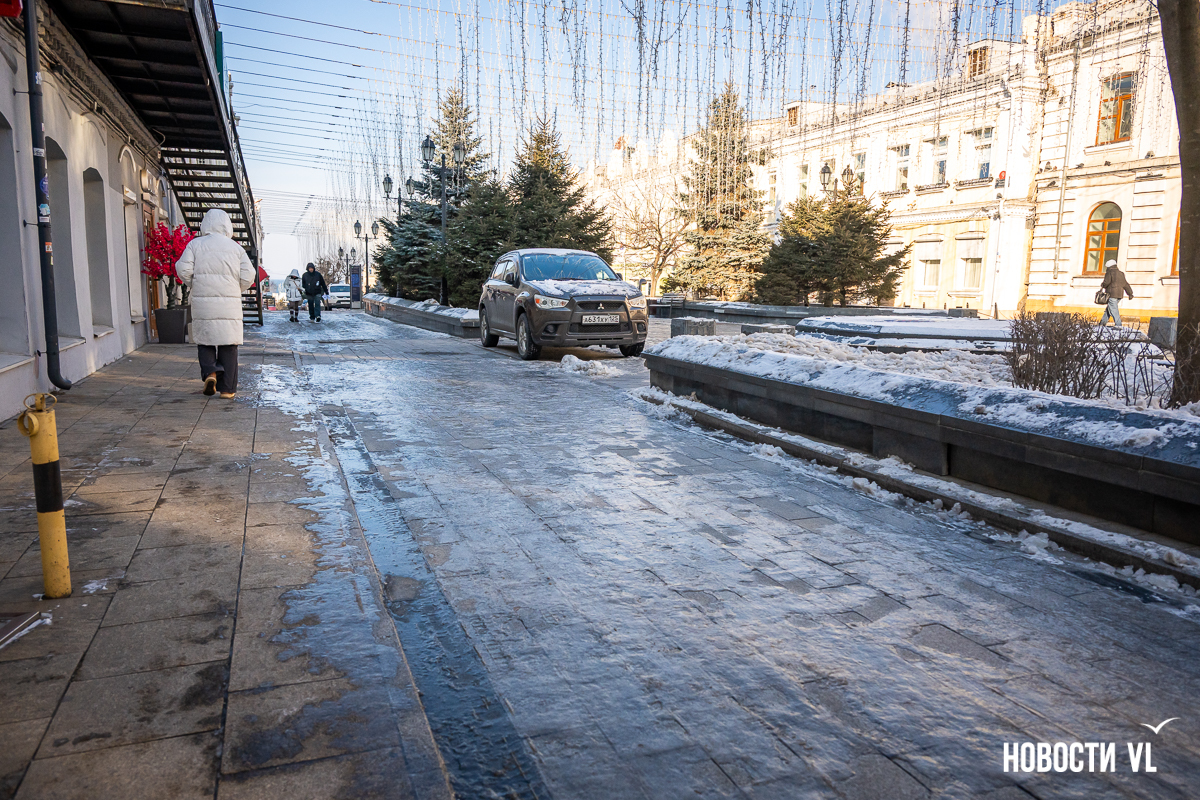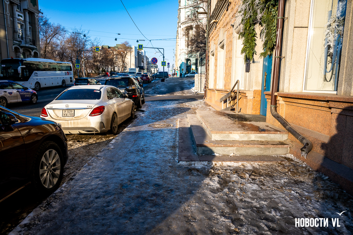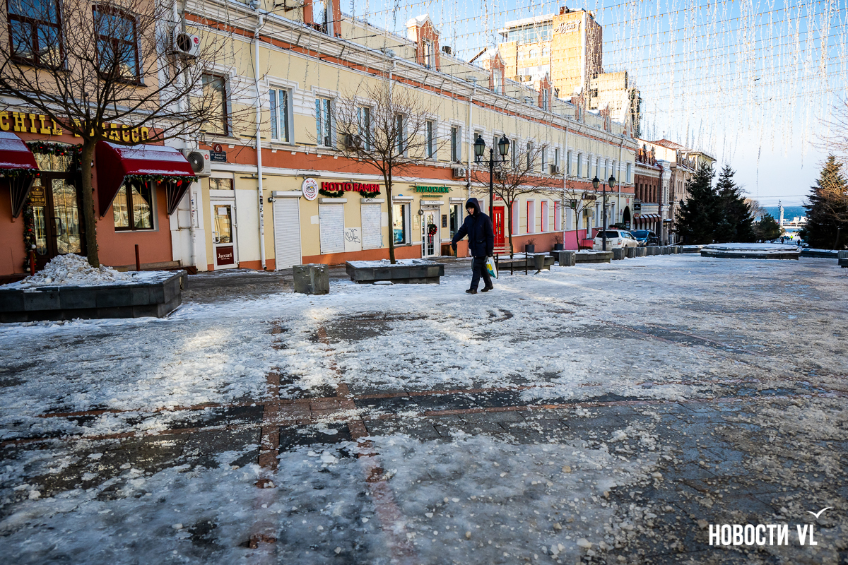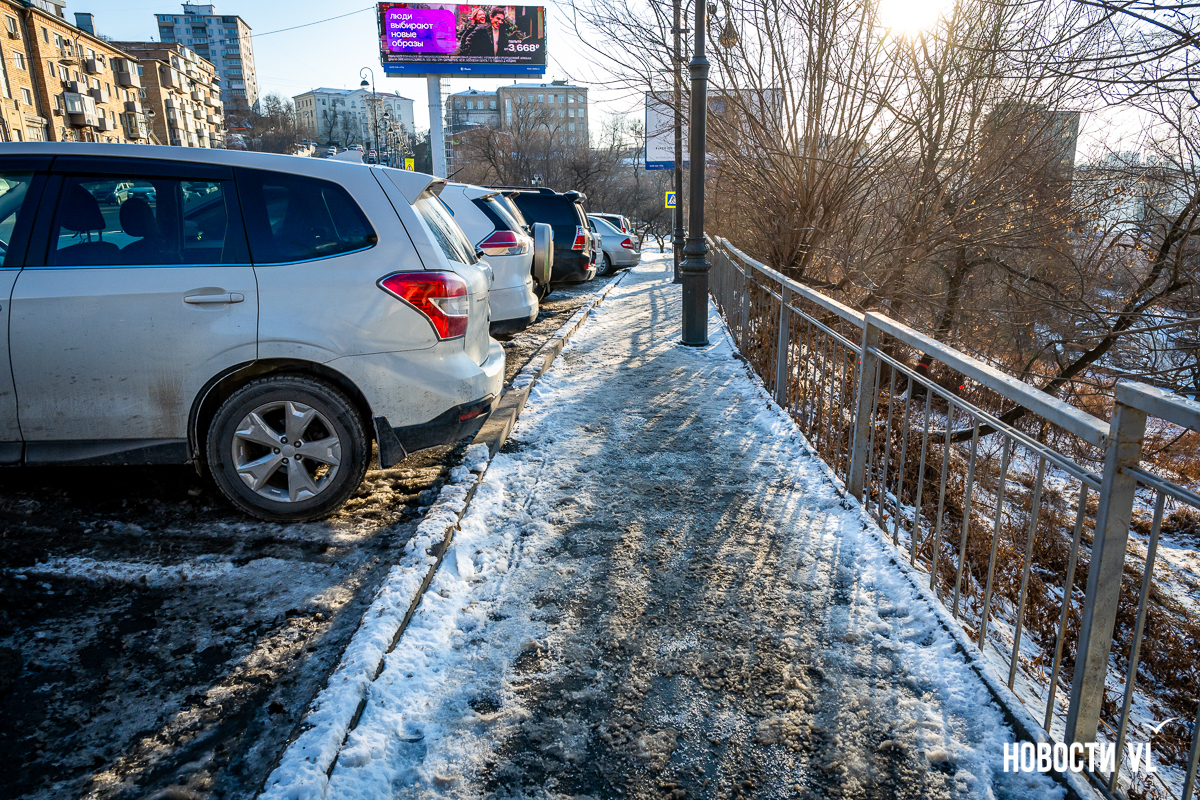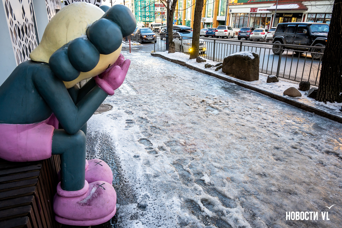 Владивосток всё ещё приходит в себя после снега с дождём, выпавшего два дня назад. Основные дороги были убраны оперативно, а вот тротуары – в толстой корке льда, при этом на многих участках нет даже песка. Плохую подготовку к непогоде показали не только муниципальные службы, но и управляющие компании и юрлица. Тех, кто оперативно не убрал снег и лёд, будут штрафовать, причём комиссии уже работают. Как рассказали Новостям VL в одной из УК, по процедуре – есть время на устранение нарушения, а штраф можно оспорить. Если же это не произойдёт, то платить компания будет из своей прибыли – брать деньги из средств дома запрещено.