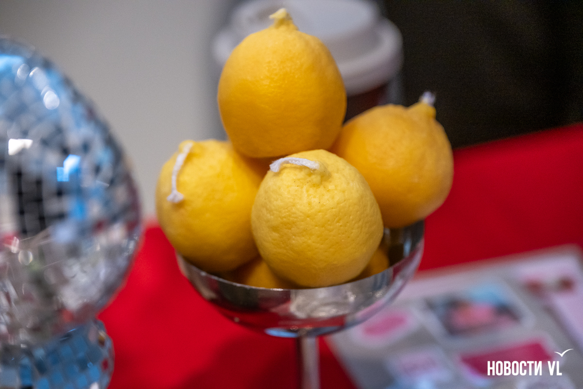 По соседству, на другом прилавке, – матрёшка, лошадка, старые ёлочные игрушки. Но это не то, чем кажется – это свечи. Самые разные – и такие, и в форме леденцов на палочке, и в форме мандаринов. И лимоны в вазочке, абсолютно неотличимые от настоящих. Дарить их лучше с пожеланием – пусть у тебя будет миллионов, как здесь лимонов.