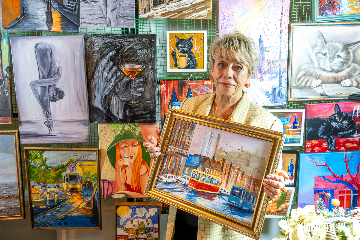 Все картины без ценников. Ольга Гордиенко рассказывает – здесь нет салонной наценки, работы продаются от первого лица, хотя салон есть, на Светланской. Полотна покрупнее стоят 10-12 000 рублей.
