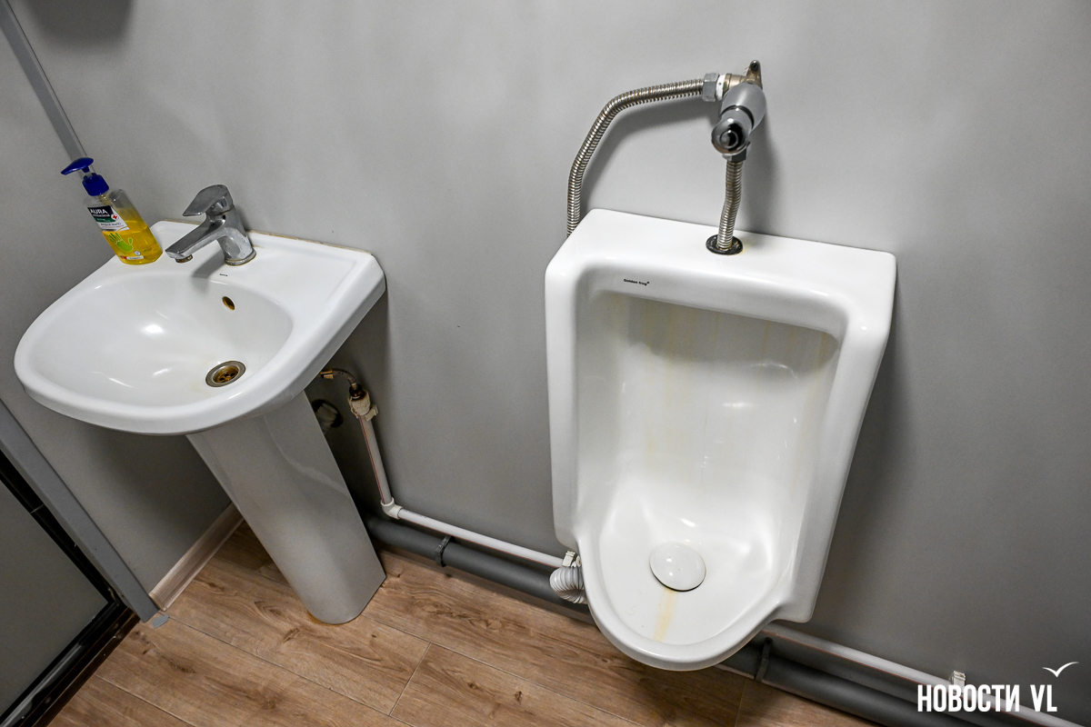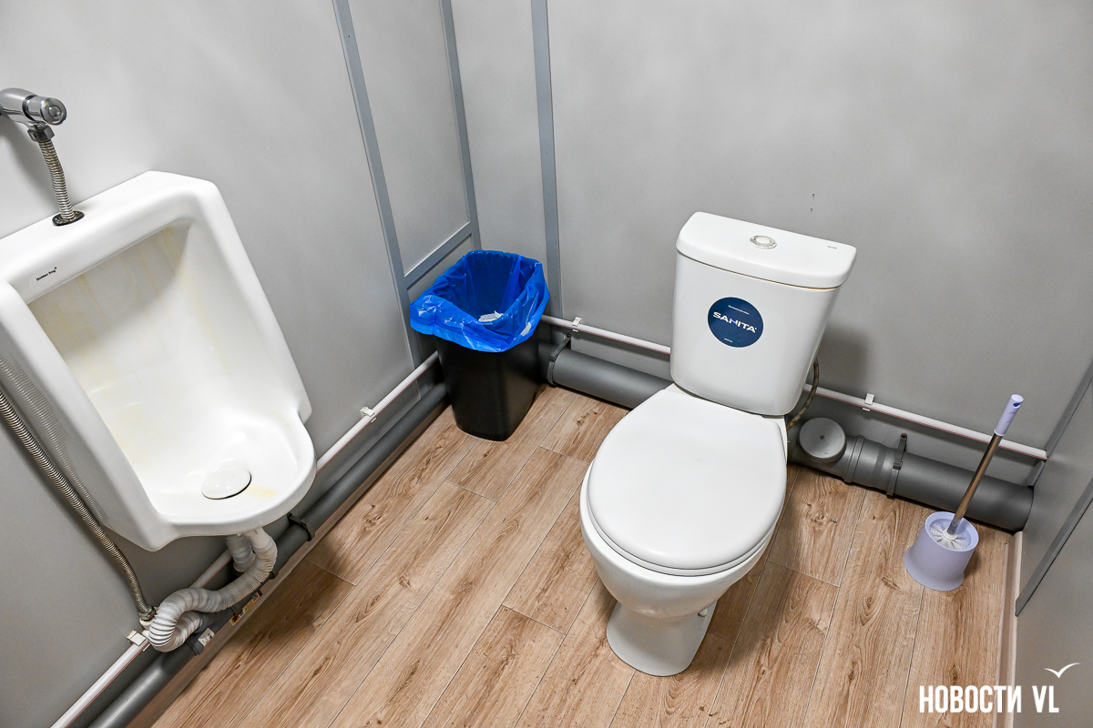 Сразу за входной группой слева – прокат лыж и сервис с камерой хранения. Рядом установлены туалеты, четыре отдельные кабинки. Это не пластиковые биотуалеты, внутри всё достаточно просторно и комфортно – унитаз и писсуар, раковина, бумажные полотенца и сушилка.