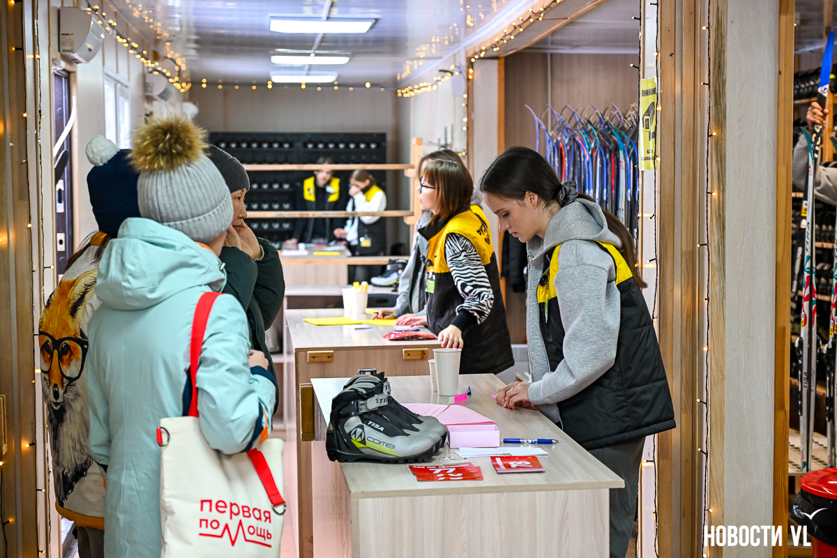 Каждому, кто сегодня брал лыжи в прокат, выдавали номер – в 14:00 прошла лотерея с новогодними призами. Они остались с прошлого года – в декабре 2024 года «Русской лыжне» исполнилось пять лет, нынешний сезон – шестой. Записаться на лотерею отдельно могли и те, кто пришёл со своим инвентарём. А праздничные старты решили не проводить для безопасности – сегодня исключительно режим свободного катания, потому что малый круг пока делят и новички, и профессионалы.