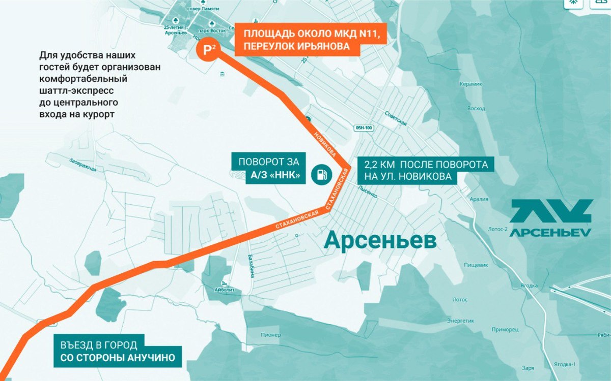 Одна из парковок будет расположена около канатной дороги «Д», это бывшая парковка «Арсгоры». Пройти через неё в зону катания можно будет только при наличии ски-пасса, приобретённого в кассах курорта или в интернет-магазине. Количество мест ограничено. Дополнительная парковка расположена на площади около многоквартирного дома № 11, в переулке Ирьянова. Между парковкой и курортом с интервалом 15-20 минут будут курсировать автобусы.