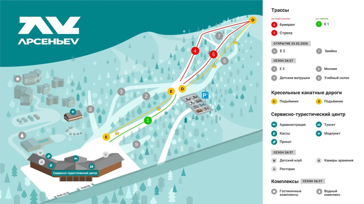 В среду, 31 декабря, в 10:00 в тестовом режиме откроется горнолыжный курорт «Арсеньев». Здесь будут доступны две канатные дороги, трассы разной степени сложности и две парковки. Ски-пассы можно купить на месте и в интернет-магазине, который заработает 31 декабря.