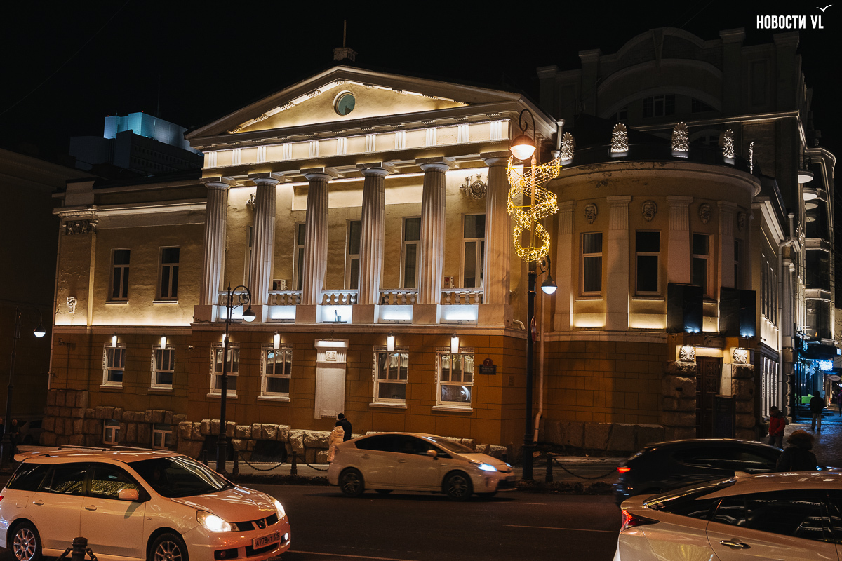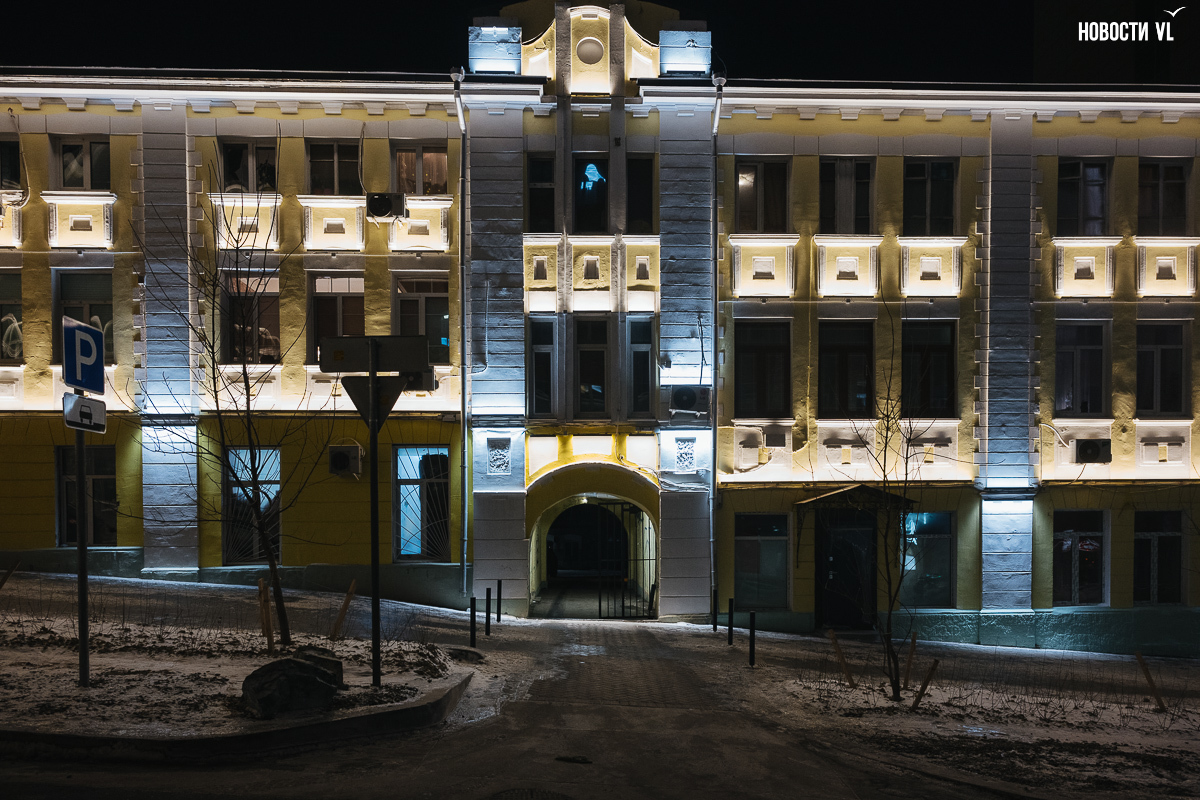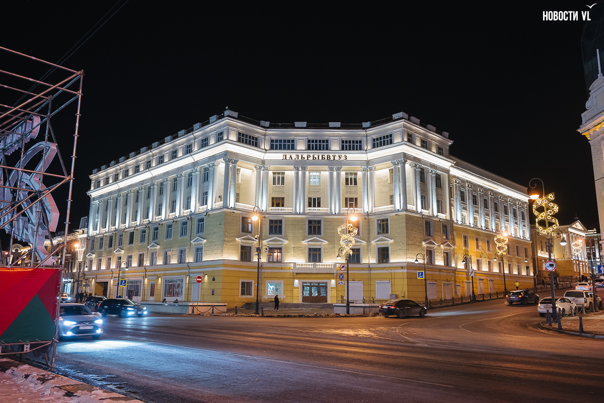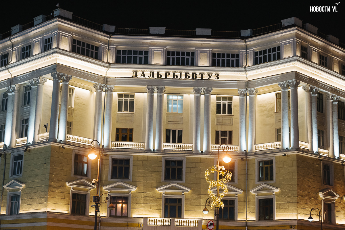 В 2025 году на подсветку 19 зданий выделили 53 млн рублей, работы по стартовой цене по заказу ВПЭС выполнила компания «Дальстройбизнес II», она же устанавливала архитектурную подсветку два года назад. Формально контракт ещё на исполнении. Как уточнили в компании, все работы по договору уже завершены.