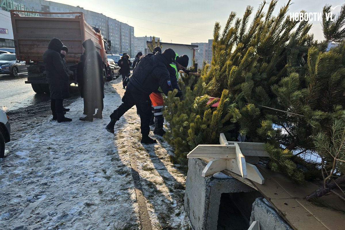 Разговаривать с корреспондентом Новостей VL.ru ни те, ни другие продавцы не стали. Но их бизнес был недолгим: сегодня к ним снова приехала прокуратура, «Тигр» и «СГТ». Сосны свалили в кузов грузовика и увезли на площадку временного хранения.