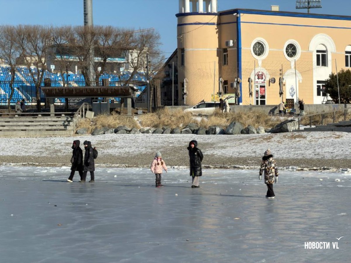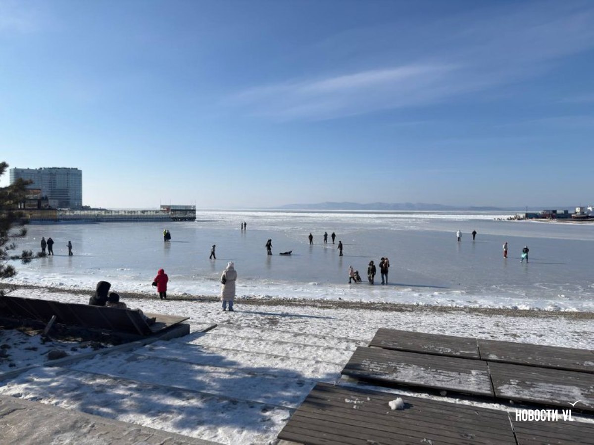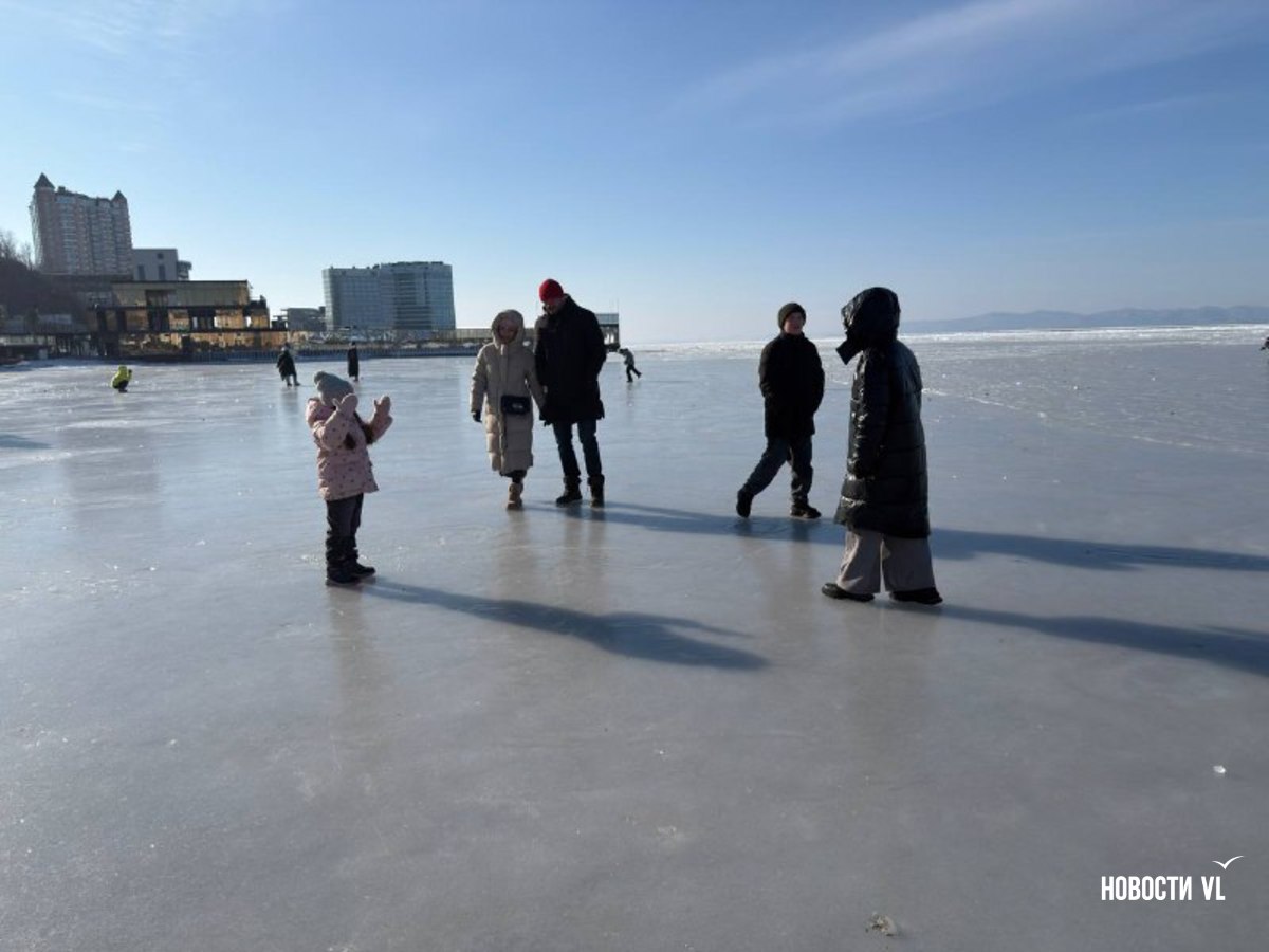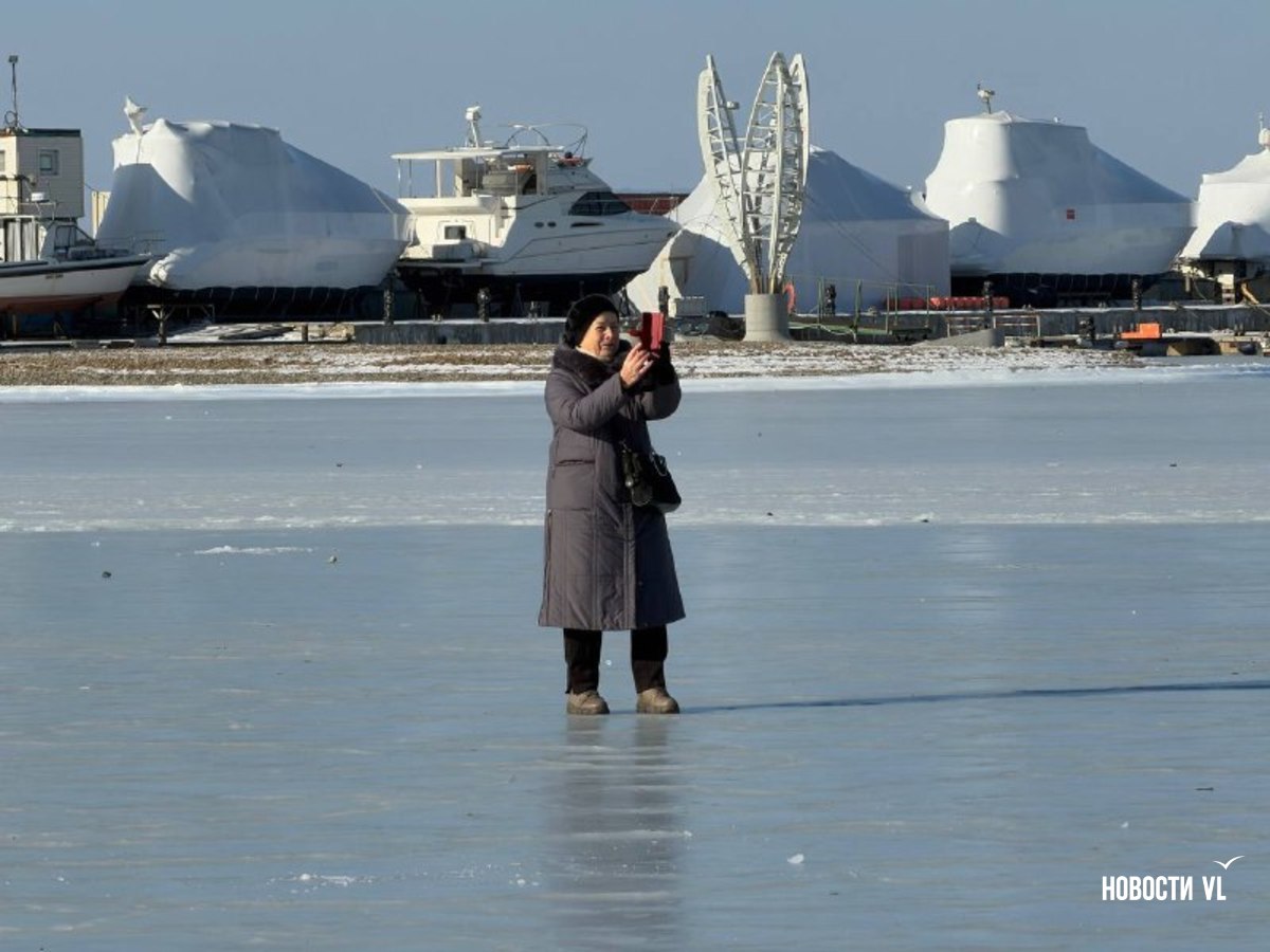 Спортивная гавань Владивостока превратилась в продолжение набережной. Горожане и гости города начали выходить на лёд акватории, не смотря на запрет. Люди по льду гуляют как в одиночку, так и компаниями и семьями. Далеко заходить никто не рискует, в основном катаются и фотографируются все в районе берега. При этом сегодня в дальневосточной столице достаточно тепло и нет сильного ветра, поэтому людей на улице очень много.