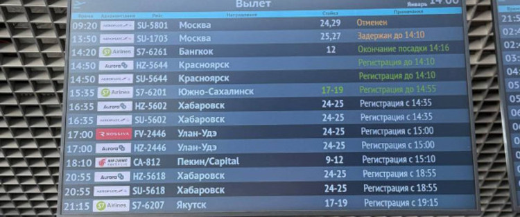 Вылет рейса «Аэрофлота» SU-5801 из Владивостока в Москву отложен поти на сутки, до утра среды, 7 января. Отправления ждут 379 пассажиров.