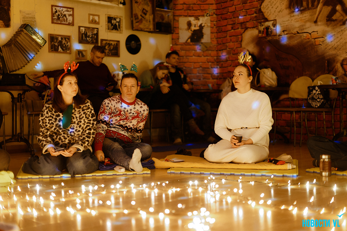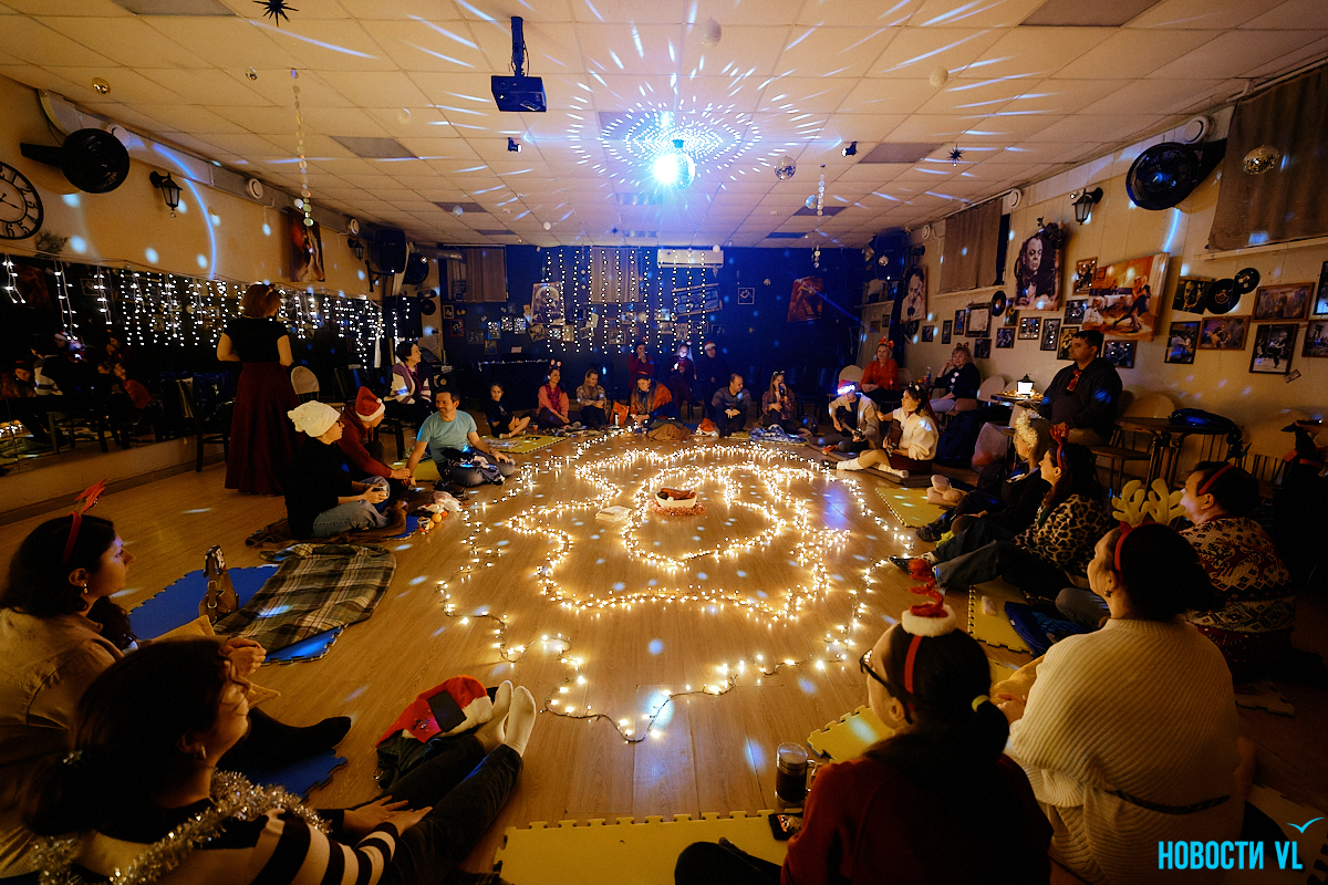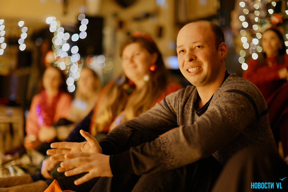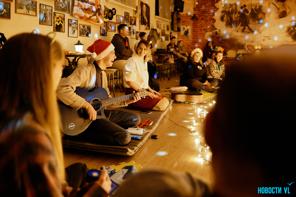 Под каждую встречу нужно найти помещение. Хорошо бы попросторней: на последнюю, праздничную, пришли 68 человек – именно столько рождественских носков раздали гостям в честь праздника. «Квартирный» вопрос решить было непросто: нужно было подходящее по размеру помещение, которое было бы доступно по цене аренды, но постепенно и этот вопрос уладился. С ноября люди собираются в танцевальной студии Nuestro в центре города. Анонсы посиделок можно найти на «Афише» на VL.ru. Организационный сбор составляет 800 рублей для взрослого и 500 для ребёнка – эти деньги идут на оплату аренды, угощения. Летом собирались бесплатно на Русском острове – оборудовали поляну в лесу, поставили скамейки. Появился своеобразный лагерь, в котором можно собрать разных людей – поёте вы, танцуете, или играете.