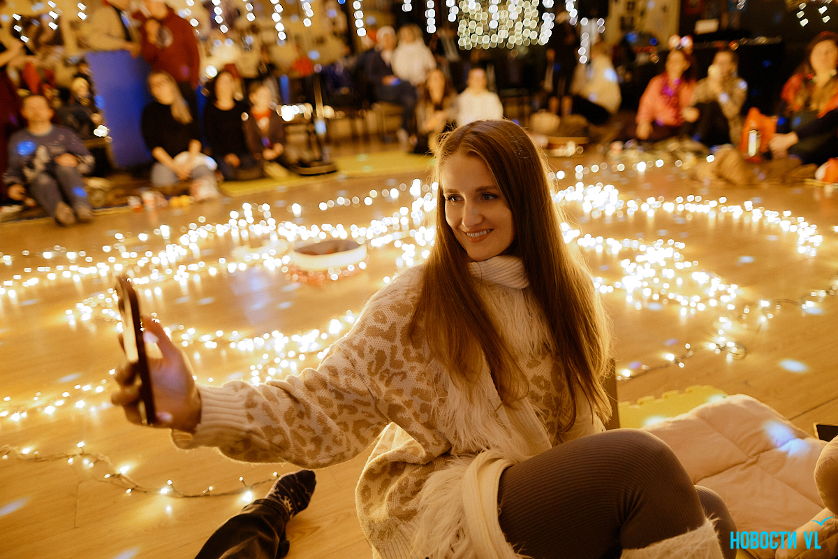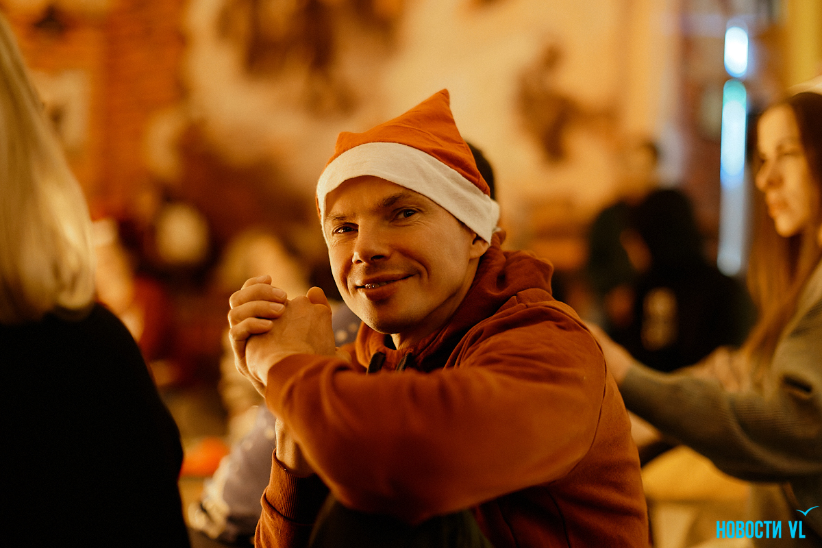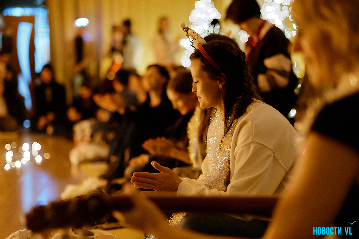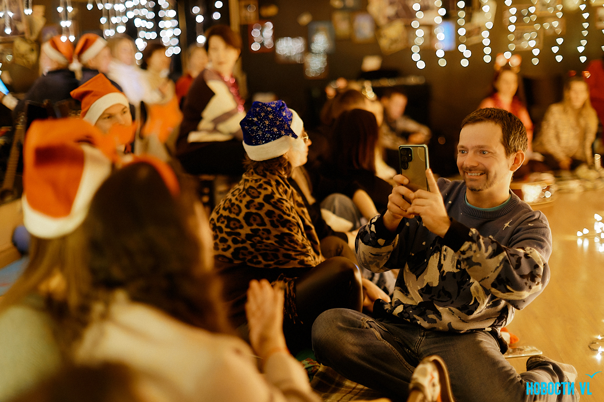 Под каждую встречу нужно найти помещение. Хорошо бы попросторней: на последнюю, праздничную, пришли 68 человек – именно столько рождественских носков раздали гостям в честь праздника. «Квартирный» вопрос решить было непросто: нужно было подходящее по размеру помещение, которое было бы доступно по цене аренды, но постепенно и этот вопрос уладился. С ноября люди собираются в танцевальной студии Nuestro в центре города. Анонсы посиделок можно найти на «Афише» на VL.ru. Организационный сбор составляет 800 рублей для взрослого и 500 для ребёнка – эти деньги идут на оплату аренды, угощения. Летом собирались бесплатно на Русском острове – оборудовали поляну в лесу, поставили скамейки. Появился своеобразный лагерь, в котором можно собрать разных людей – поёте вы, танцуете, или играете.
