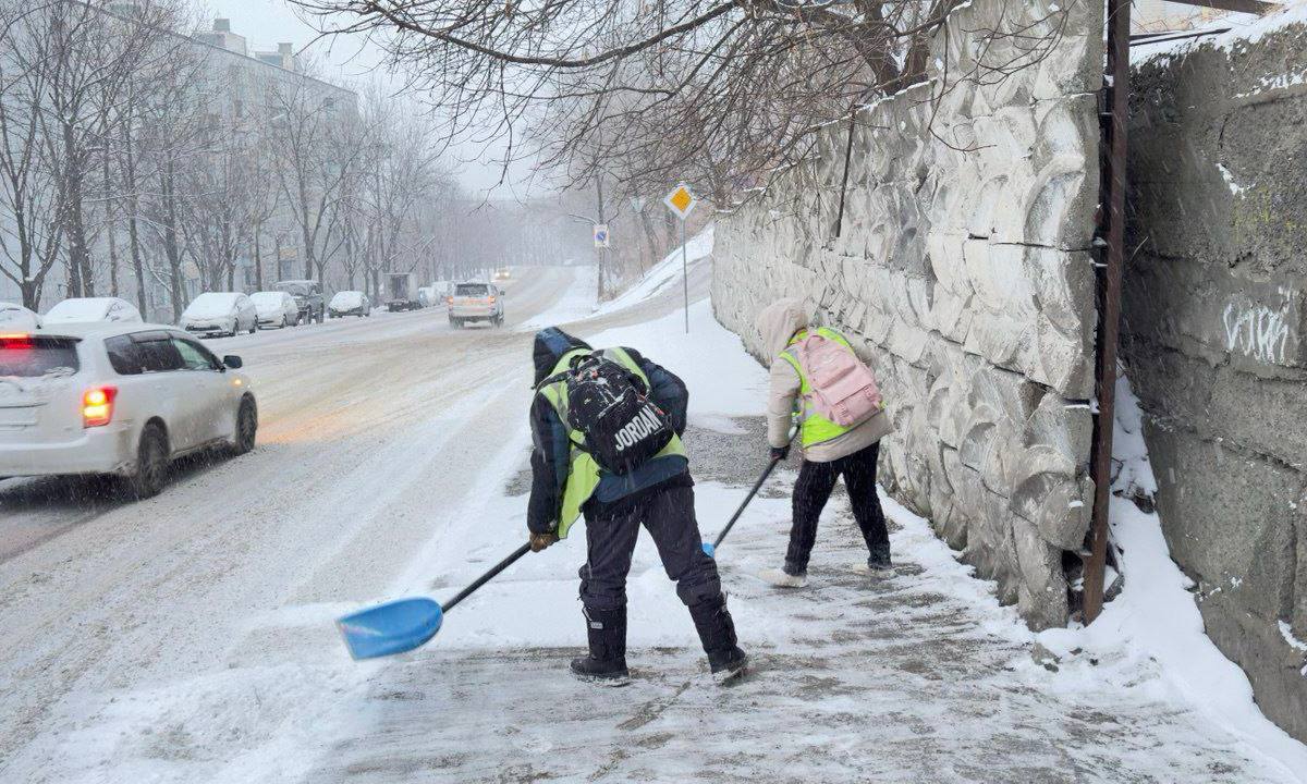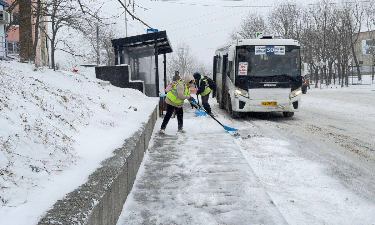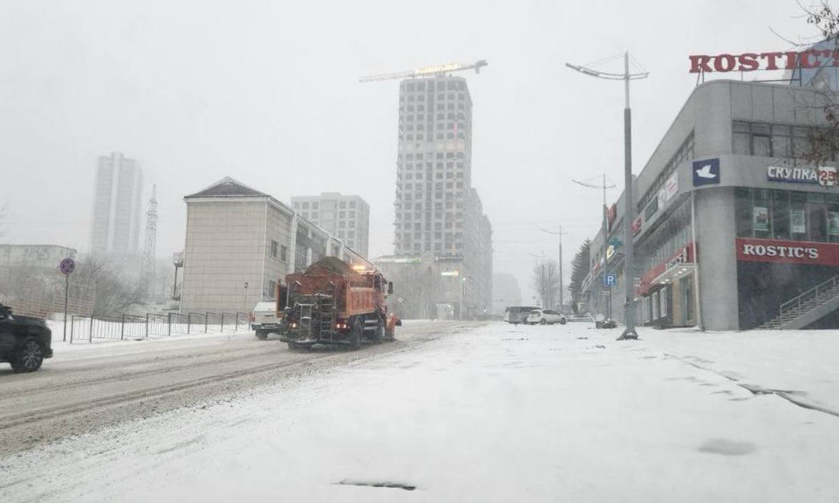 Во Владивостоке идёт снег. Движение по Капитана Шефнера перекрыто. Дорожники убирают главные улицы и обрабатывают опасные спуски и подъёмы.