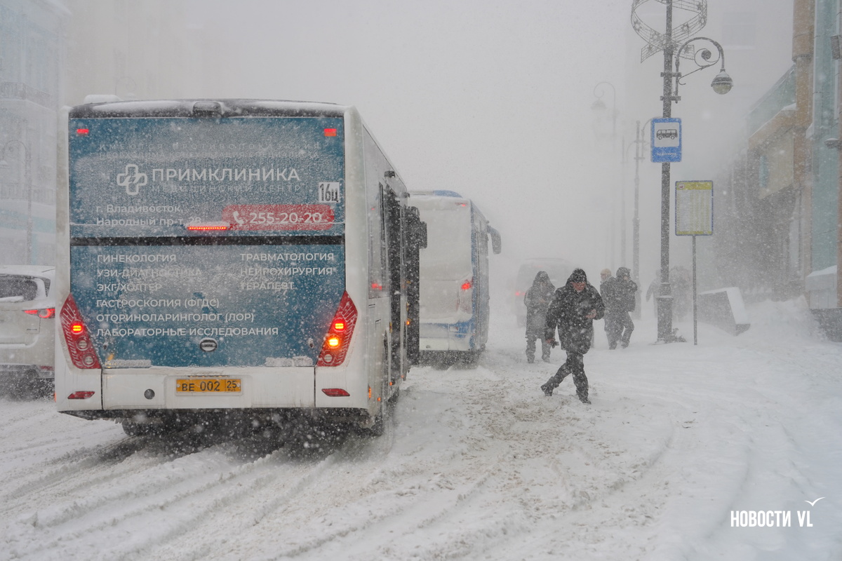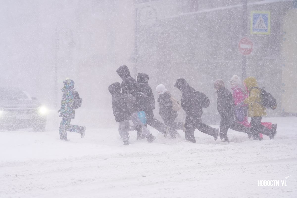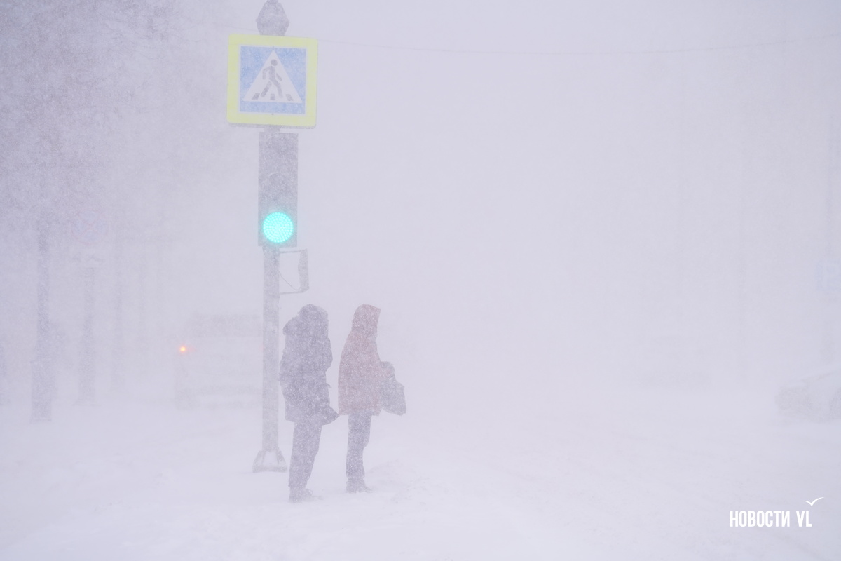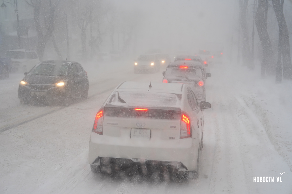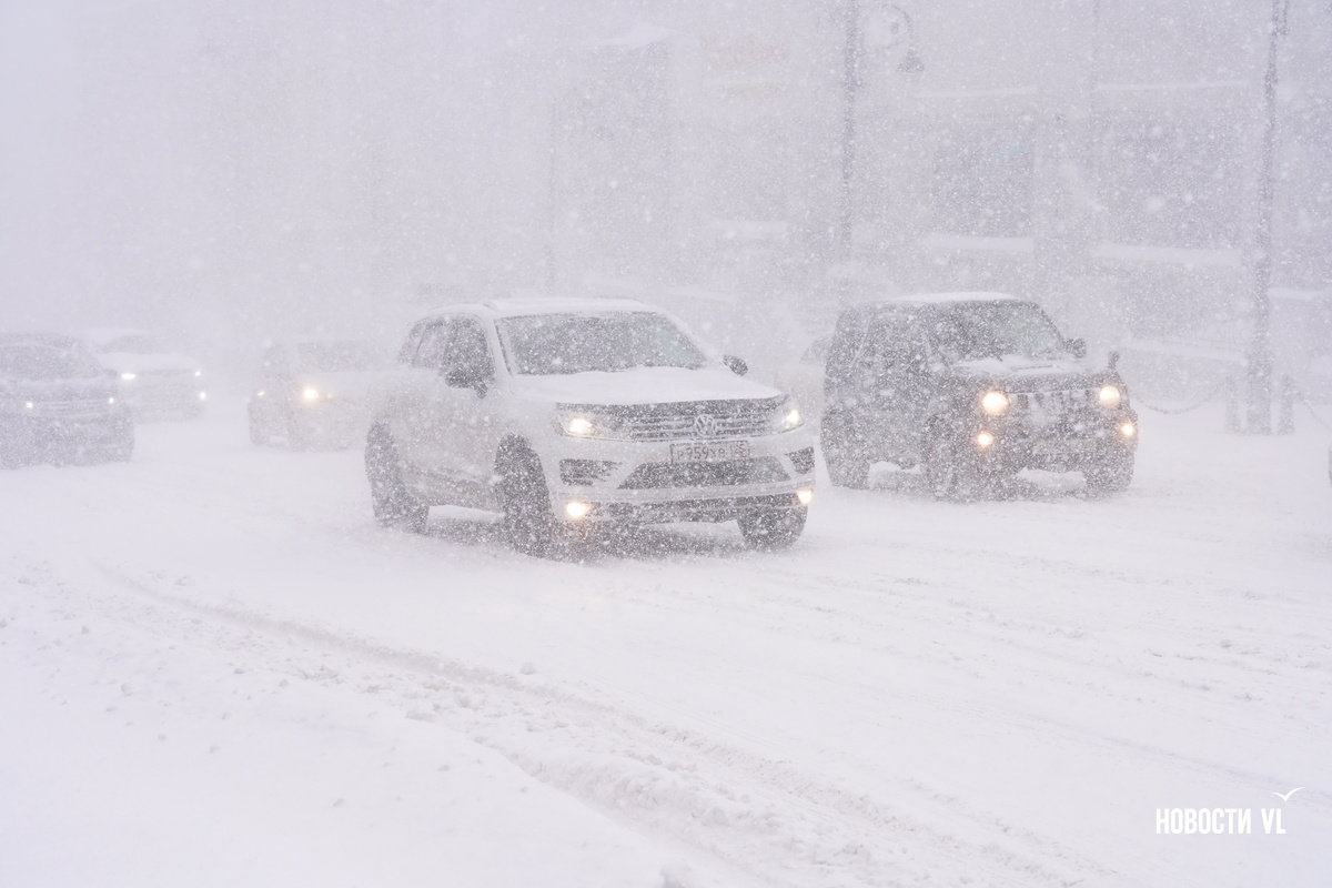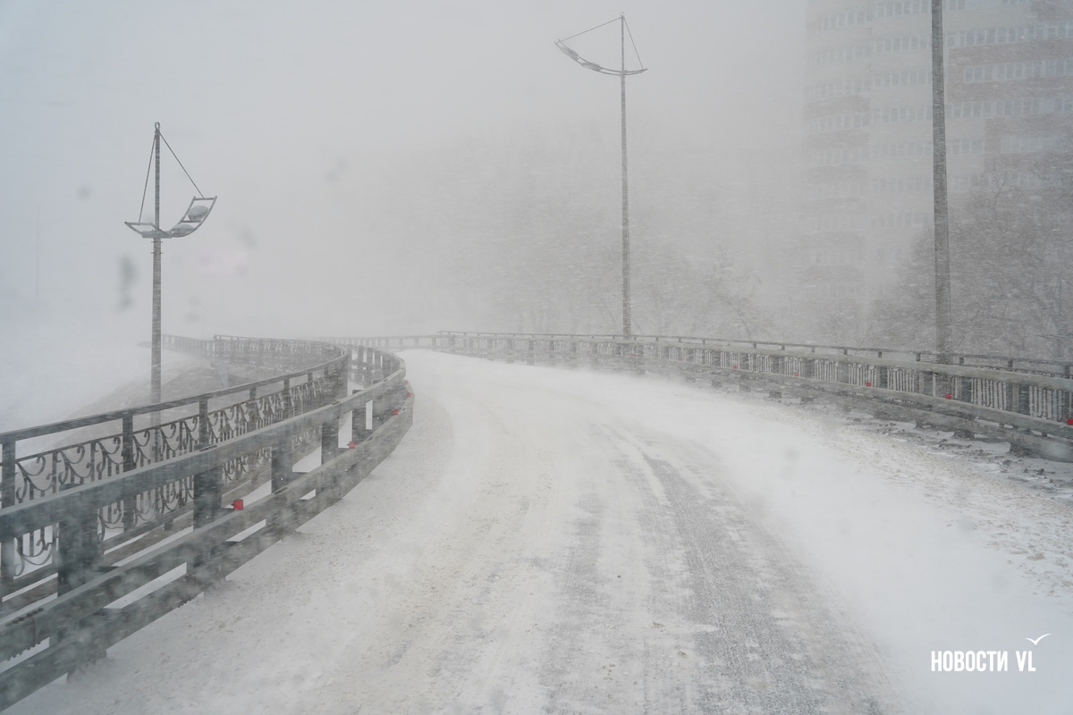 Снег и ветер усиливаются. Наиболее сильные осадки с порывами ветра до 30 м/с ориентировочно будут продолжаться до вечера. Для безопасности автомобилистов во Владивостоке ограничено движение большегрузов. Временно закрыт проезд по улице Капитана Шефнера.
