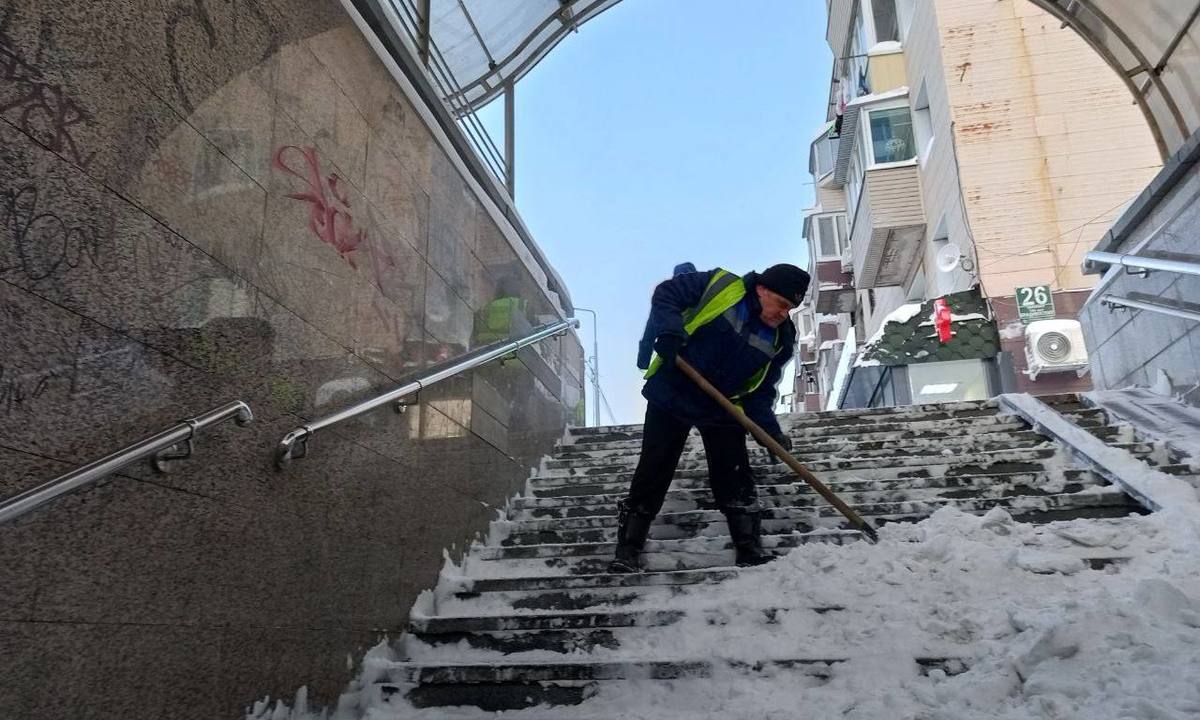 На улицы вышли дополнительные бригады рабочих, которые вручную будут очищать от снега и наледи автобусные остановки, виадуки, подземные переходы и тротуары.