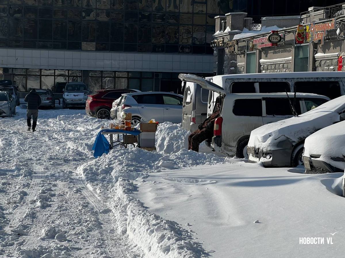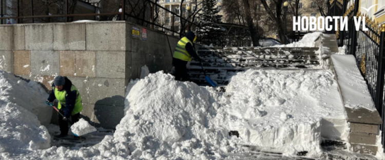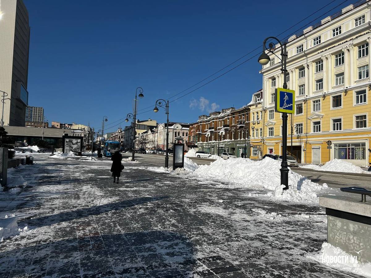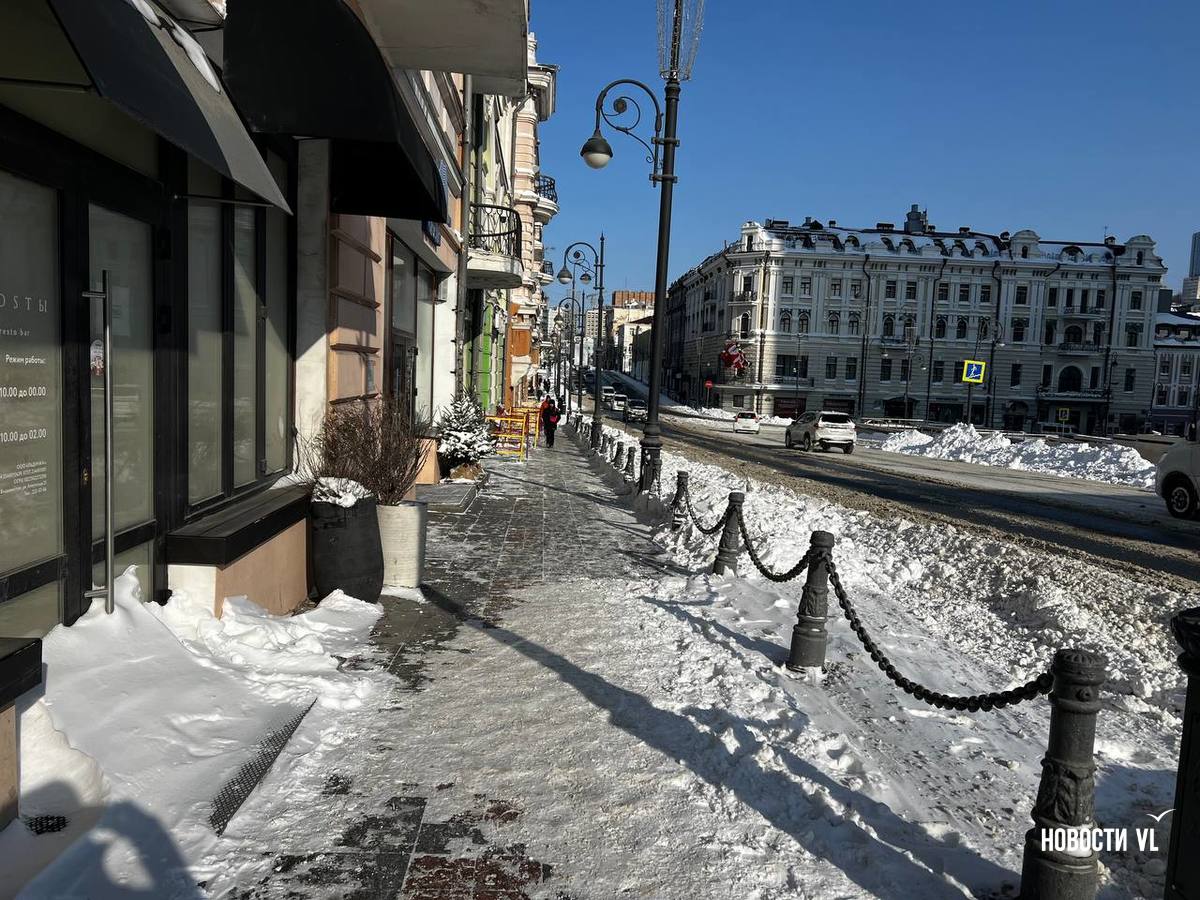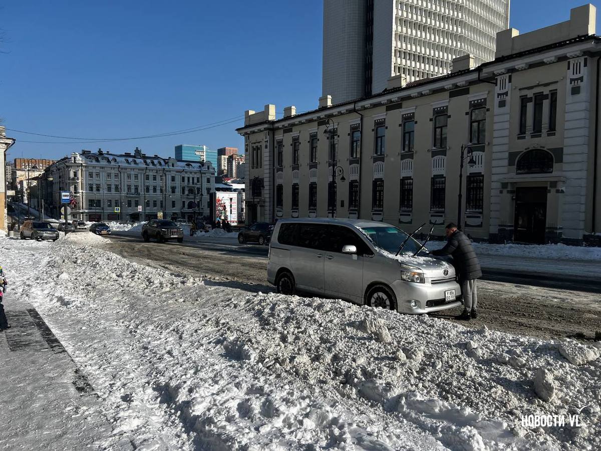 Снежный циклон, который принёс во Владивосток месячную норму осадков со штормовым ветром, отступил ночью 11 января. С утра уже было солнечно и ветер так не завывал. Битву с последствиями снегопада продолжила городская техника, а жители и владельцы заведений вышли им на подмогу.