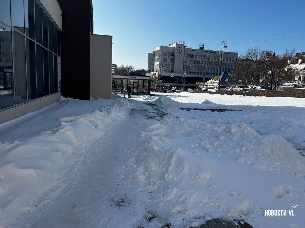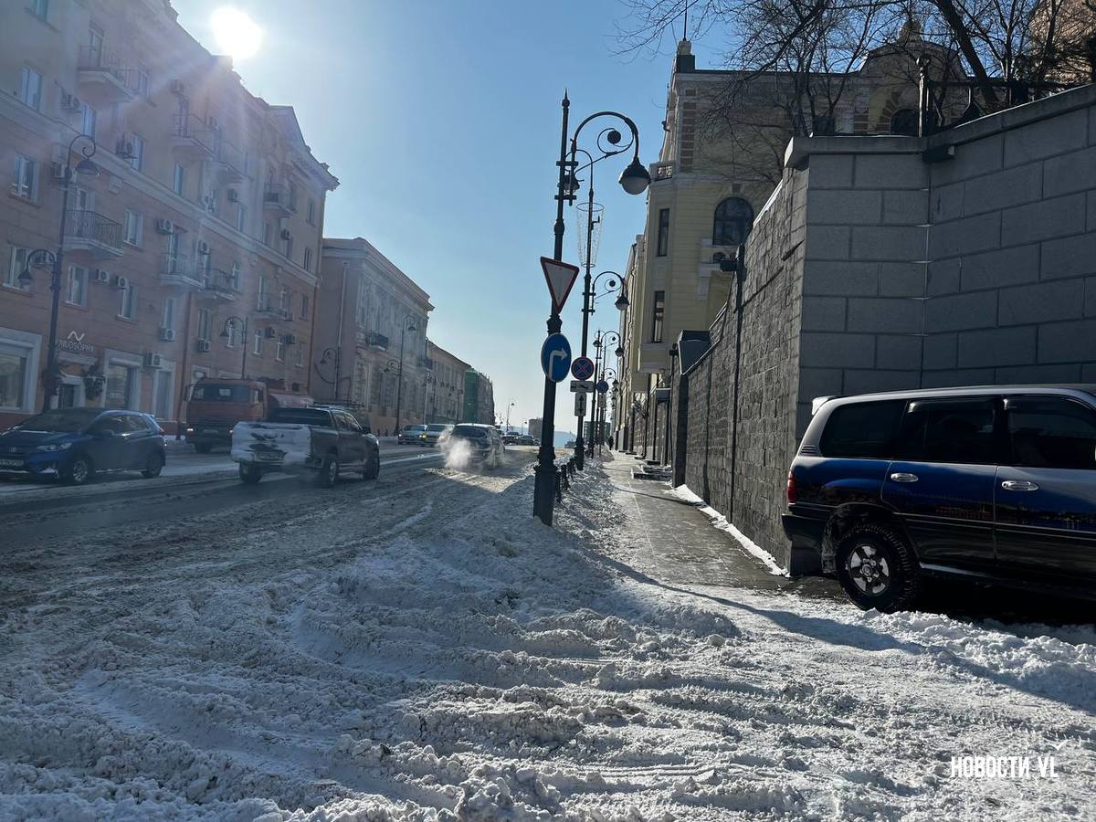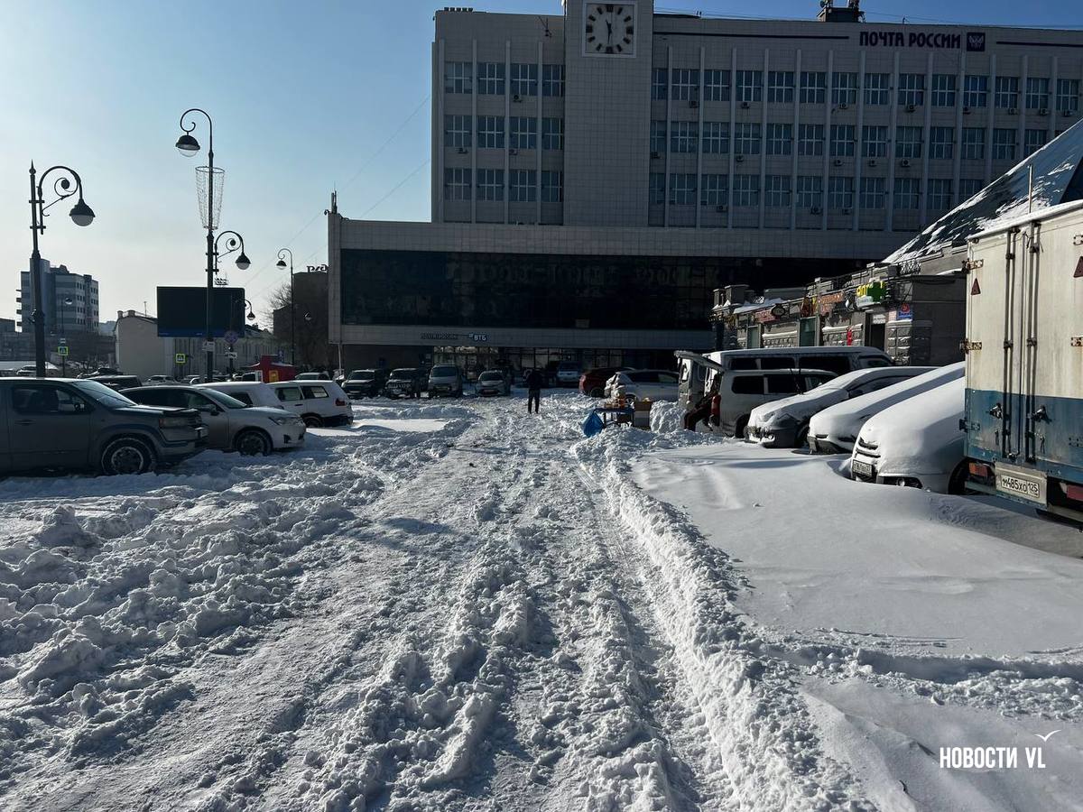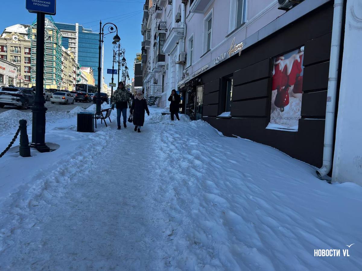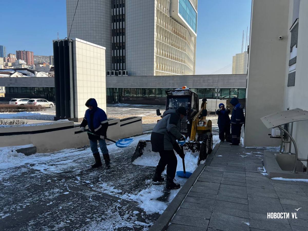 Снежный циклон, который принёс во Владивосток месячную норму осадков со штормовым ветром, отступил ночью 11 января. С утра уже было солнечно и ветер так не завывал. Битву с последствиями снегопада продолжила городская техника, а жители и владельцы заведений вышли им на подмогу.