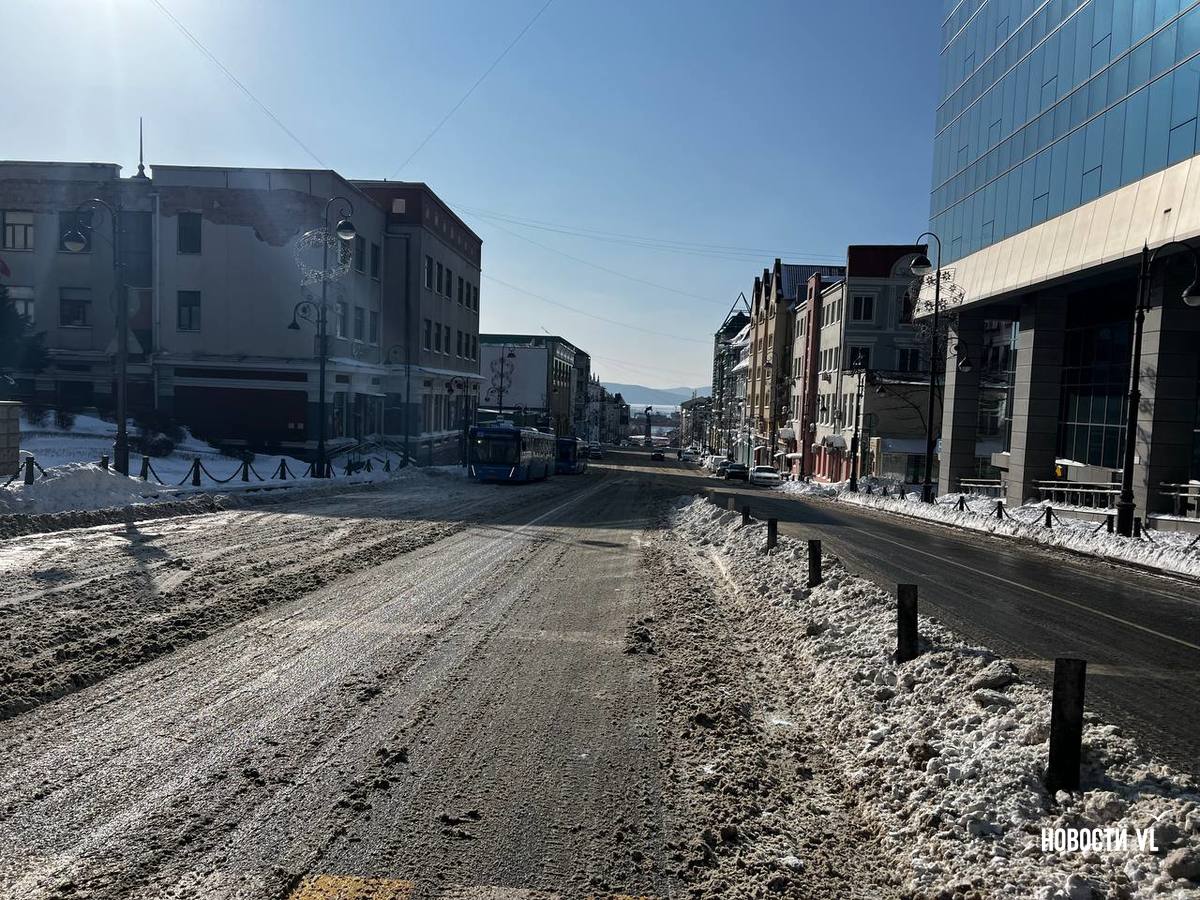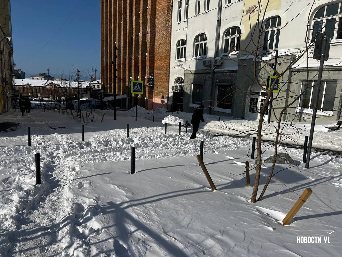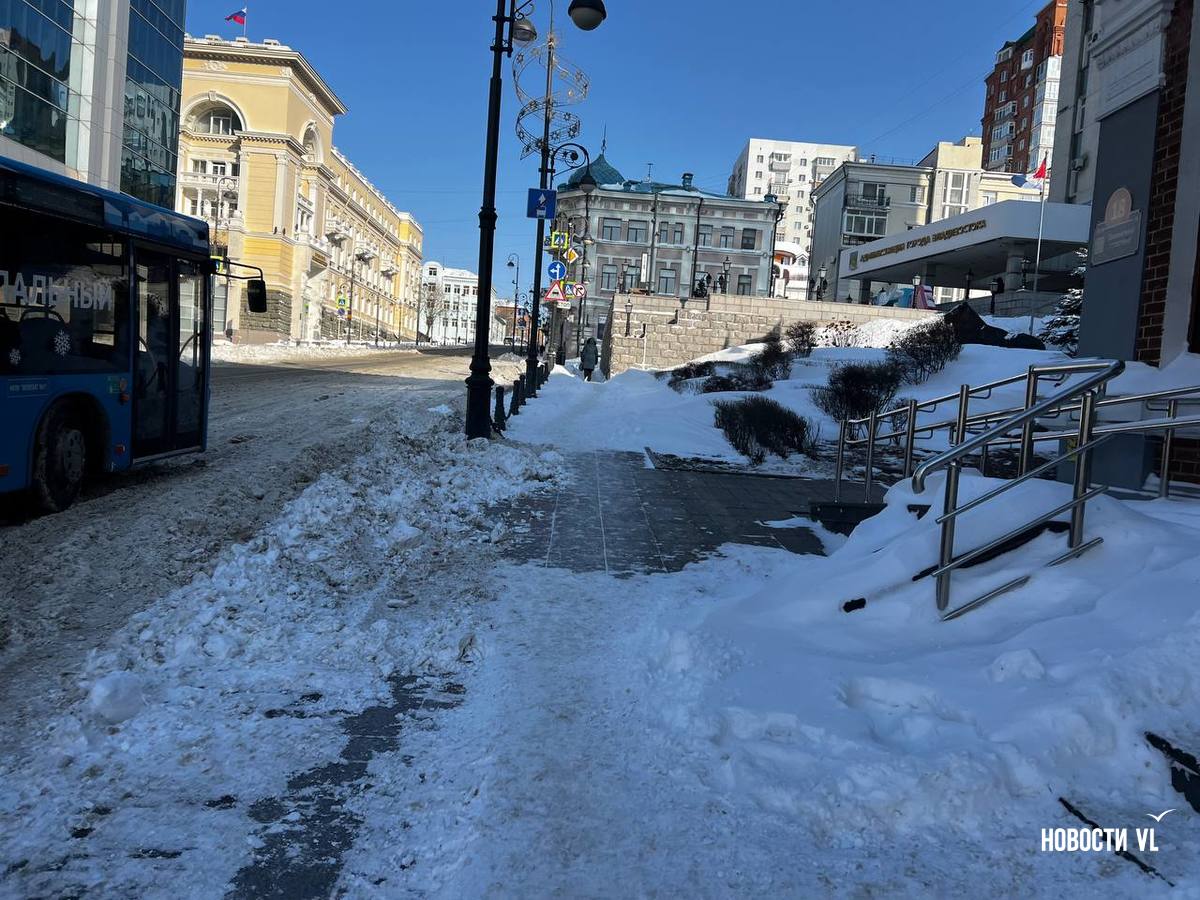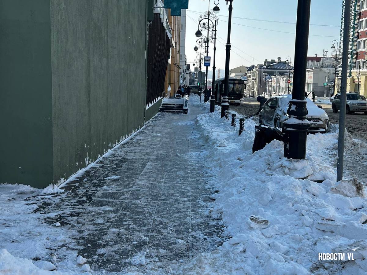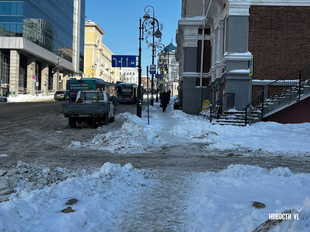 Снежный циклон, который принёс во Владивосток месячную норму осадков со штормовым ветром, отступил ночью 11 января. С утра уже было солнечно и ветер так не завывал. Битву с последствиями снегопада продолжила городская техника, а жители и владельцы заведений вышли им на подмогу.
