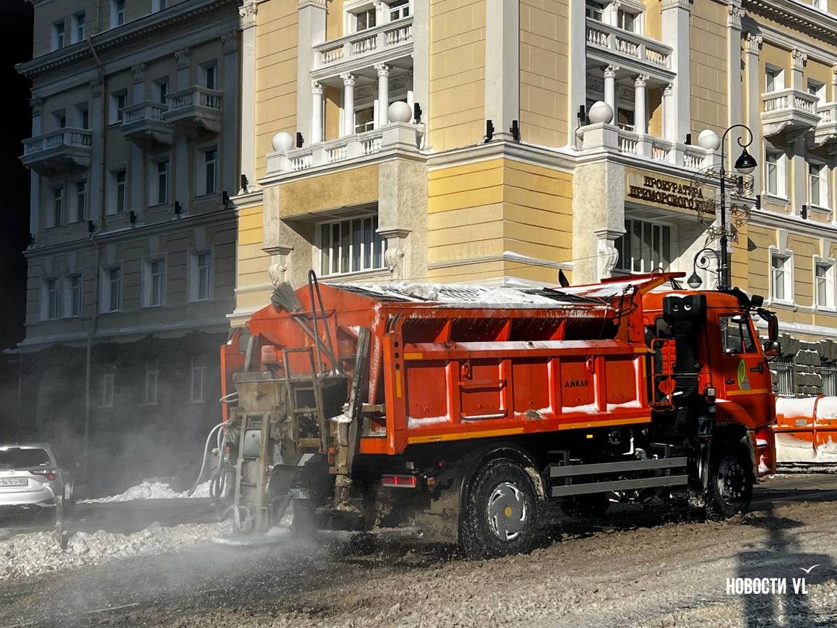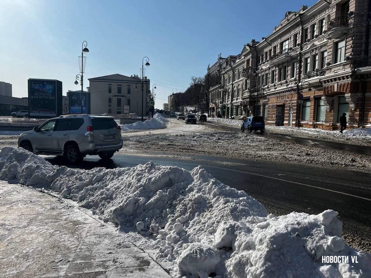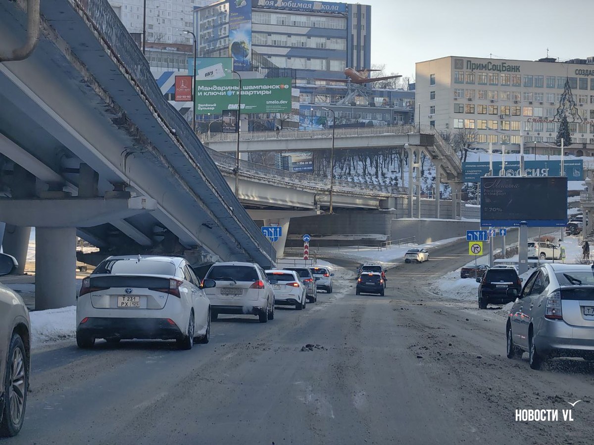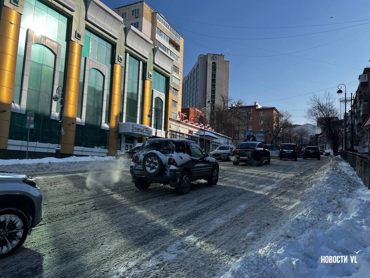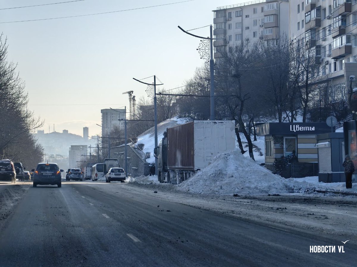 Администрация Владивостока отчиталась о 164 единицах снегоуборочной техники, которая сейчас трудится на дорогах города. Очищают основные дороги и магистрали – по Океанскому проспекту, где вчера застревали почти все машины, уже вполне можно ехать. Хотя на перекрёстке с Фонтанной вдоль делиниаторов насыпано столько снега, что они теперь скорее выполняют функцию отбойника. Здесь не работают светофоры.