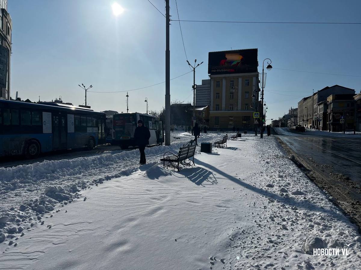 В снегу и большинство остановок общественного транспорта, даже в центре – «Семёновская», «Серая лошадь», привокзальная площадь и «Изумруд». На площади возле памятника Ленину вопреки всему стоит пара машин с продуктами – такая у нас нынче ярмарка. Здесь, кстати, трудятся дворники, расчищая лестницы. В мэрии сообщают, что для расчистки пешеходных зон привлечено более 200 рабочих. Они убирают тротуары, лестницы и переходы в разных районах города. Управляющие компании также приступили к уборке. Отметим, что в центре города со зданий уже свисают впечатляющие сосульки, так что лучше периодически посматривать наверх.