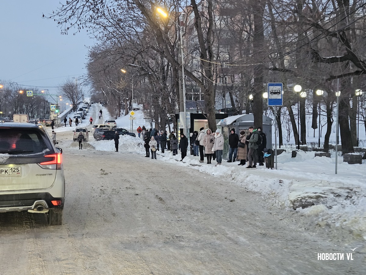 Последствия субботнего снегопада к утру первого рабочего дня 2026 года так и не успели убрать. В итоге утро понедельника Владивосток встречает в 10-балльных пробках. Горожане жалуются на скользкие дороги, такси по городу увеличили стоимость в полтора-два раза, а толпы людей не могут дождаться автобусов на остановках. При этом в школах и детских садах сегодня объявлено свободное посещение, а в электричках увеличили количество вагонов.