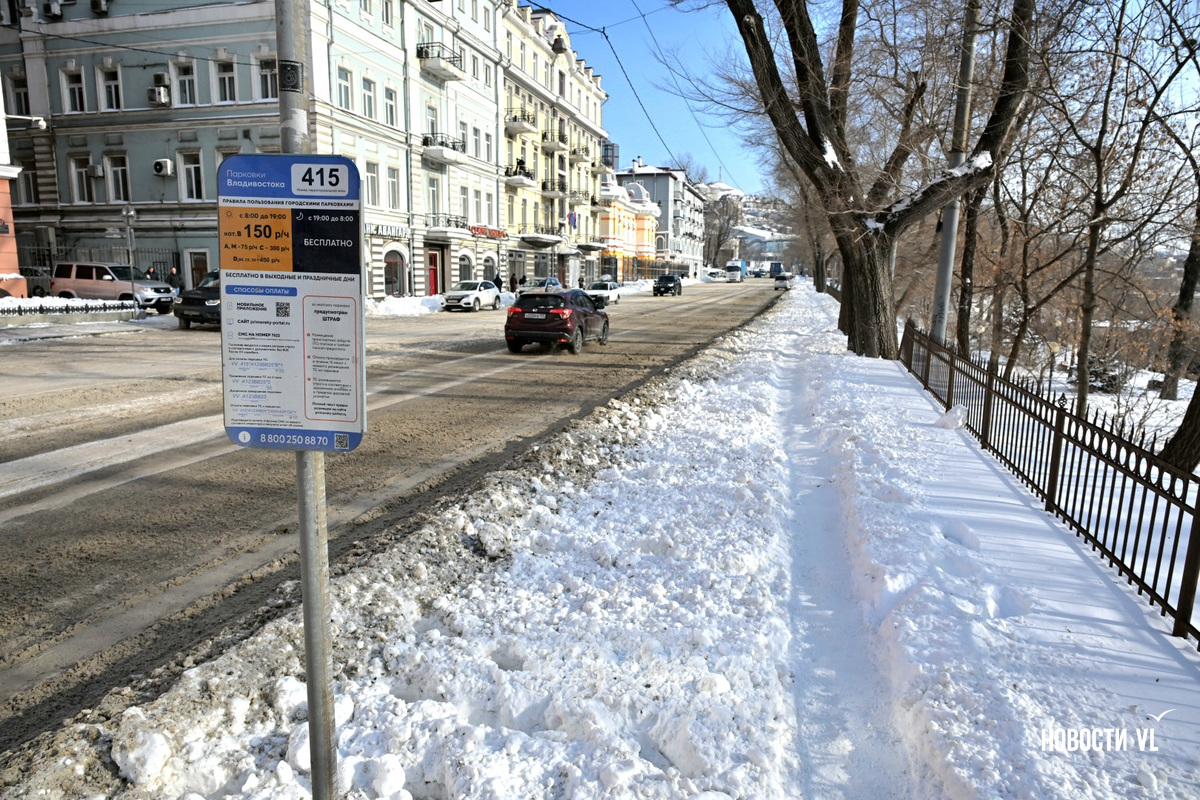 С понедельника, 12 января, парковка вдоль основных улиц Владивостока после большого перерыва должна была снова стать платной. Однако этого не произошло из-за последствий снегопада. Поскольку большинство обочин до сих пор в снегу, паркрайты на маршрут не вышли. То есть оплатить парковку можно, но если не сделали этого, штраф не придёт. Впрочем, в большинстве случаев, чтобы припарковаться, придётся «отработать» себе место лопатой.