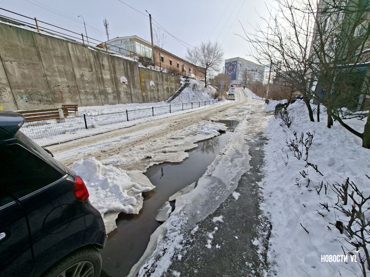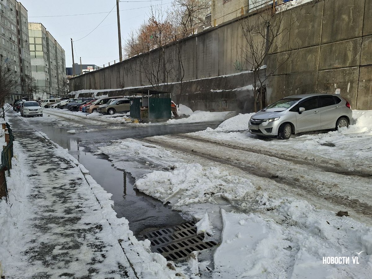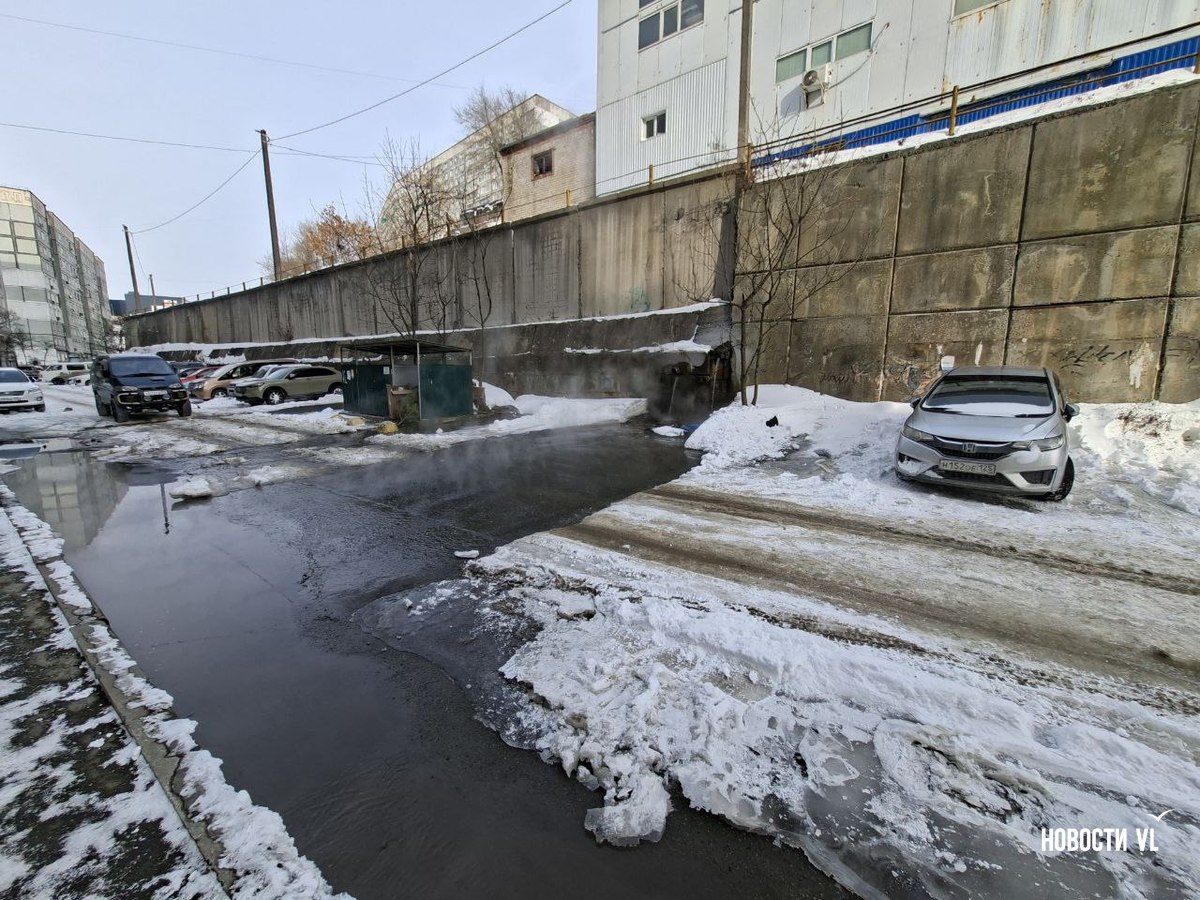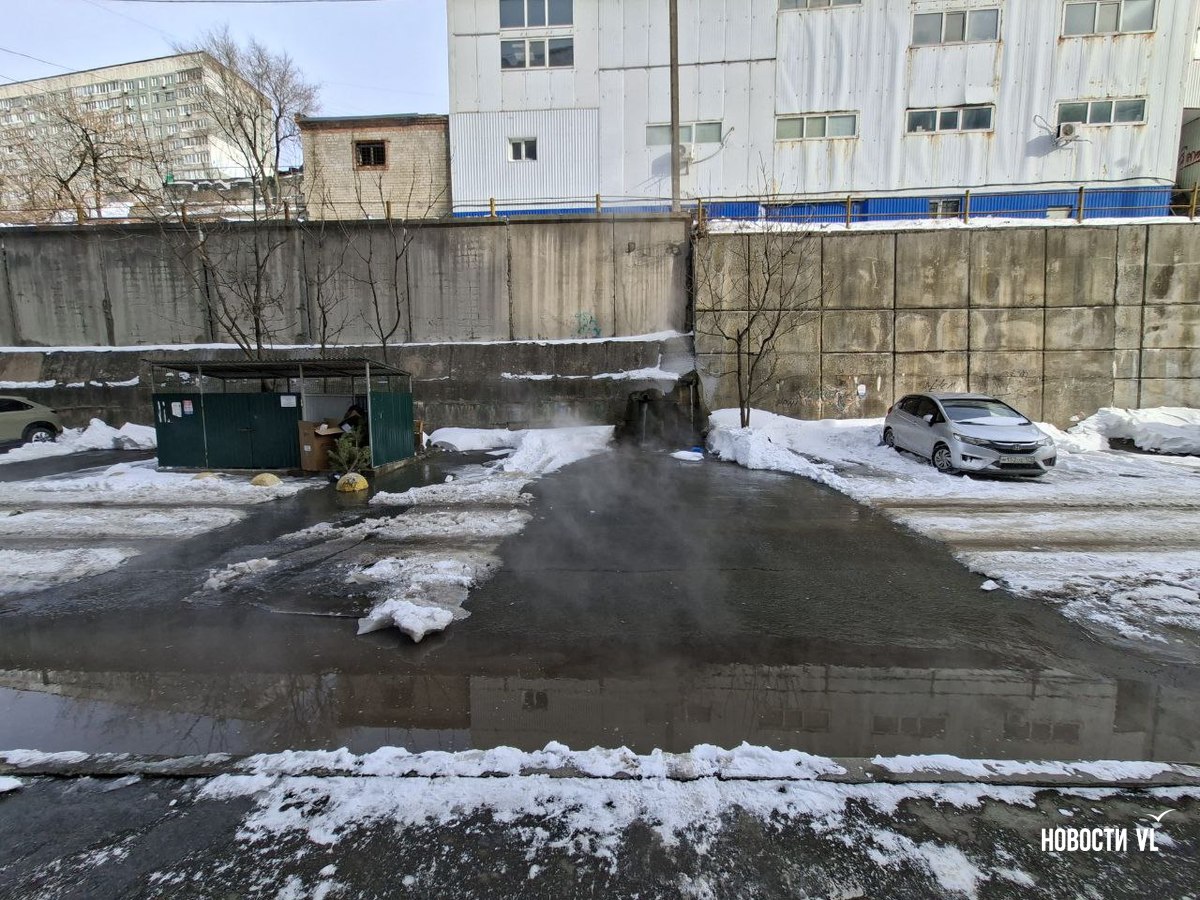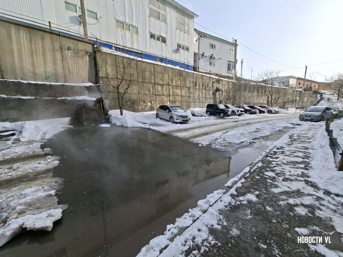 Из подпорной стены дома № 19 по улице Черняховского во Владивостоке с ночи льётся горячая вода. Течёт так, что кипяток заливает двор, поднимая клубы пара и делая его похожим на хаммам. Людям после предыдущего, почти суточного отключения вновь перекрыли тепло и горячую воду. Рядом, у дома № 13, уже у другой подпорной стены, тоже что-то неладно: у верхней её кромки образуются тёмно-жёлтые озёра.