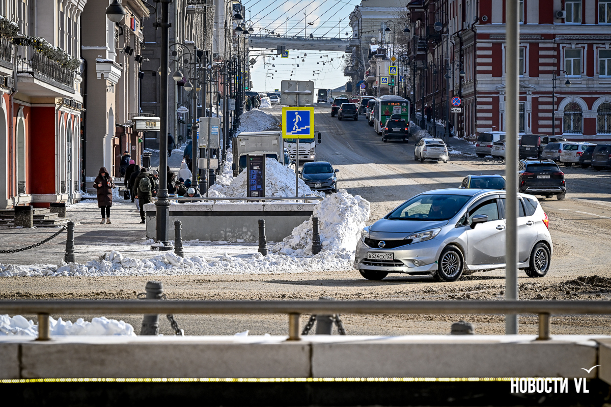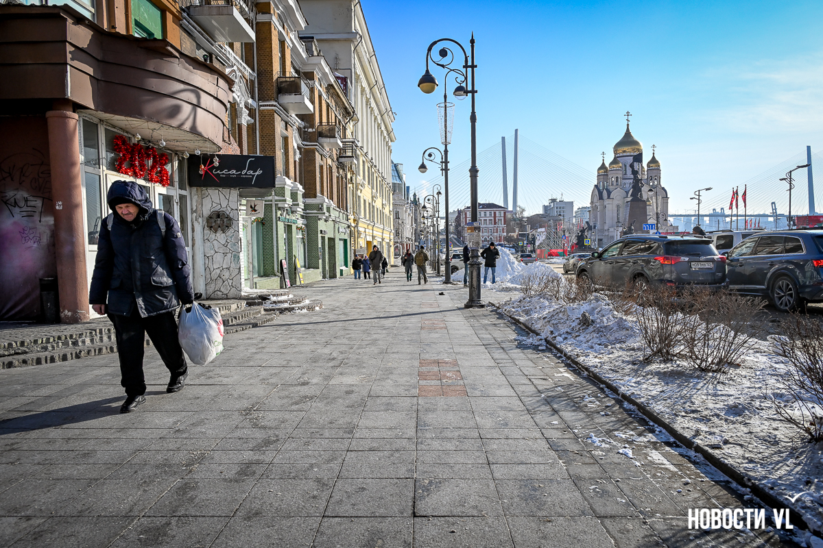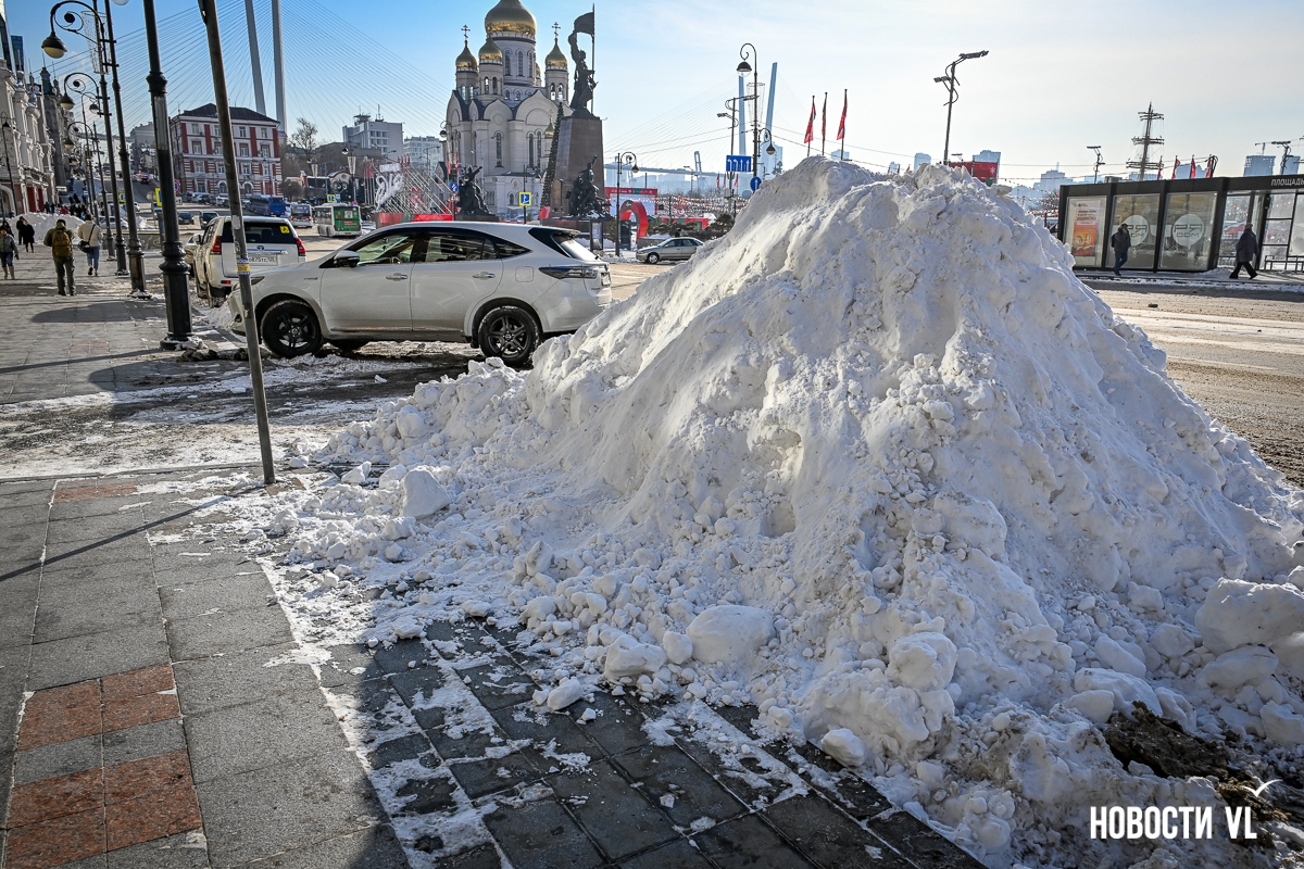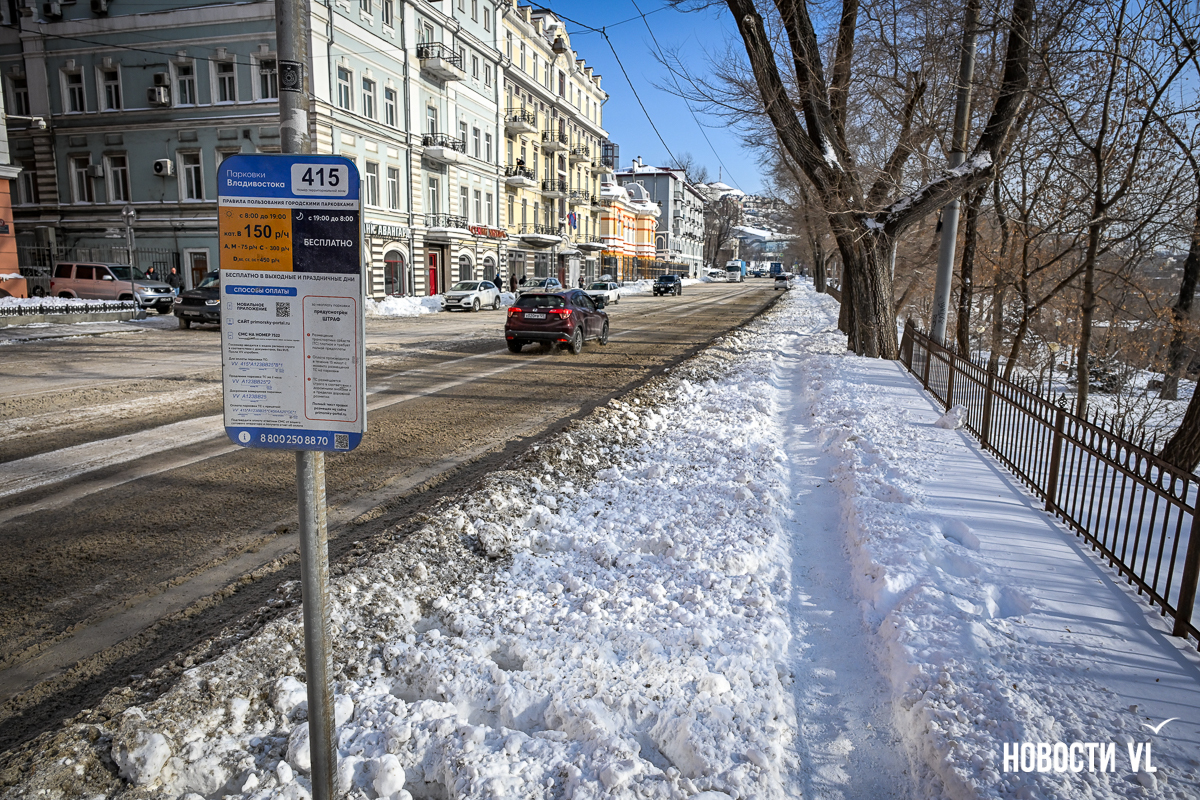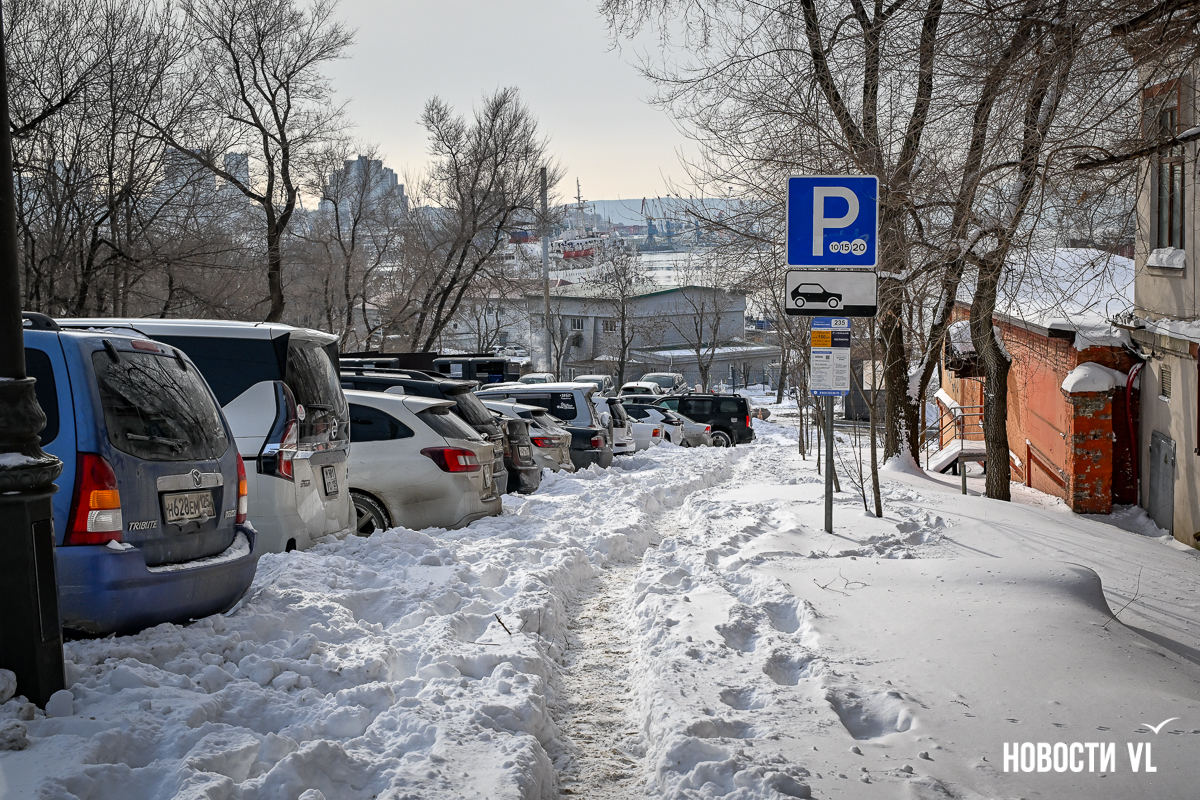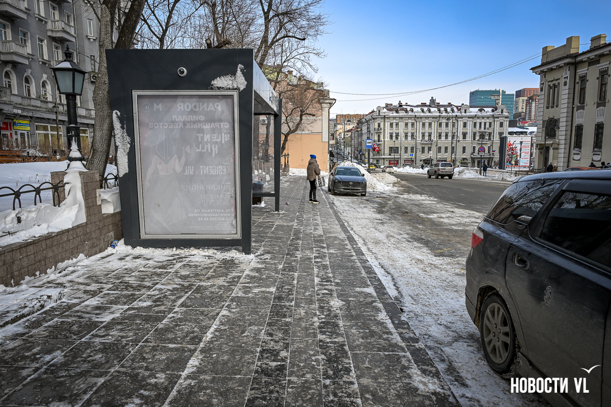 Спустя два дня после сильного снегопада улицы Владивостока всё ещё далеки от нормативного состояния – гололёд и снег есть даже на центральных дорогах. Ещё хуже ситуация на тротуарах – по многолетней традиции, их чистят по остаточному принципу. Есть отдельные оазисы чистого асфальта, но это счастливые исключения. На большей части центральных городских улиц – Алеутской, Пограничной, Адмирала Фокина и Светланской – пешком пройти с комфортом не получится, снег здесь до сих пор не убран. Люди протаптывают «козьи тропы», лавируя между сугробами на обочинах.