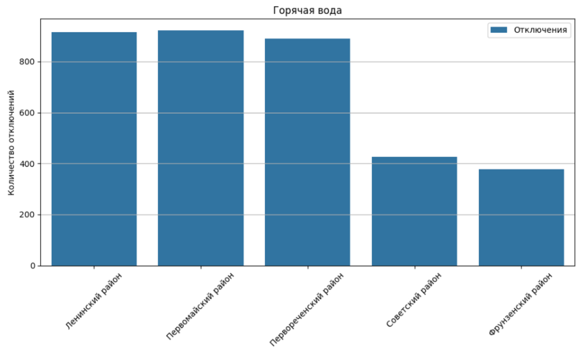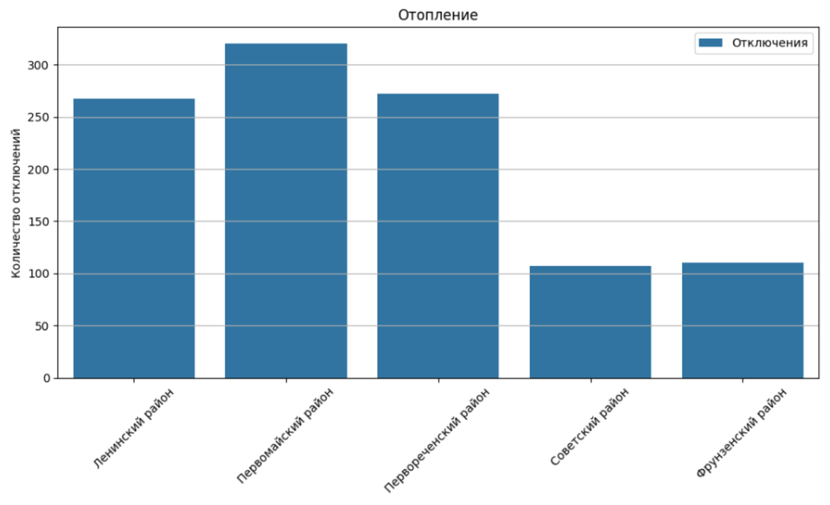 Первомайский район – в абсолютном топе по отключениям отопления, около 400 зафиксированных случаев. Ленинский и Первомайский немного не дотянули до 300, а во Фрунзенском и Советском было чуть больше 100 на каждый.