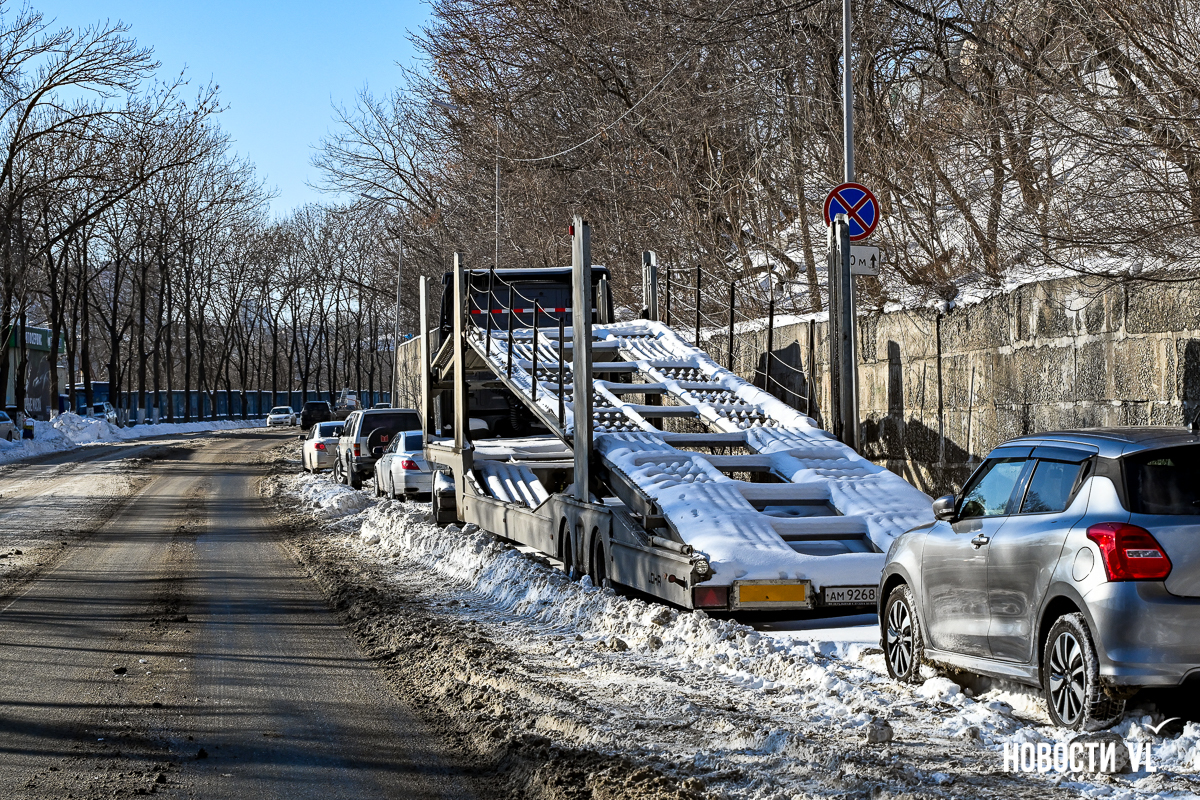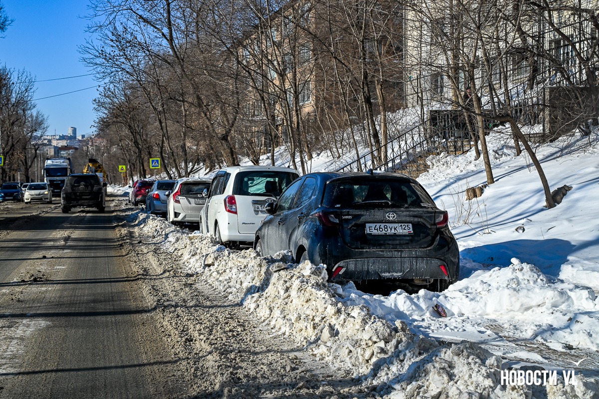 Администрация Владивостока ежедневно сообщает, где будет убирать снег ночью, и просит автомобилистов не парковать там машины. Однако списки появляются довольно поздно, когда многие жители уже приезжают с работы домой и успевают припарковать машины.