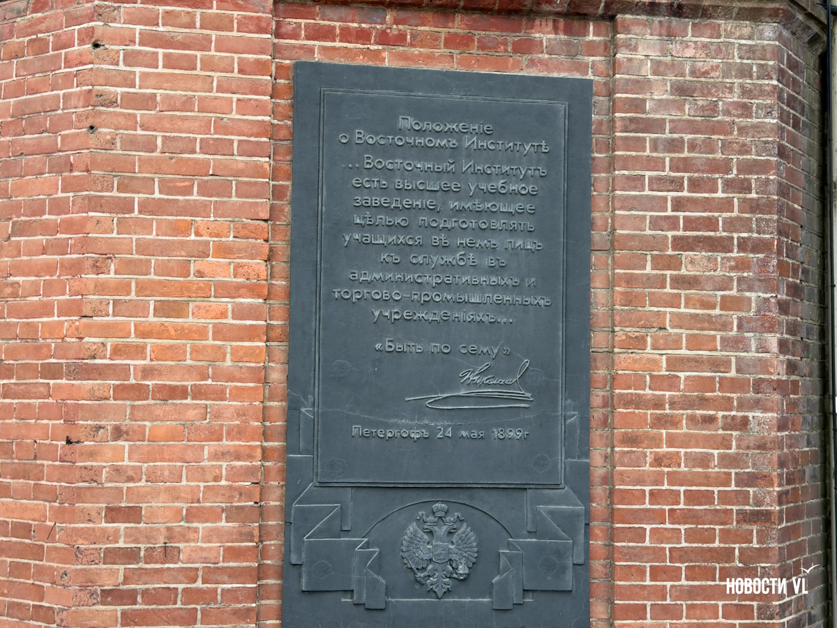 Пока строили гимназию, решили, что Дальнему Востоку нужен институт, так и появилось первое высшее учебное заведение в отдалённых от Петергофа краях. Из писем первого ректора Алексея Матвеевича Позднеева (1899–1903) известно, что строительство сопровождали трудности: «Когда я приехал во Владивосток, здание уже более года стояло заколоченным и без малейшего производства работ, так как целые полтора года никаких сумм на постройку не отпускалось. Правда, их обещал дать заимообразно Даттан, но, очевидно, обещаниями и ограничился».