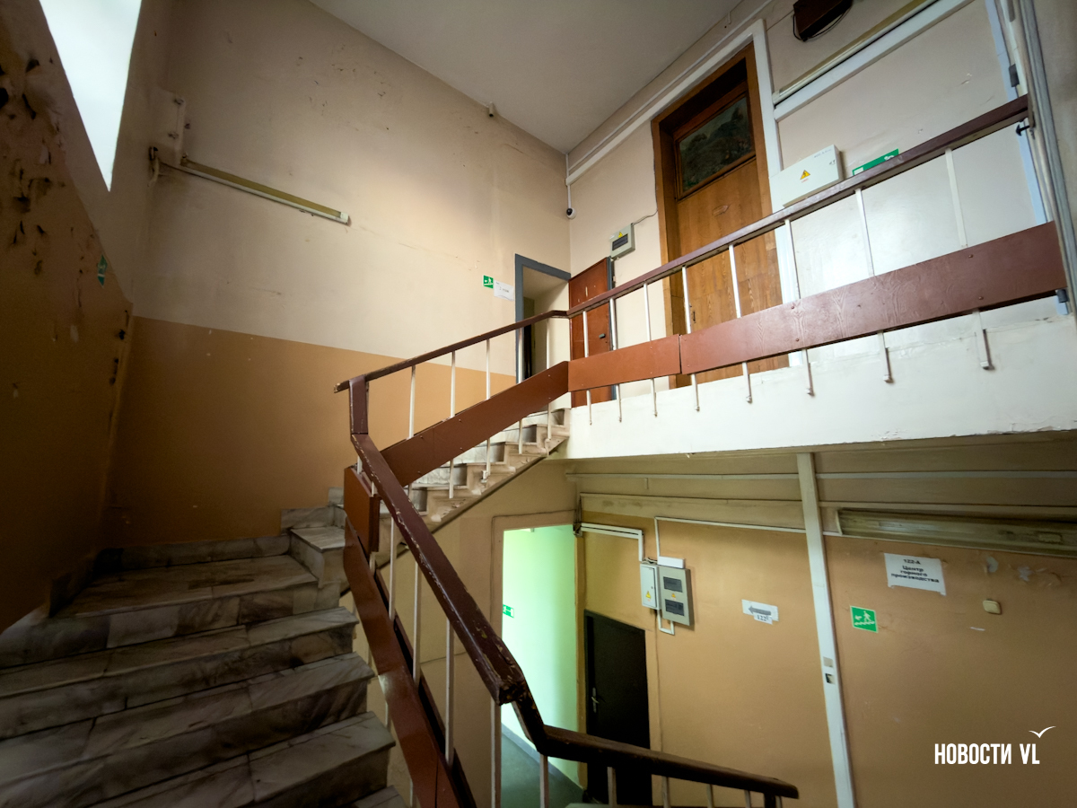Сейчас в здании Восточного института не людно. Кабинеты практически все закрыты, в некоторых находятся сотрудники ДВФУ, но без студентов. Корреспондент Новостей VL побродил по коридорам, но желающих «грызть гранит науки» там не нашёл. Деятельность университета сконцентрирована на Русском острове.