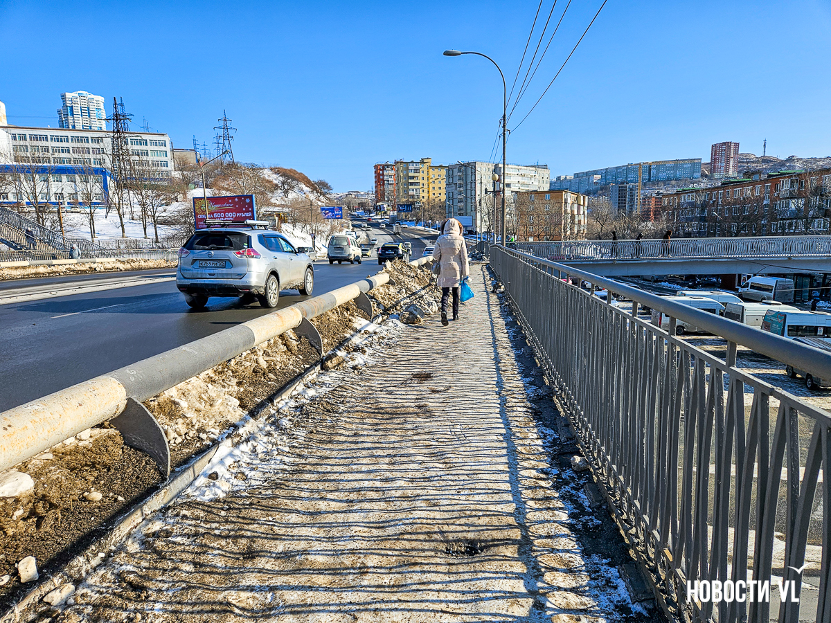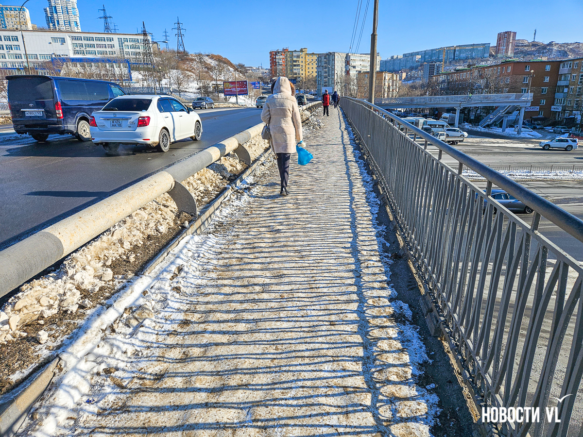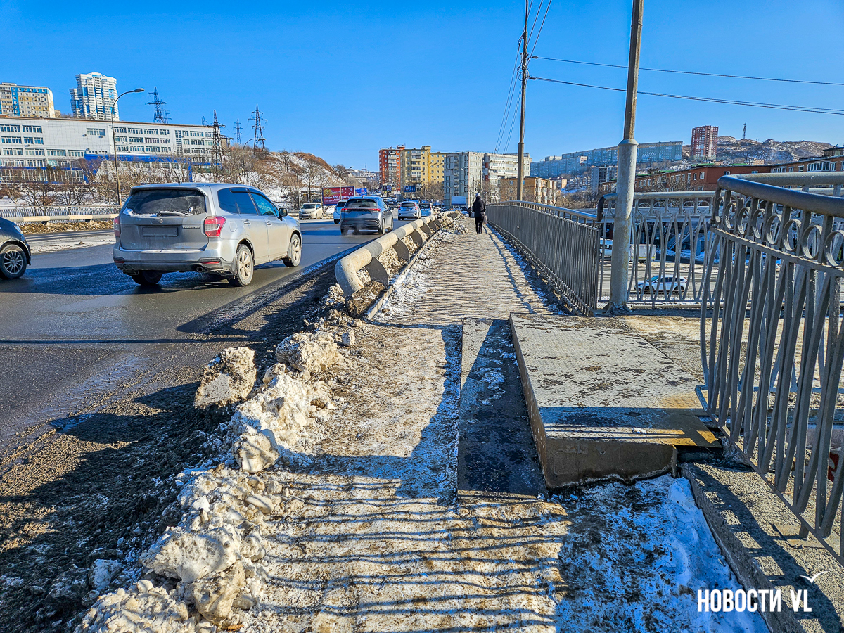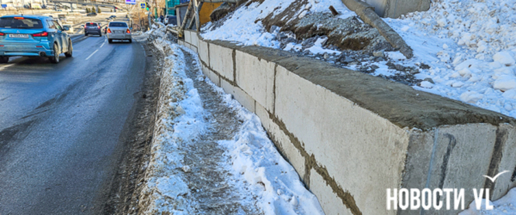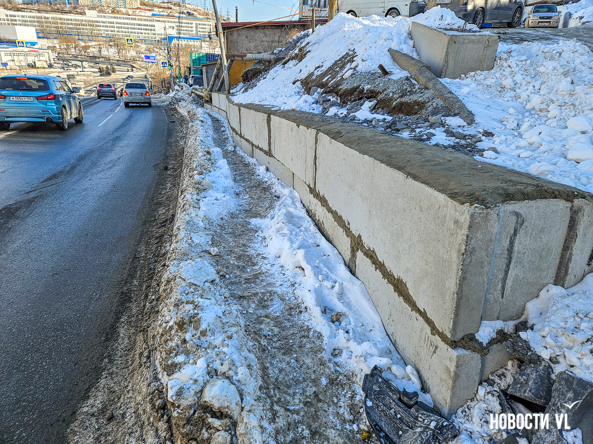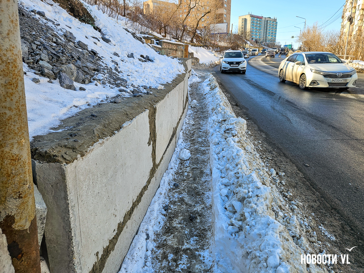 Корреспондент Новостей VL не смог визуально оценить, насколько качественно или нет построена пешеходная зона в районе Котельникова, 29 и отремонтирован тротуар на Баляевской развязке по очень простой причине – здесь до сих пор не почистили снег. Отметим, что глава Владивостока в понедельник рапортовал, что на уборку тротуаров требуется пять дней. Срок заканчивается сегодня, 16 января. Правда, вряд ли до этого места успеют добраться. Придётся проверить качество ремонта весной. Однако уже сейчас можно увидеть, что как минимум новая подпорная стена из блоков в районе автоцентра установлена.