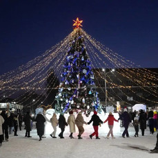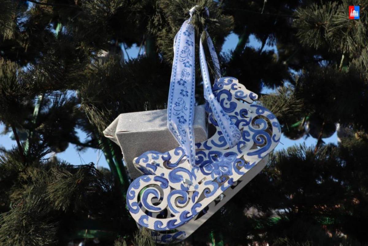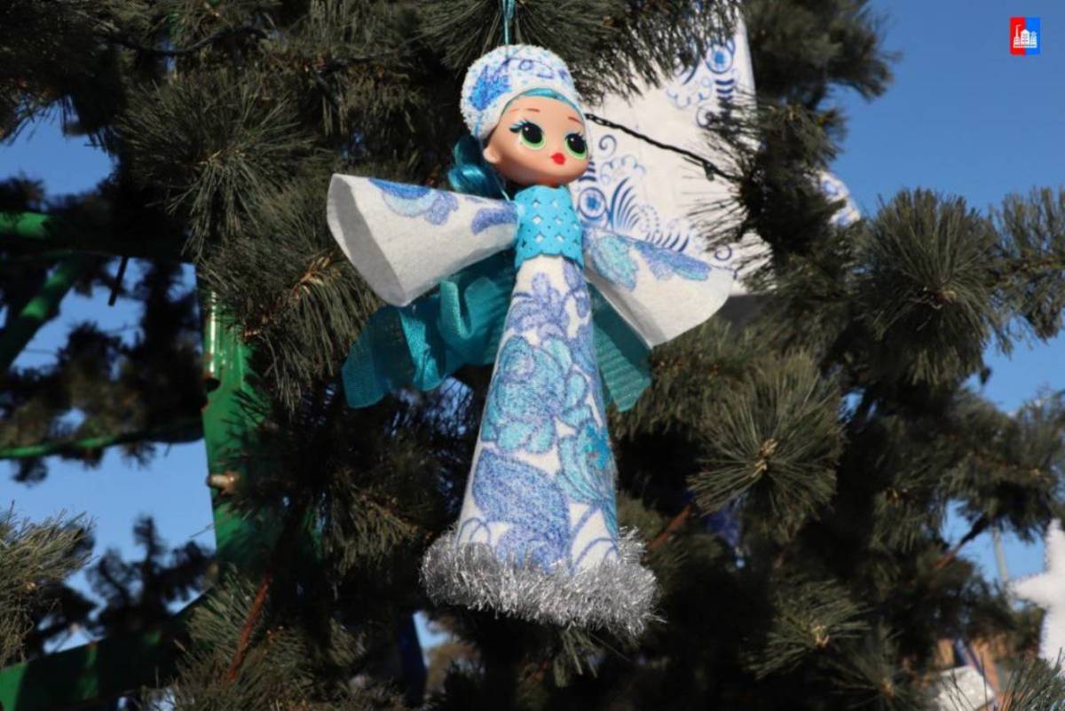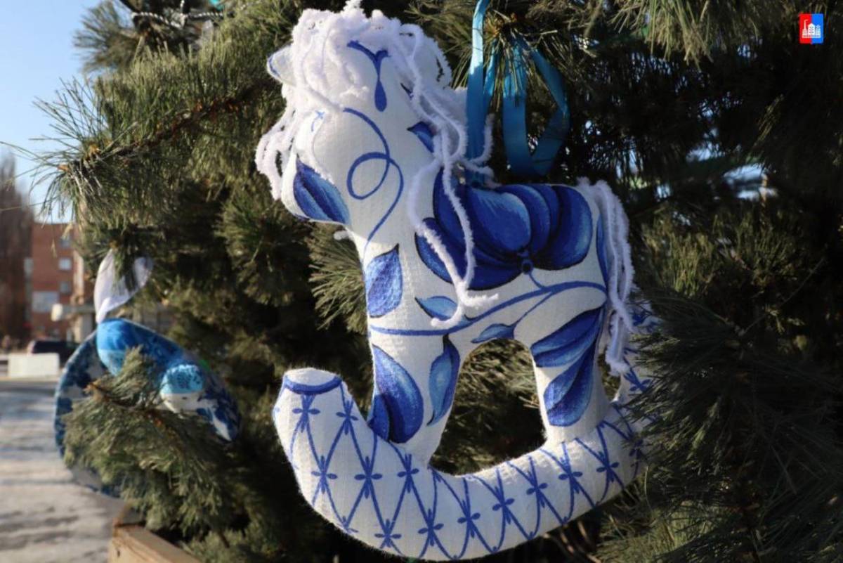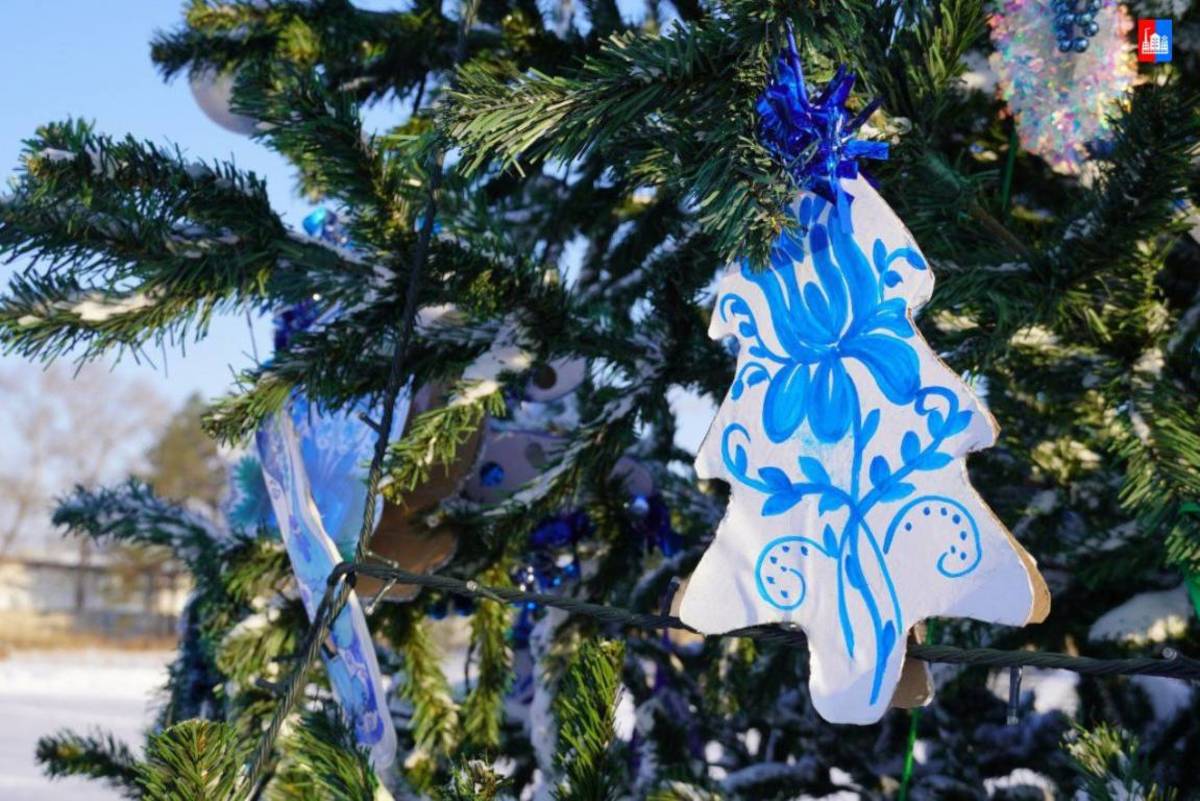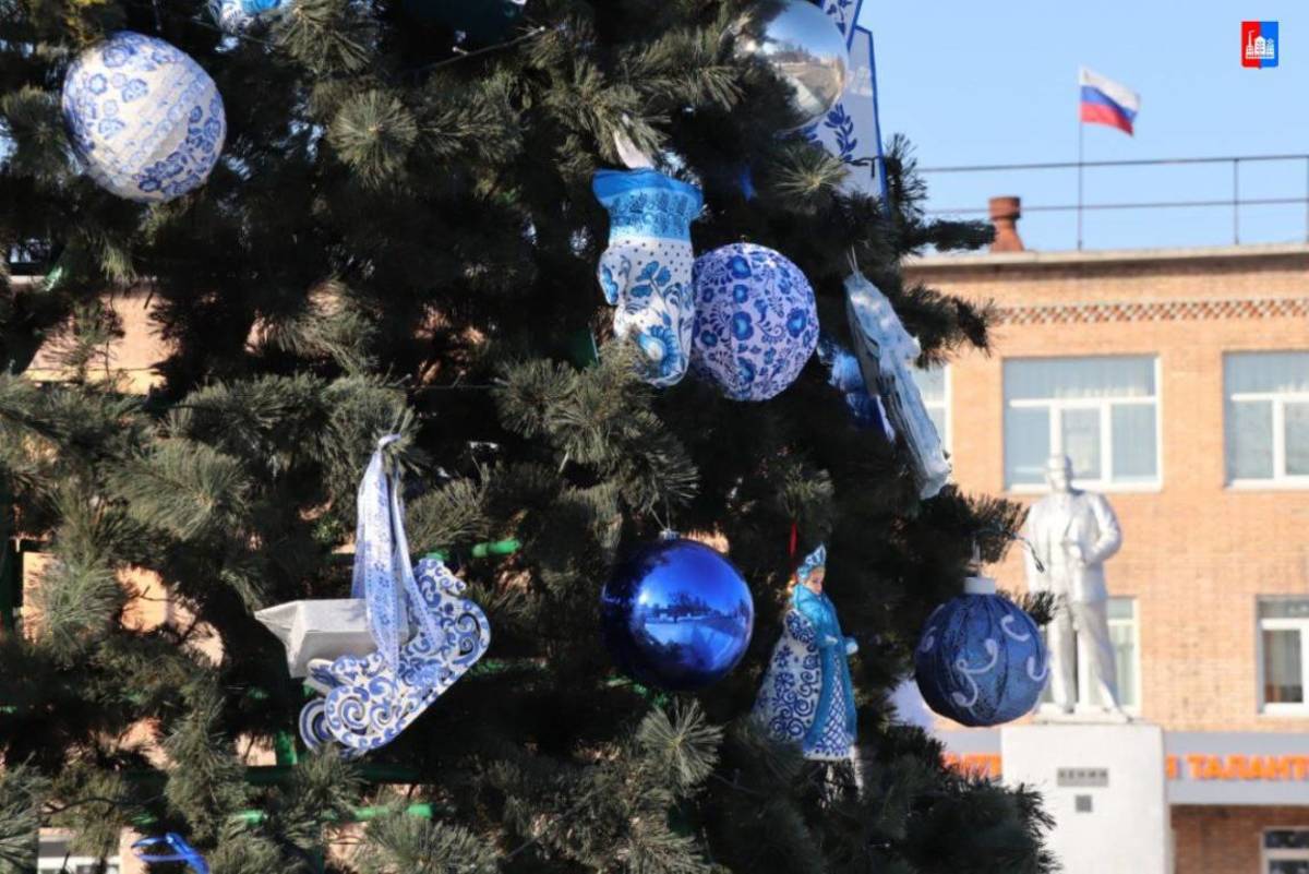 Ледяной городок в Спасске-Дальнем в этом году оформили в русском стиле, а ёлку украсили сине-белыми игрушками «под Гжель». Сделать украшение мог любой. Власти города объявили конкурс на лучшую игрушку, и на церемонии открытия городка чествовали и его создателей, и самых удачливых спассчан.