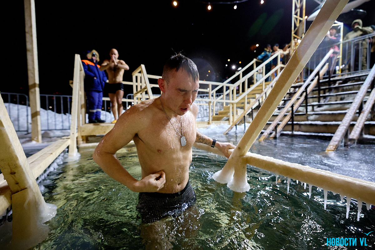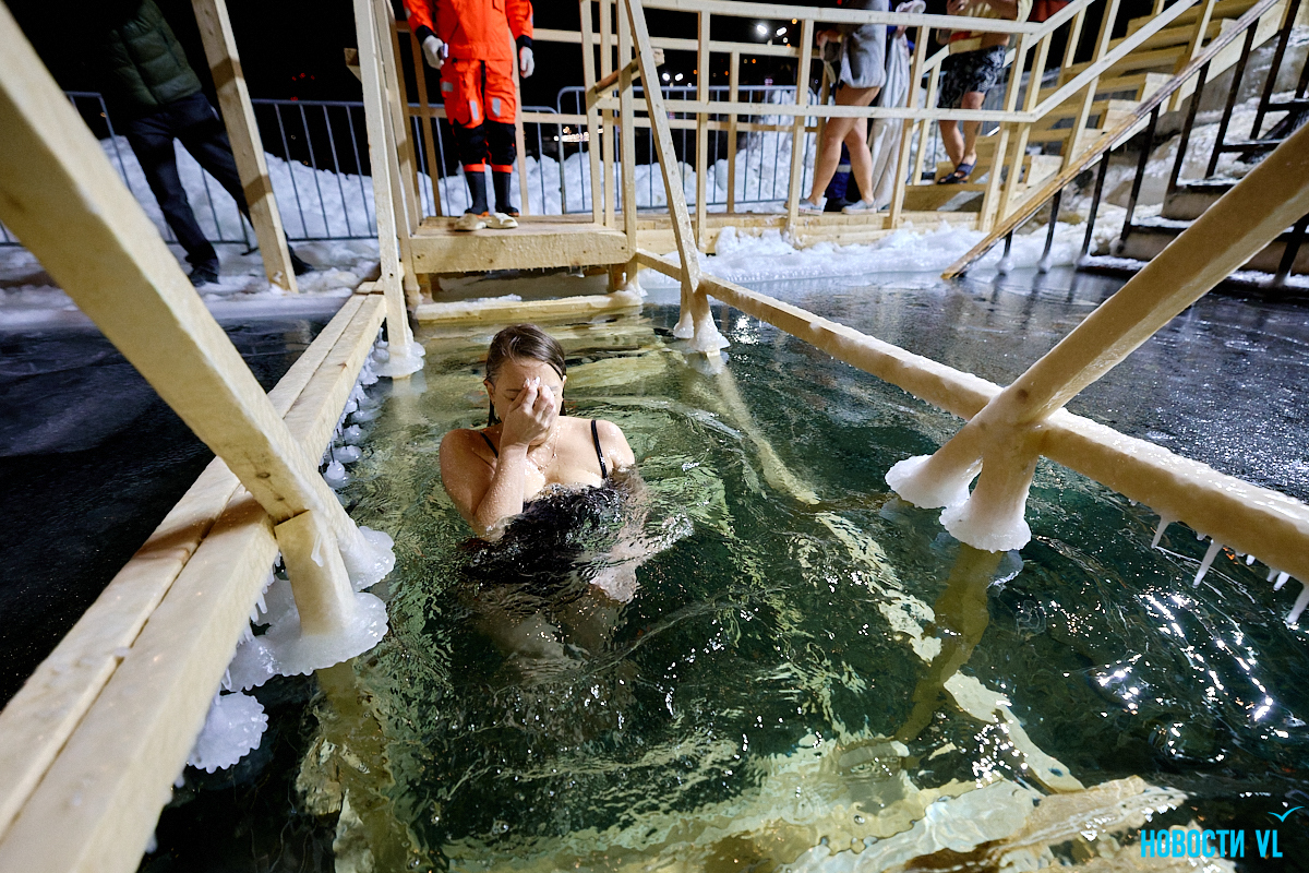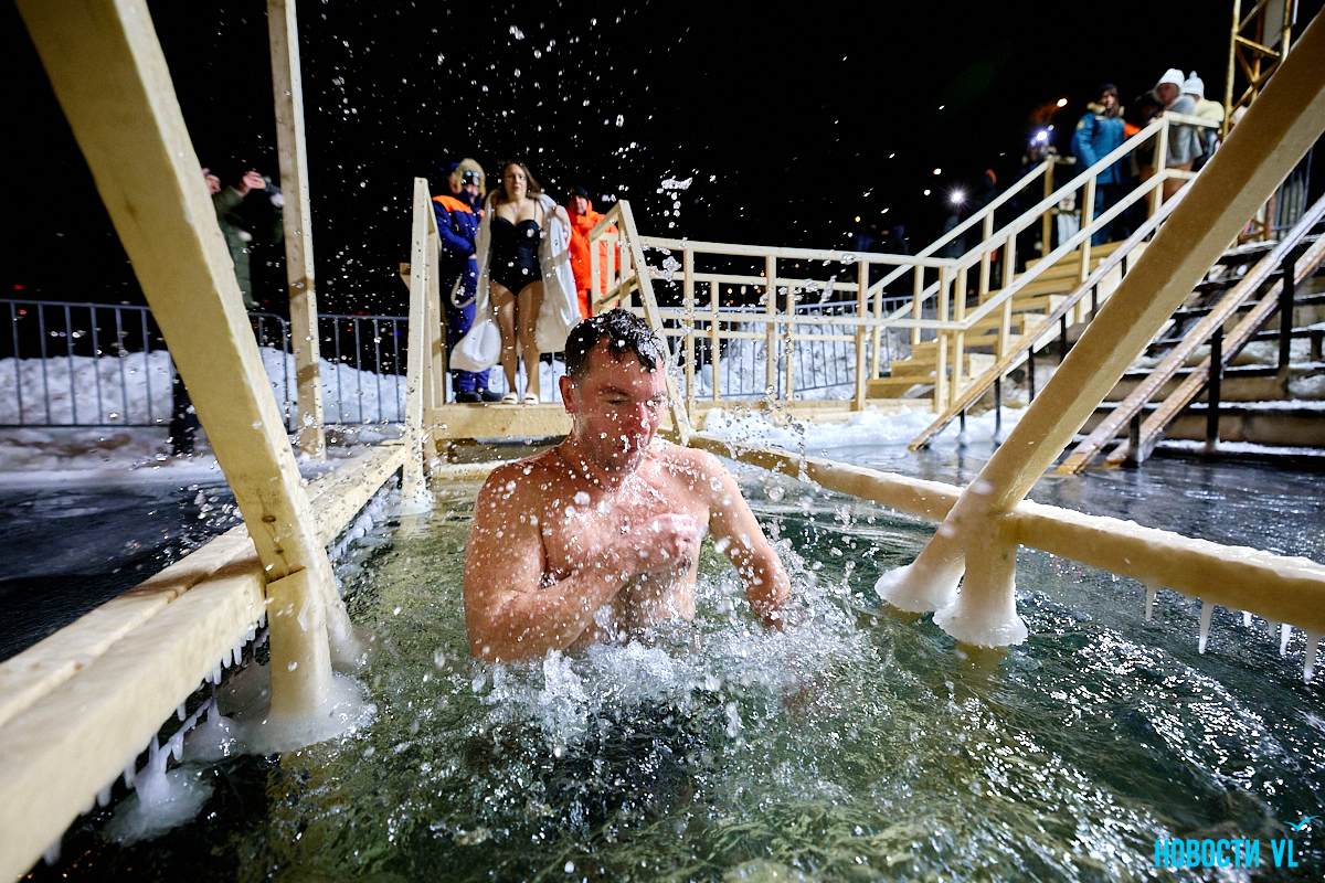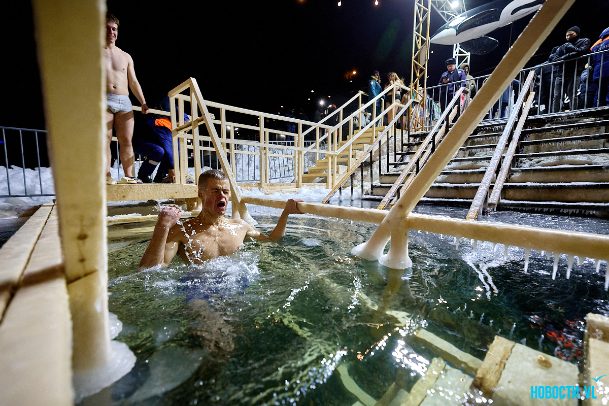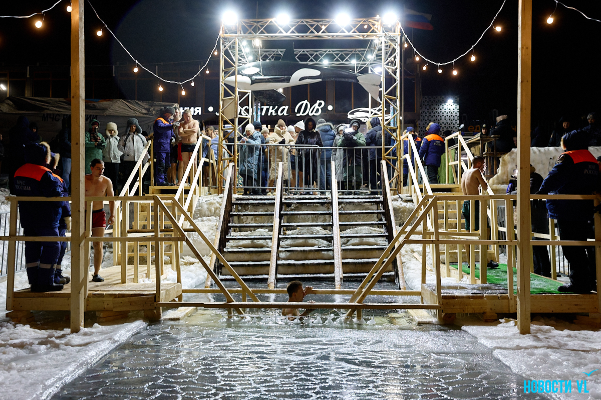 В ночь с воскресенья на понедельник на набережной возле центра зимнего плавания «Косатка ДВ» по традиции прошли Крещенские купания. Людей в этом году было немного, основная масса прошла до 23:00, а к полуночи уже никого не было. Люди приходили с разными целями: побороть себя, очиститься от грехов. Вечер прошёл спокойно и без инцидентов. Дул ветер, было холодно, -14 °C, а в воде чуть теплее, от +1 до +3 °C, и люди грелись чаем.