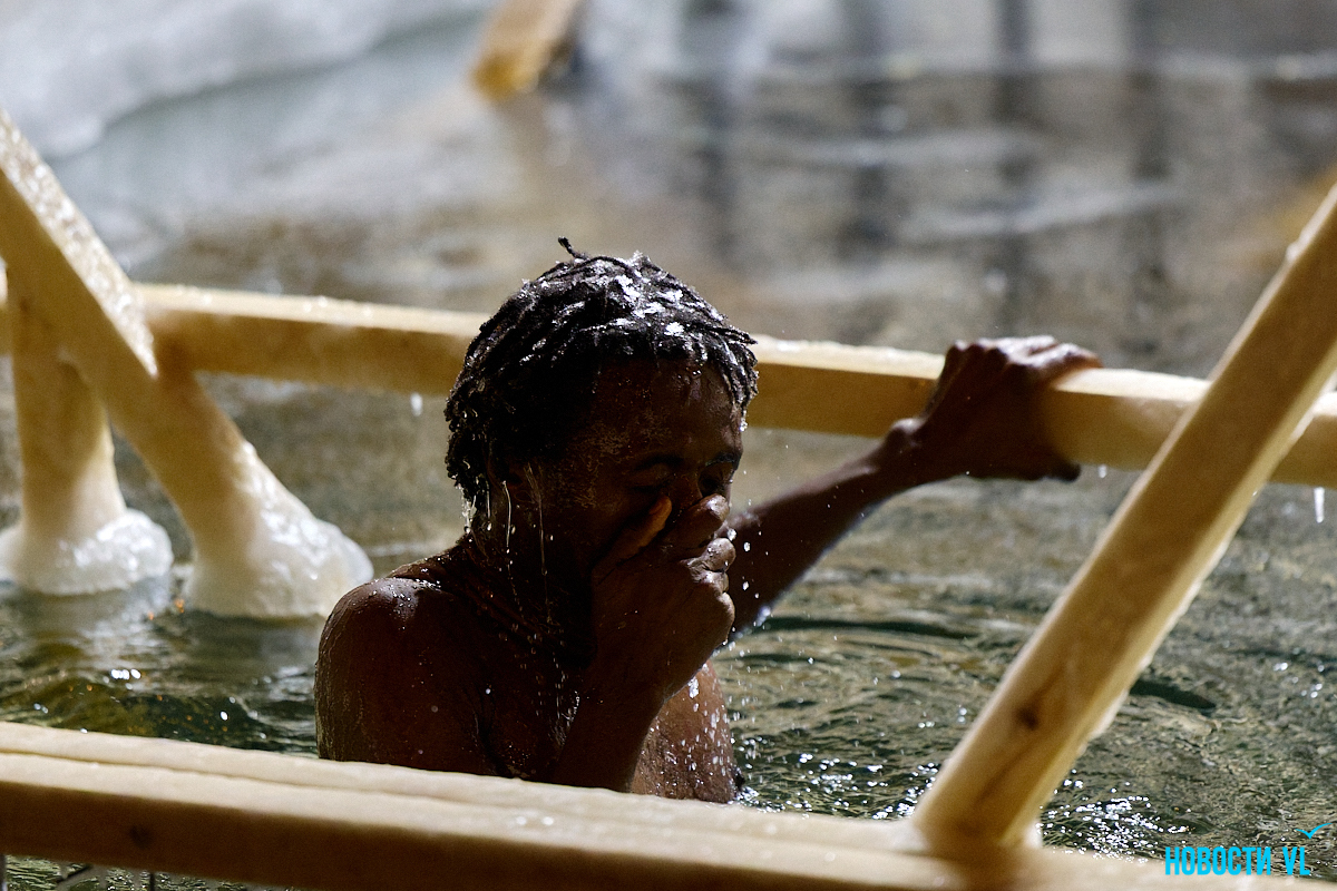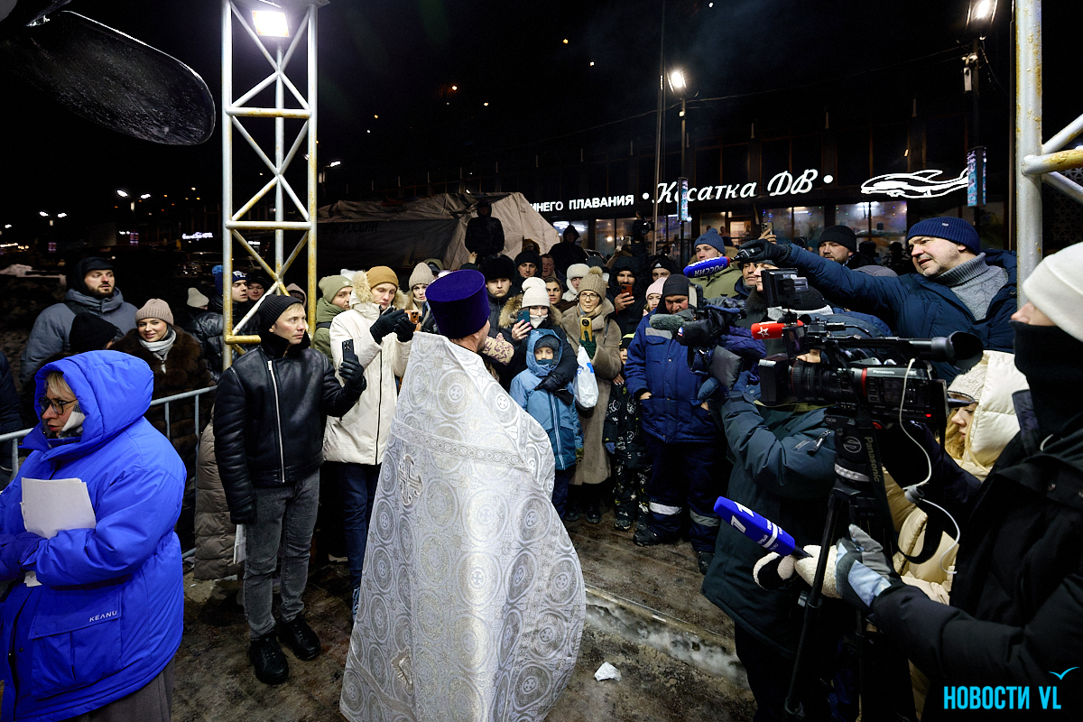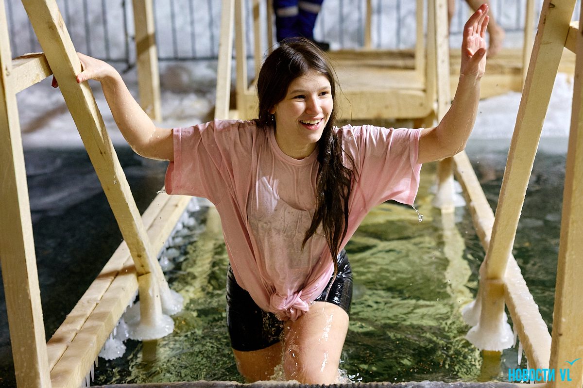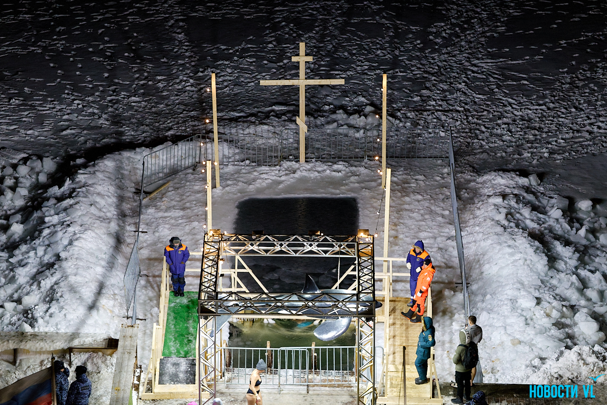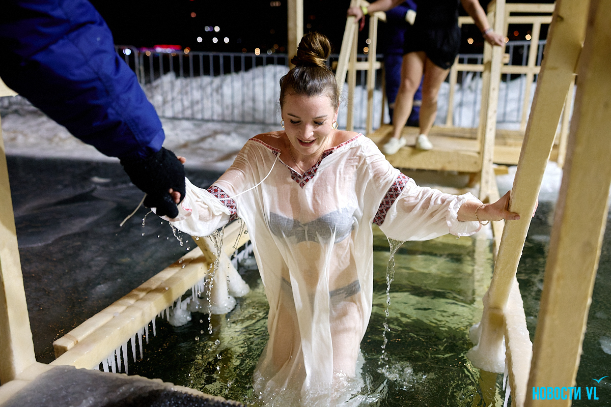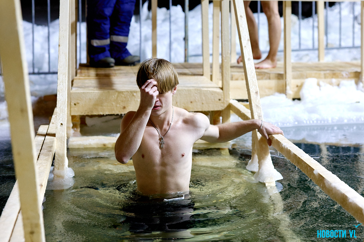 В ночь с воскресенья на понедельник на набережной возле центра зимнего плавания «Косатка ДВ» по традиции прошли Крещенские купания. Людей в этом году было немного, основная масса прошла до 23:00, а к полуночи уже никого не было. Люди приходили с разными целями: побороть себя, очиститься от грехов. Вечер прошёл спокойно и без инцидентов. Дул ветер, было холодно, -14 °C, а в воде чуть теплее, от +1 до +3 °C, и люди грелись чаем.