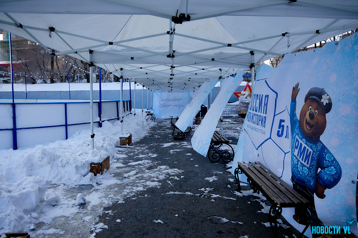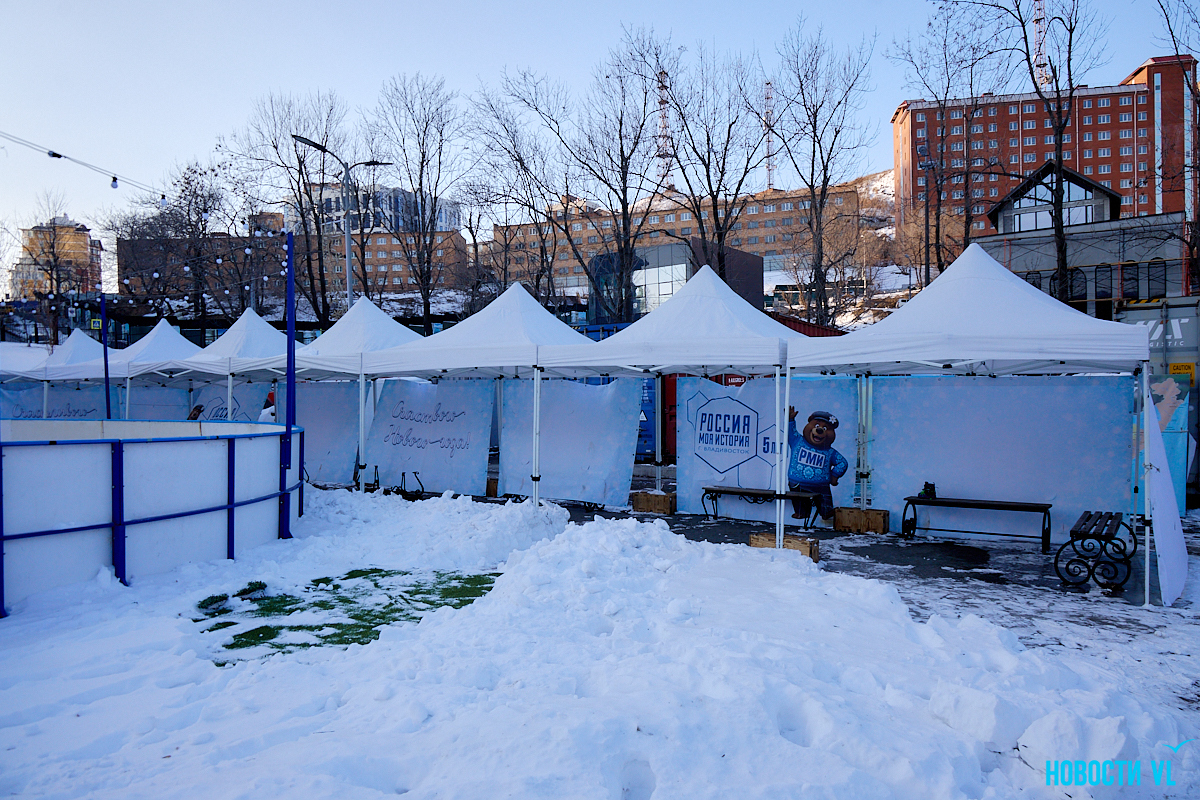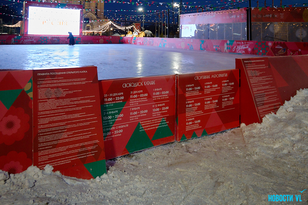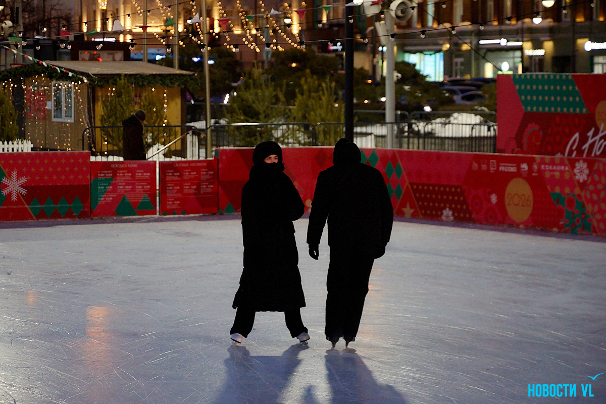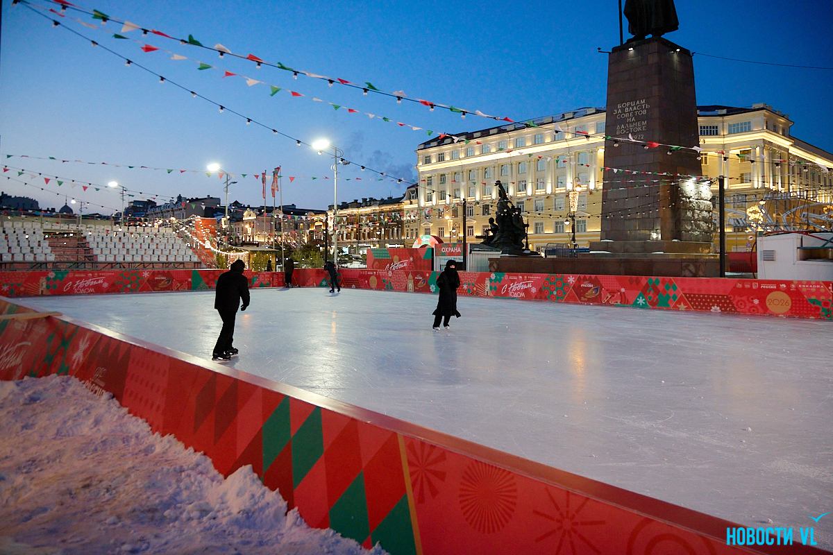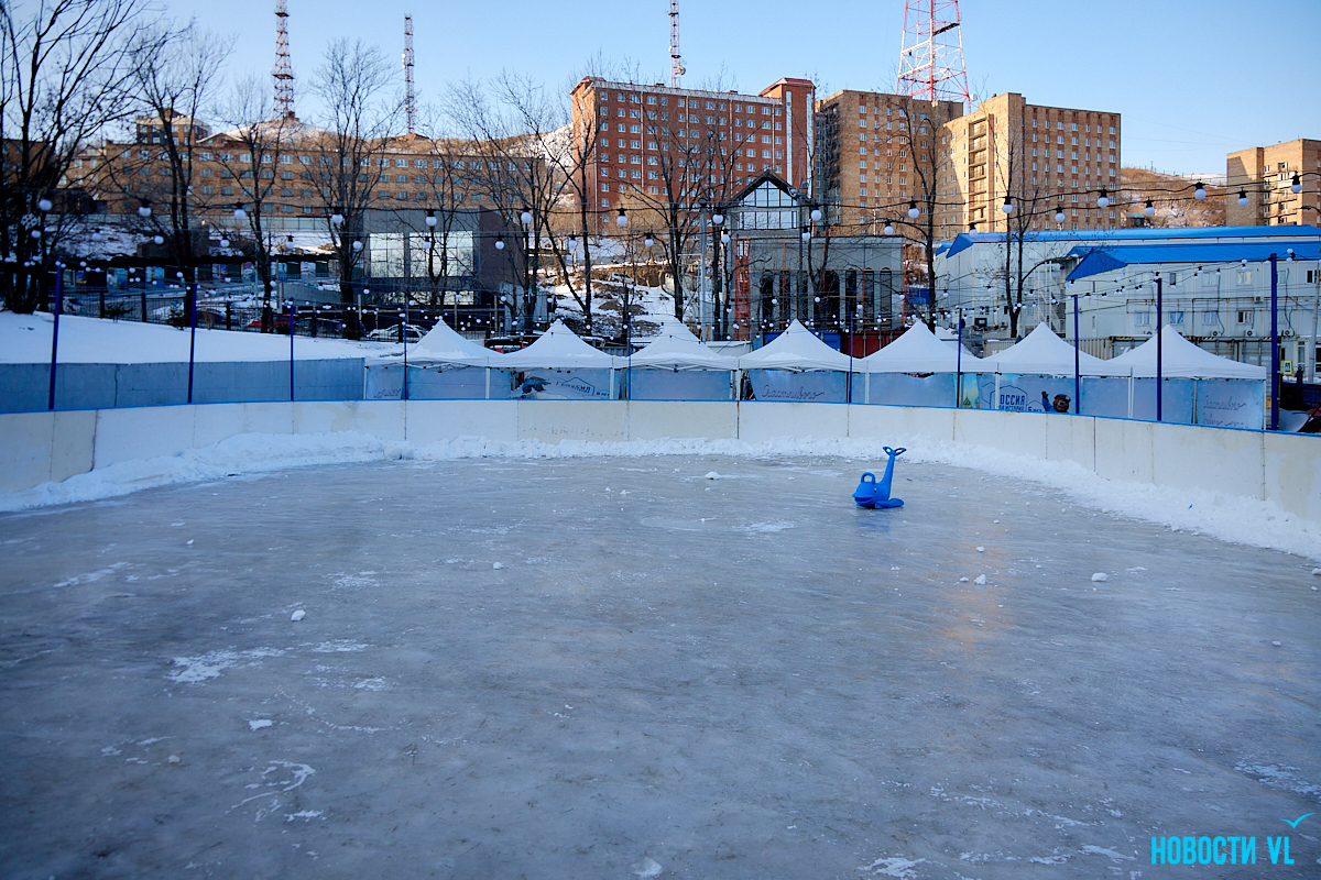 Зато стабильно кого-нибудь можно встретить на центральной площади Владивостока. Здесь каток будет работать до начала февраля.