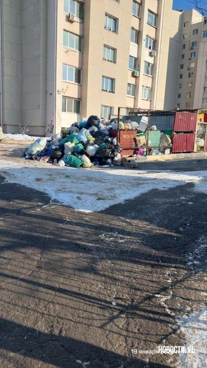 Сбой, правда, может затянуться не на одну декаду. Например, на улице Толстого, 48 во Владивостоке, по словам местных жителей, мусор не вывозят с прошлого года. В чат-боте мэра людям отвечает правительство региона. Говорит о сбое и о том, что всё вывезут во вторник, 20 января.