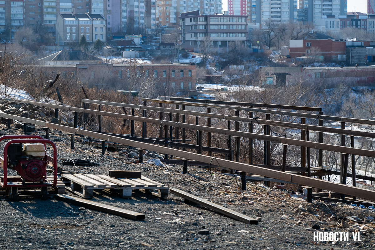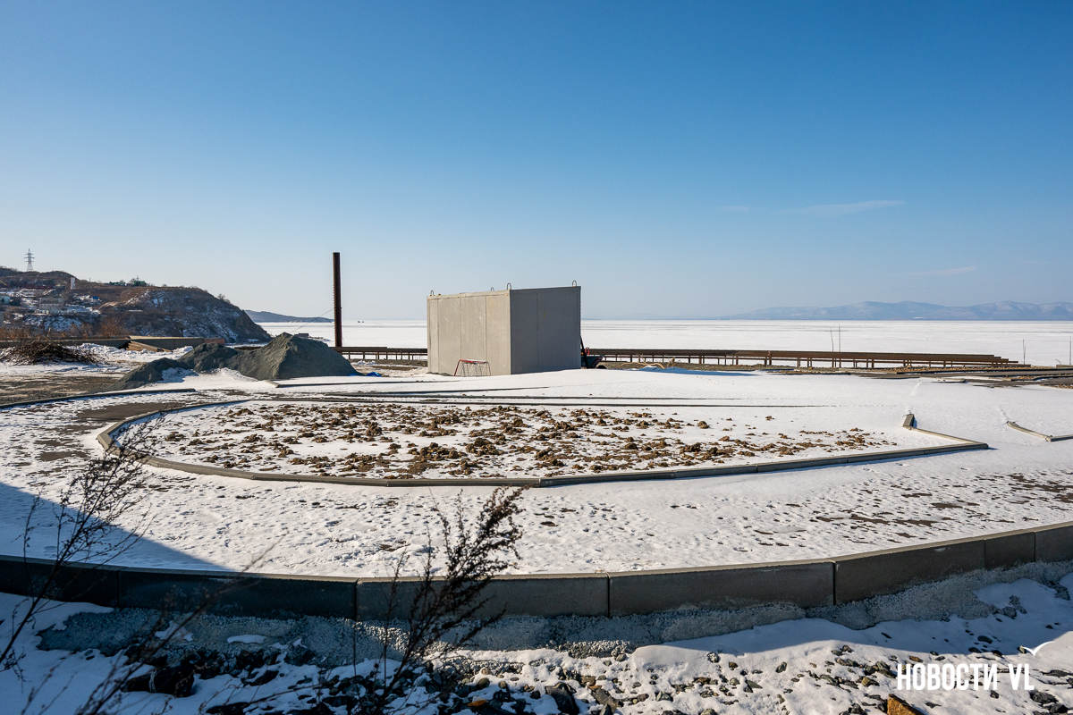 Строительство парка семейного отдыха на бывшей видовой на Эгершельде идёт небольшими шагами. На площадке напротив Сипягина, 30, которую взял в аренду резидент свободного порта Владивосток, сделали прогулочные дорожки с будущими клумбами, а сейчас монтируют ограждение. Сдать сквер обещают в этом году.