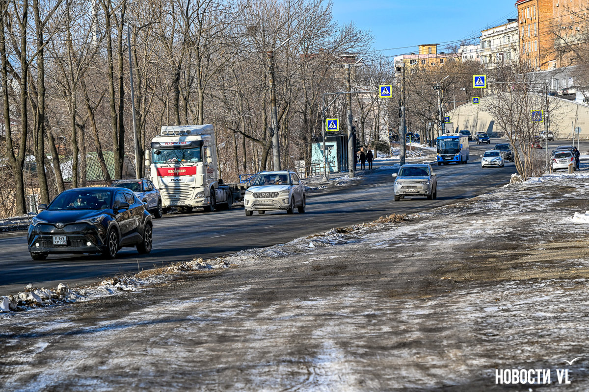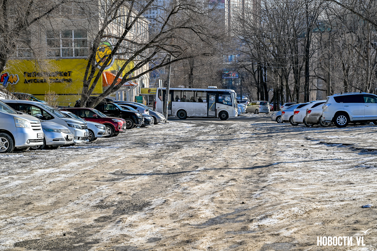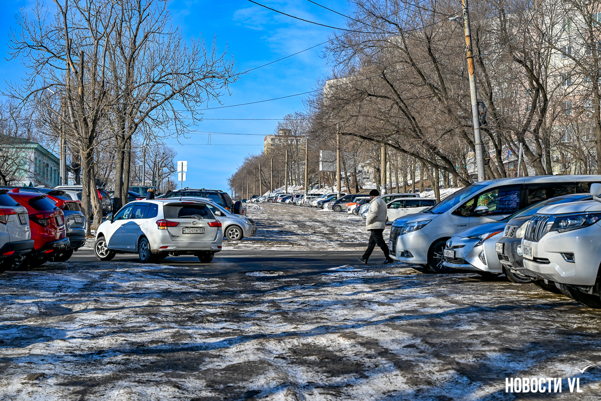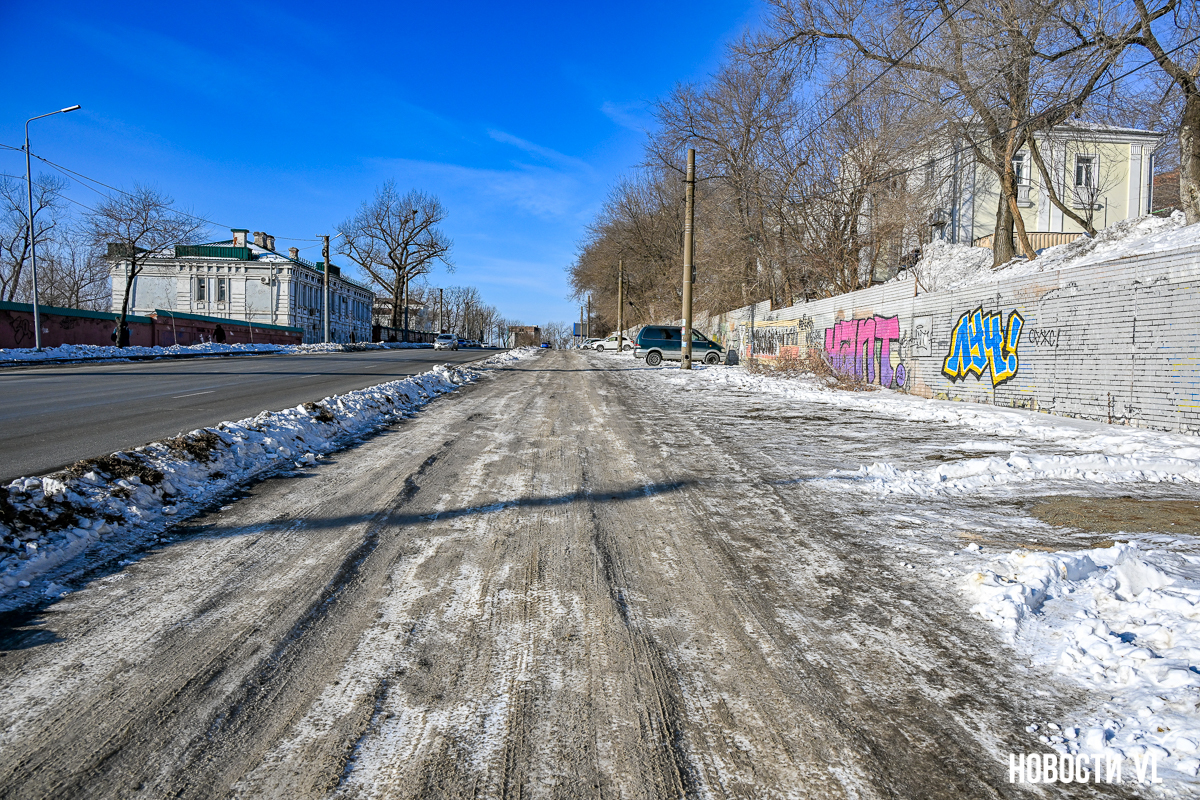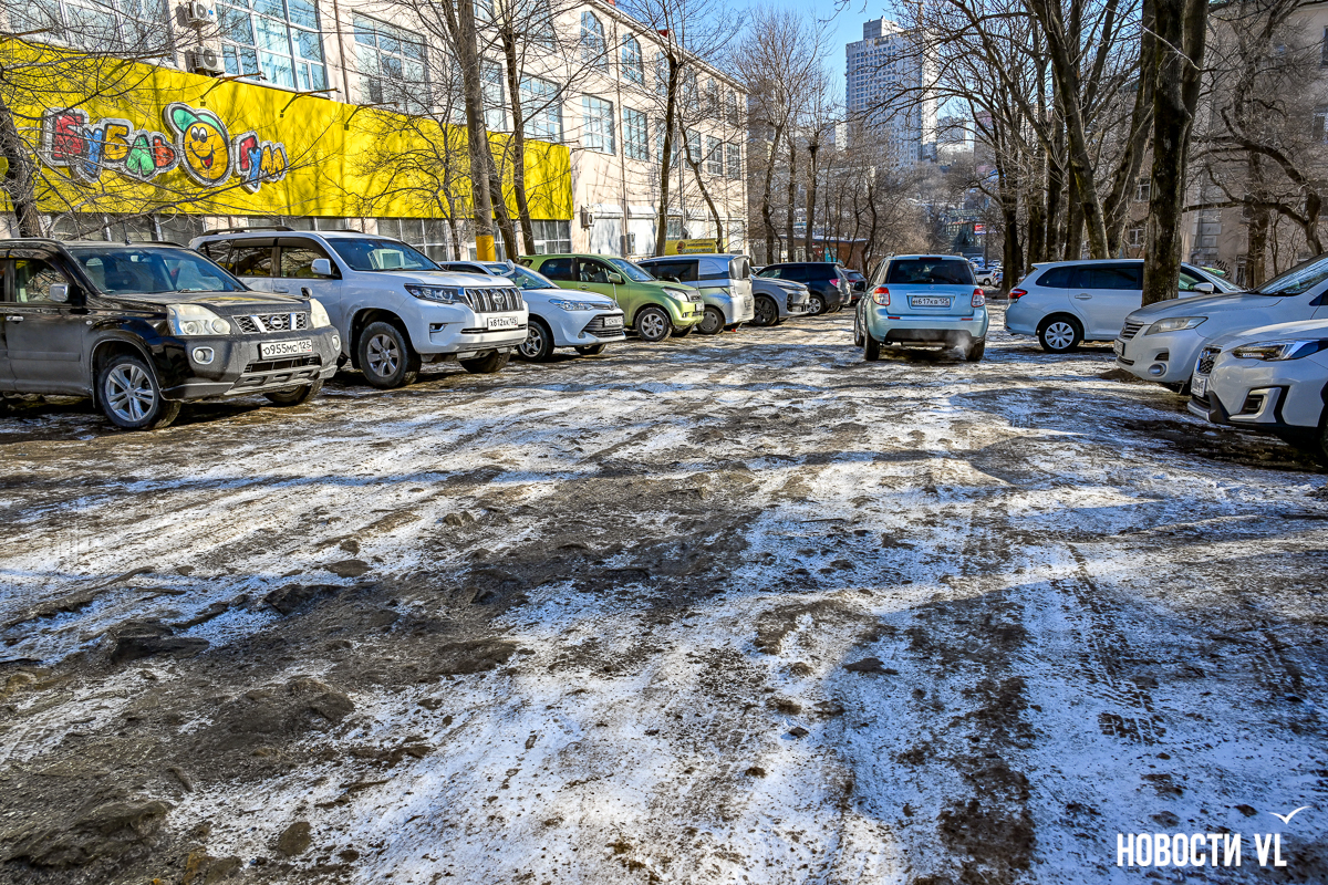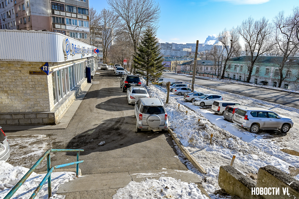 Трамвайные рельсы в этом месте, от Луговой до Гайдамака, сняли в 2012 году. С тех пор лысый земляной пятак под завязку занят автомобилями. Плюс посетители госпиталя ТОФ, он через дорогу. «Госпитальники», по словам местных жителей, выстраиваются и вдоль проезжей части - а трафик здесь жёсткий, весь день пробки.