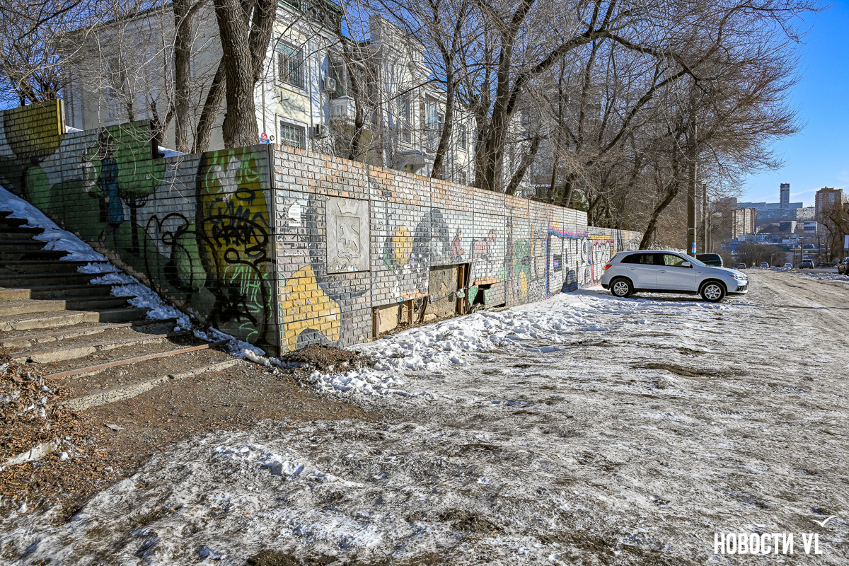 «Территория большая, и благоустройство разбито на два этапа и два года – на этот и следующий. Тут небольшая подпорная стена, она выглядит не очень. Её отремонтируют и предложат поработать здесь художникам».