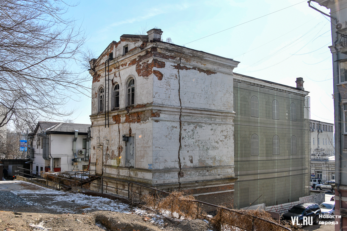 Старинное здание на Светланской, 119 фигурировало в списке недвижимости по «делу Мещерякова», в 2020 году его вернули в краевую собственность в плачевном состоянии. Красивый дом прикрыли фальшфасадом (он, кстати, в документах называется «ценным движимым имуществом») и до сих пор не придумали, что с ним делать.