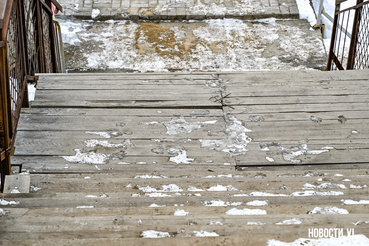 Начальная цена контракта составляет 17,3 млн рублей. О состоянии лестницы на Чуркине мы писали в сентябре. Путь пешехода с улицы Калинина к железнодорожной станции лежит по опасным деревянным ступеням. Часть из них уже прогнили и проваливаются, а жители жалуются на опасный спуск. В прошлом году администрация Владивостока и РЖД никак не могли установить, в чьей же зоне ответственности она находится, пока там не провалилось несколько ступенек.