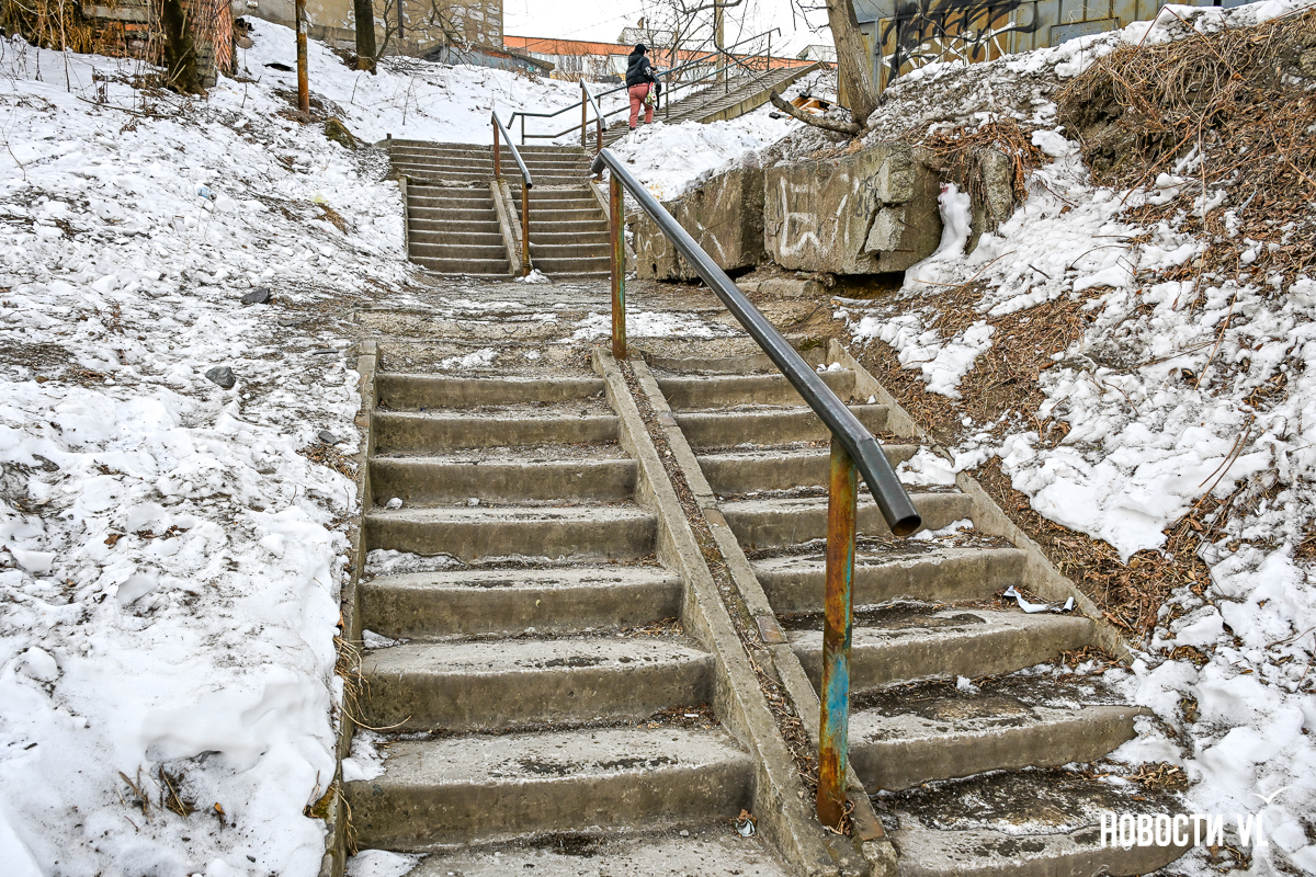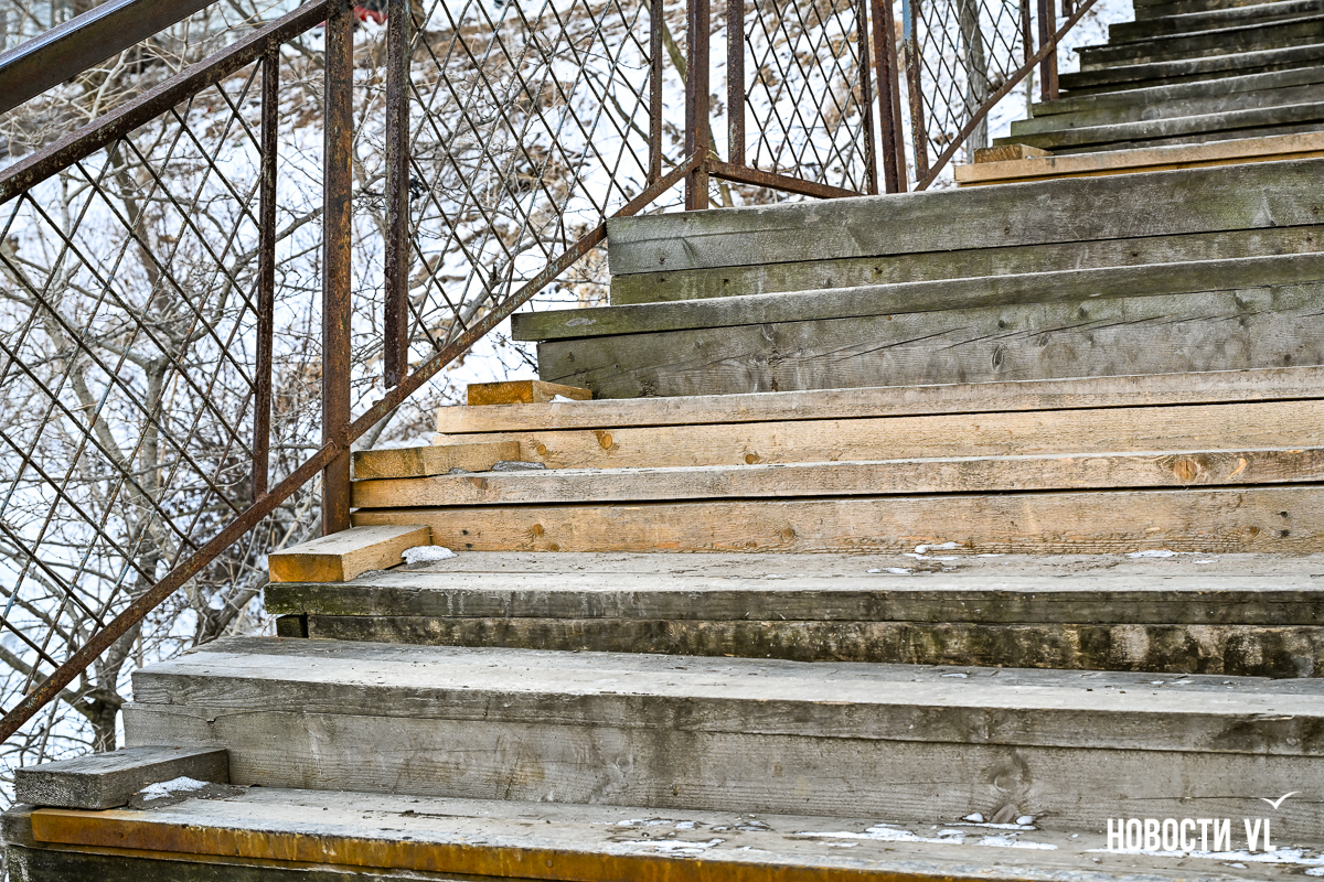 Две длинные и сложные лестницы должны отремонтировать во Владивостоке к середине лета. Одна – деревянная, ведущая от улицы Калинина к станции Мыс Чуркин, на её состояние поступает много жалоб. Вторая – это даже не лестница, а длинная протяжённая дорожка от гостинок на Красного Знамени к Луговой.