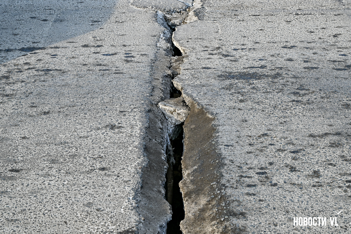 На Рудневском мосту снова разошлись деформационные швы. Только, в отличие от других подобных сооружений, сквозь образовавшиеся отверстия с 30-метровой высоты можно в подробностях разглядеть улицу Снеговую. Администрация Владивостока уверяет, что для легкового транспорта проезд безопасен, а трещины заделают с наступлением положительных температур. Тем временем сквозные дыры собирают на мосту ежедневные пробки.