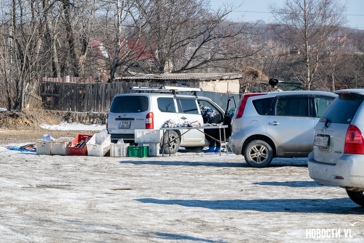 Считается, что в Тавричанке рыба есть, даже если её больше нигде нет. Как минимум здесь её можно купить – местную, парную, дешевле, чем во Владивостоке. Здесь есть несколько постоянных продавцов. Будний день, время к обеду, улов уже привезли. У кого-то рыба настолько свежевыловленная, что даже всё ещё пытается спастись из ящиков. На прилавках в основном навага и селёдка, но меньше, чем обычно.