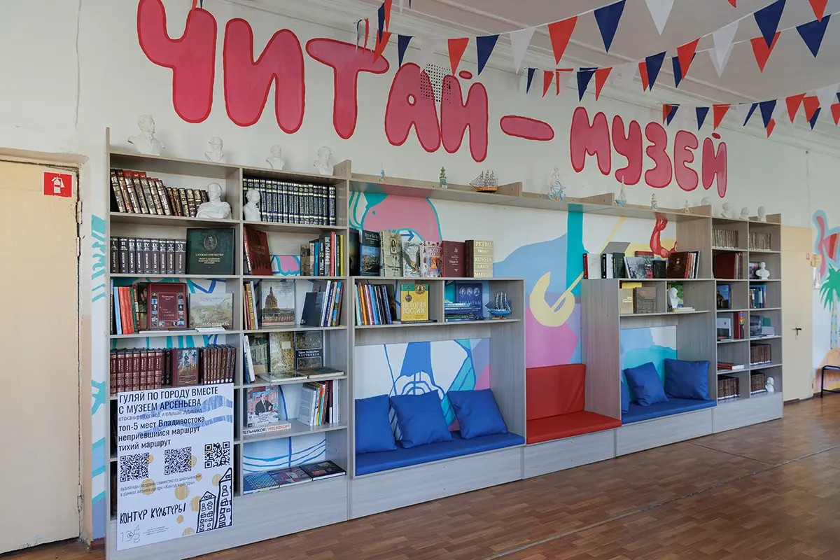 «Мы сделали подарок школе № 32, это обычная школа во Владивостоке, на Чуркине. Мы попросили наших коллег из многих музеев России в благотворительном формате прислать несколько экземпляров детских музейных книг, рассказывающих о наследии Владимирской, Ярославской области, Татарстана, по сути дела, всей России. И оборудовали библиотеку, но не такую, где книги нужно брать по формуляру, а в режиме такого коворкинга, открытого доступа. Это очень много, порядка 400 изданий в общей сложности. Перемена в школе 15 минут. Кто-то в столовую побежал, кто-то воздухом дышать. Но вдруг эти 15 минут кто-то захочет потратить на то, чтобы схватить с полки большой альбом того же Петергофа или Музея Кремля, просто пролистнуть, увидеть, заинтересоваться. Подвижное осознание ребёнка может вести его, если он эмоционально привязан, потом дальше он найдёт путь».