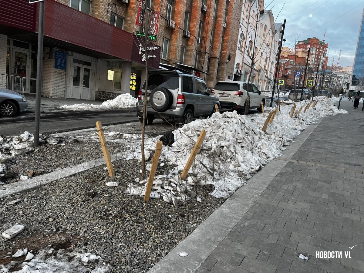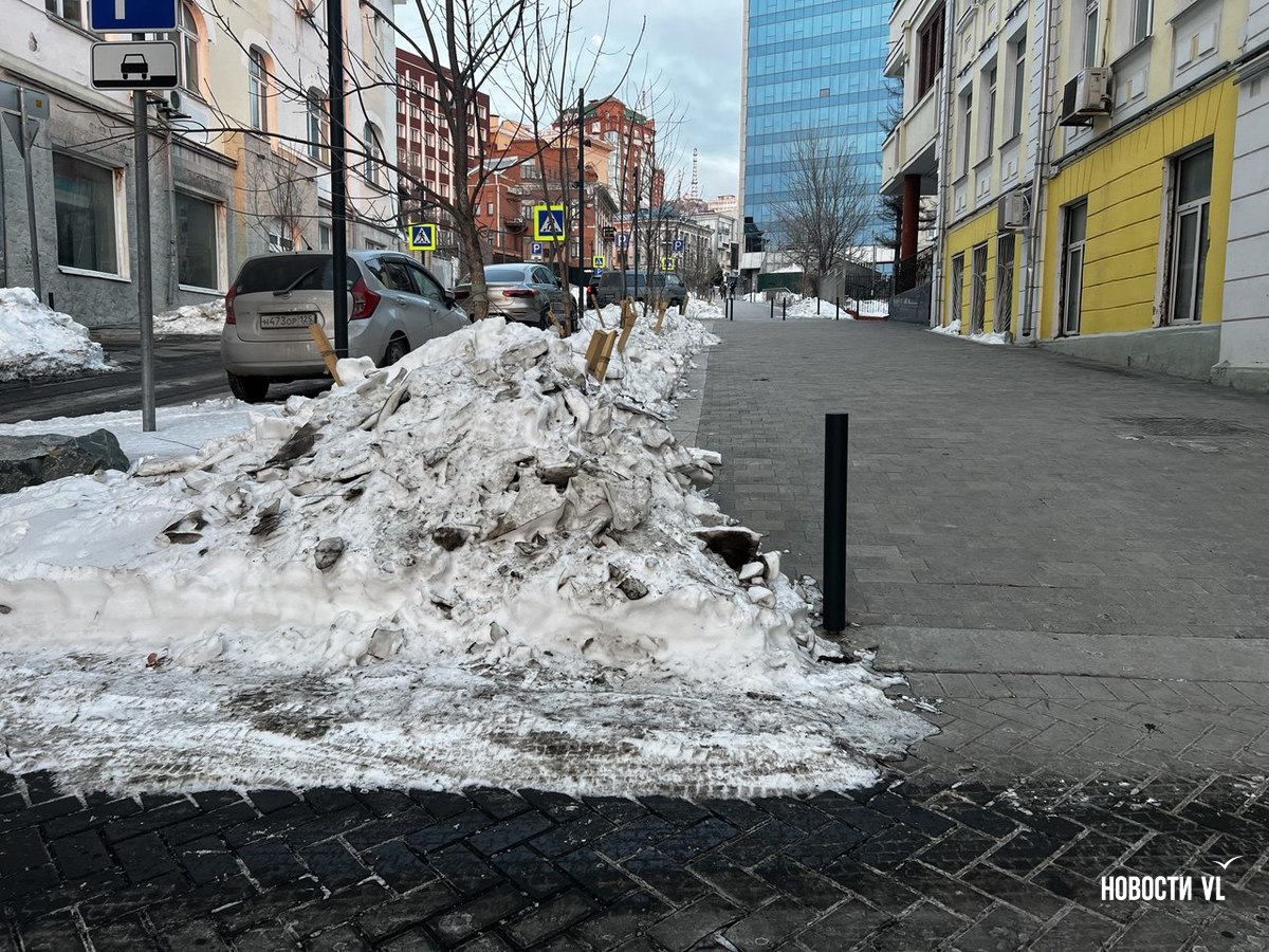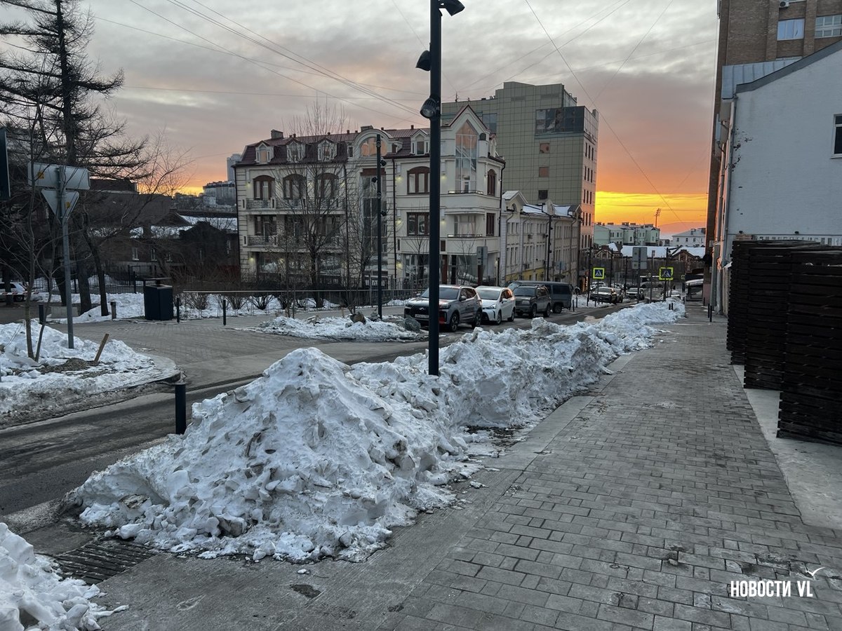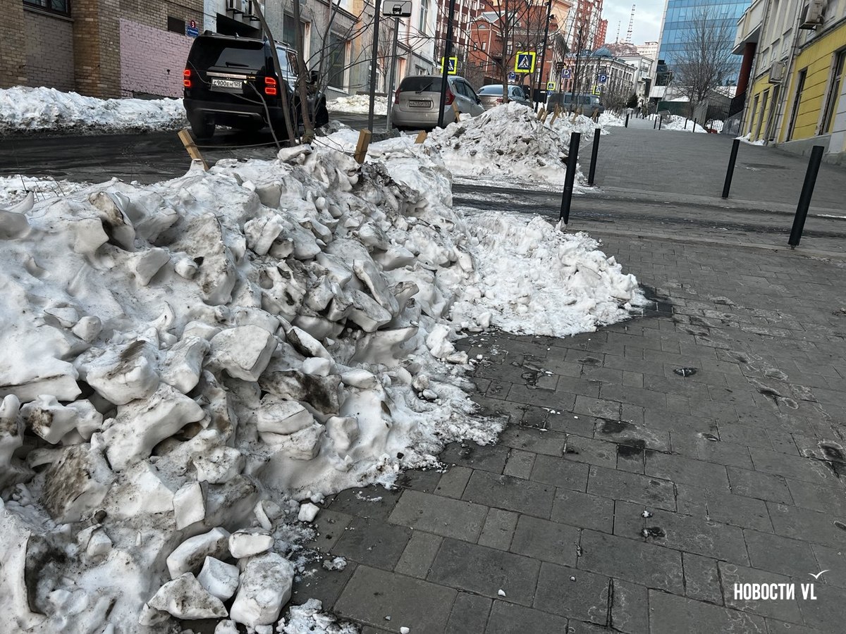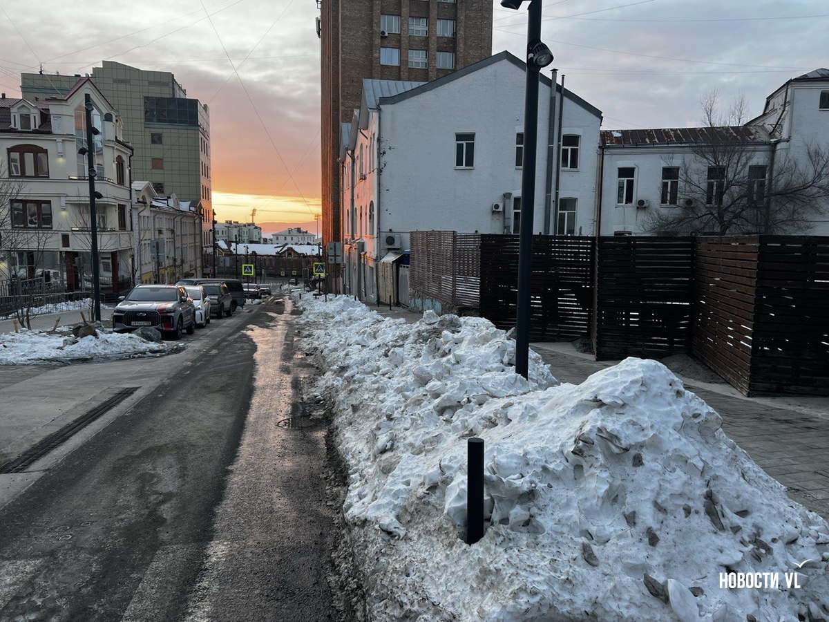 Напомним, что сильный снегопад прошёл во Владивостоке 10 января, и до сих пор его последствия не везде убрали. Основные улицы уже по большей части почистили, но во многих местах тротуары всё ещё покрыты смерзшимся и утоптанным снегом и льдом. Особенно это заметно в отдалённых от центра районах.