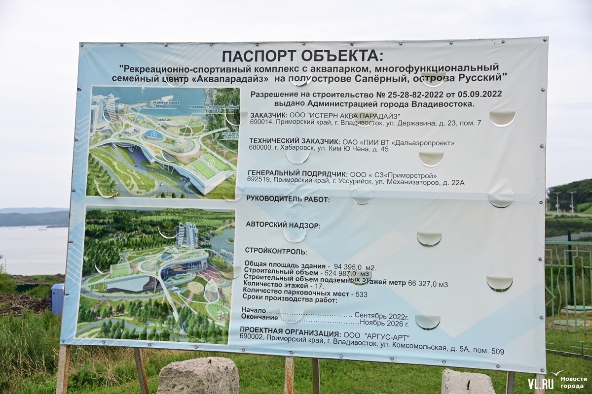 К сожалению, работы длились недолго. Осенью 2024 года корреспондент Новостей VL обнаружил тут огромный котлован и поваленный забор. И ни единого рабочего. В пресс-службе «Истерн Аква Парадайз» пообещали, что строительство скоро начнётся.