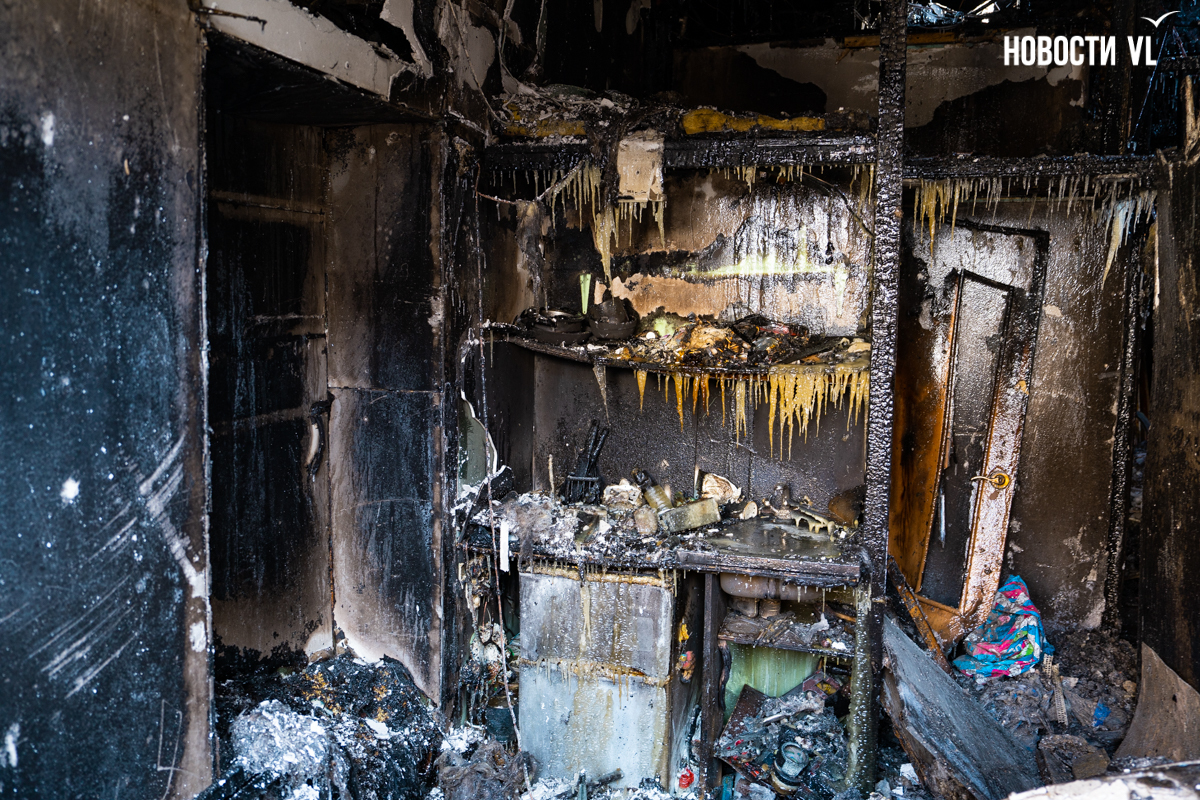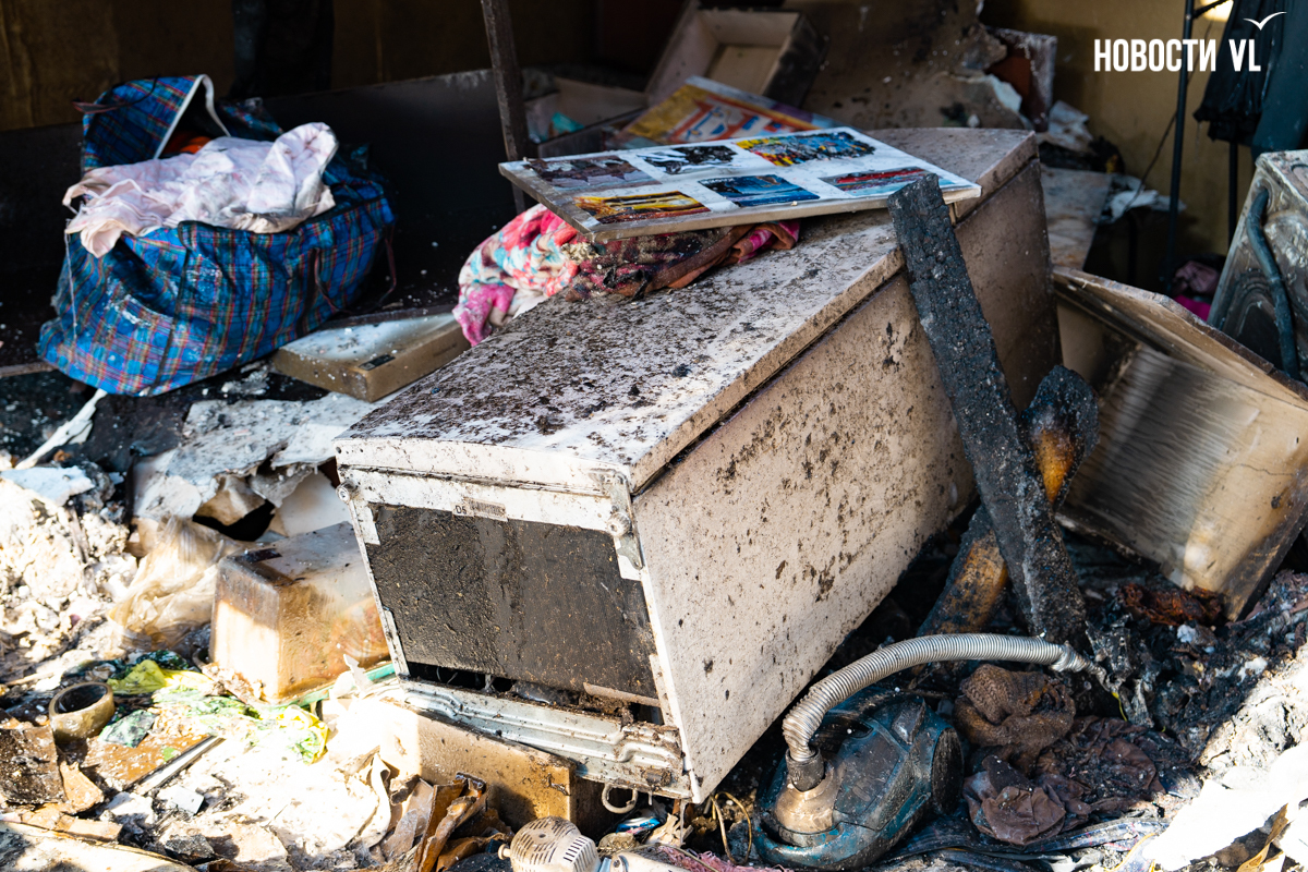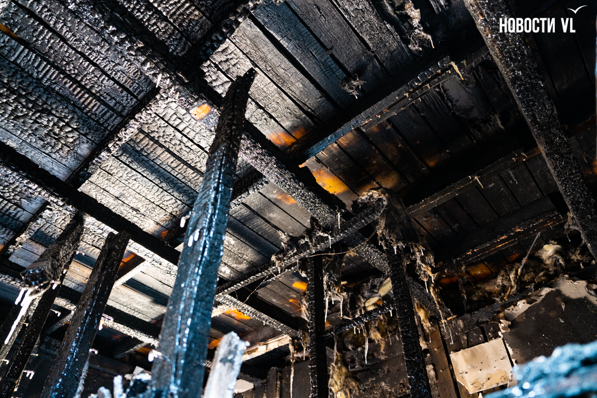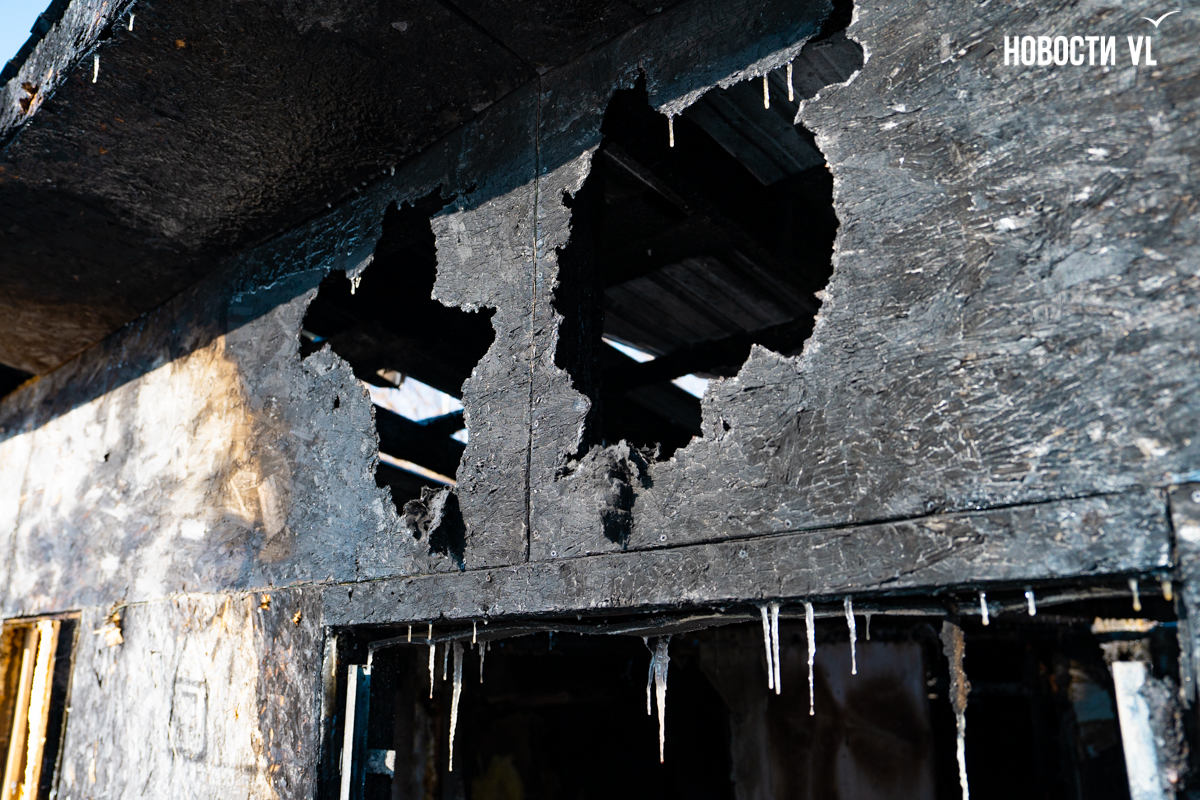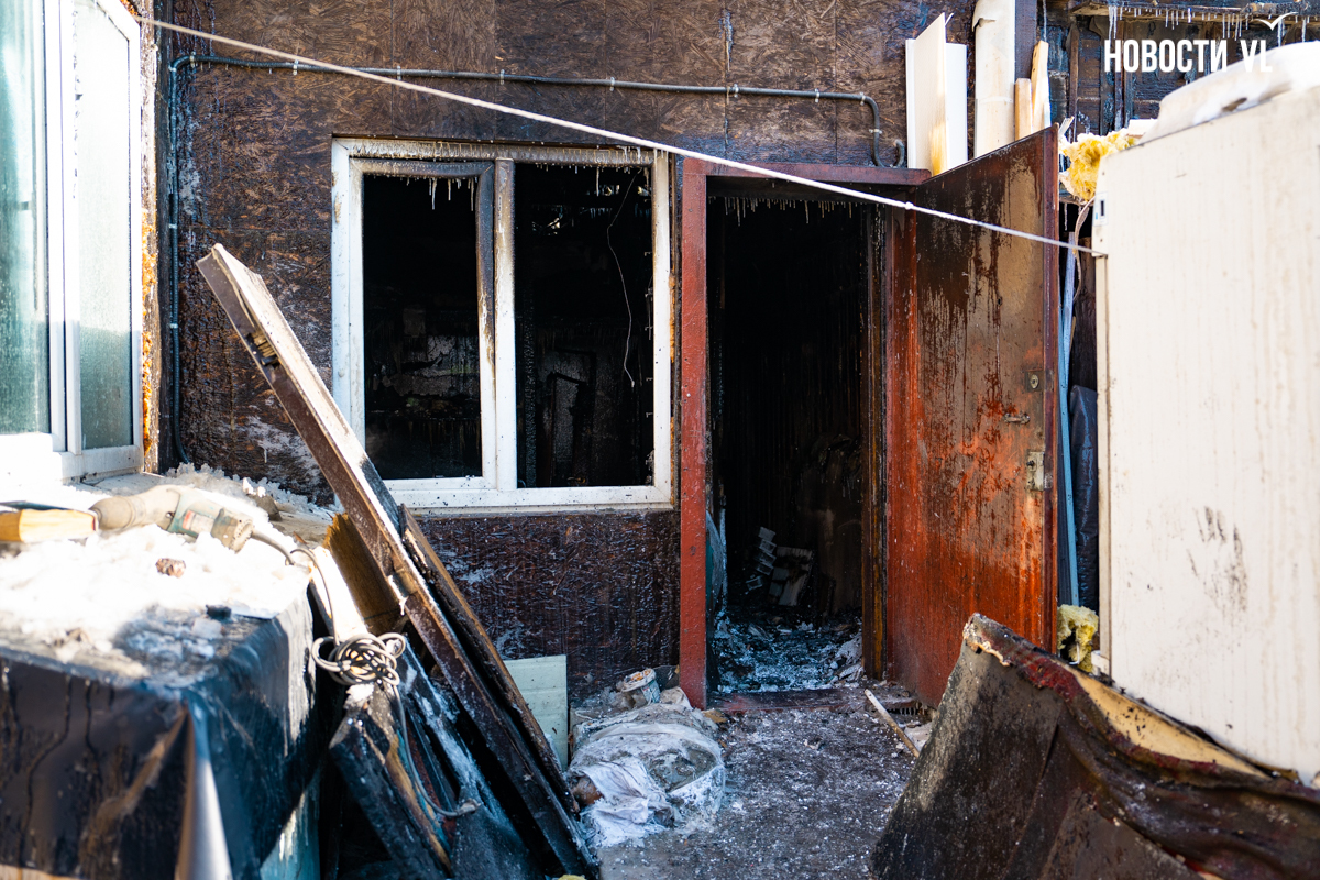 Помещение, в котором жила семья, это пристройка к двухэтажному дому, поэтому огонь до неё не добрался. Сушат наименее пострадавшее помещение с помощью тепловых пушек. Пятеро сотрудников Владивостокской городской поисково-спасательной службы находятся там с 10 утра, обещают завтра приехать на помощь тоже.